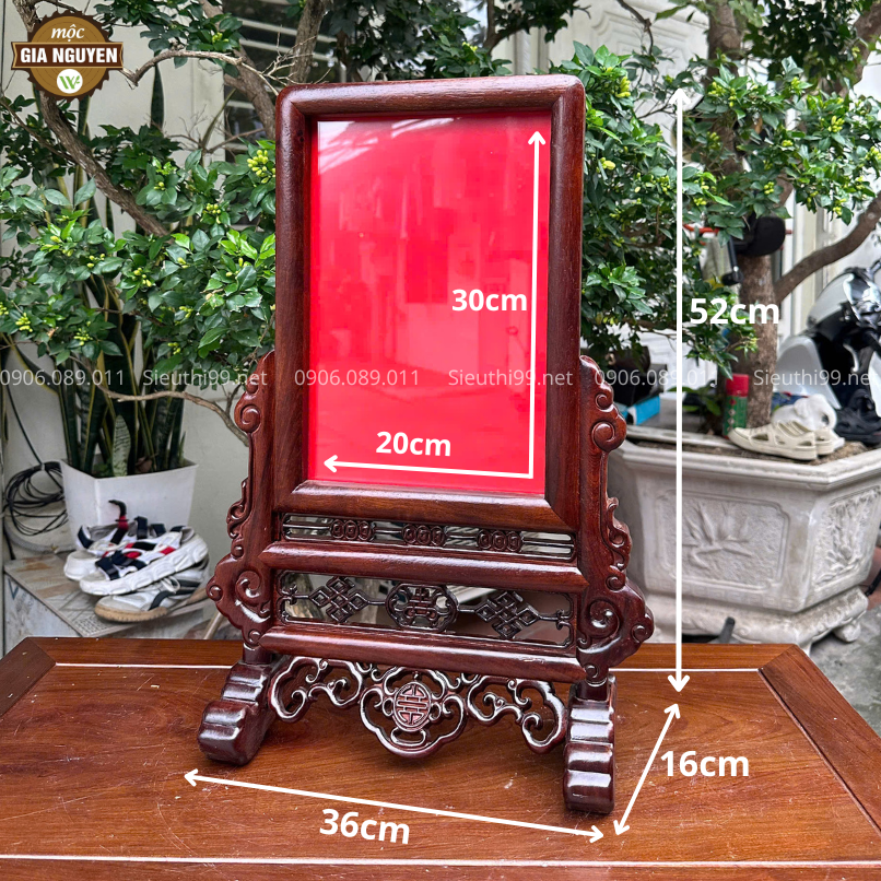 Kích thước: Di ảnh 20x30cm; Phủ bì cao 52cm x ngang 36cm.x sâu 16cm