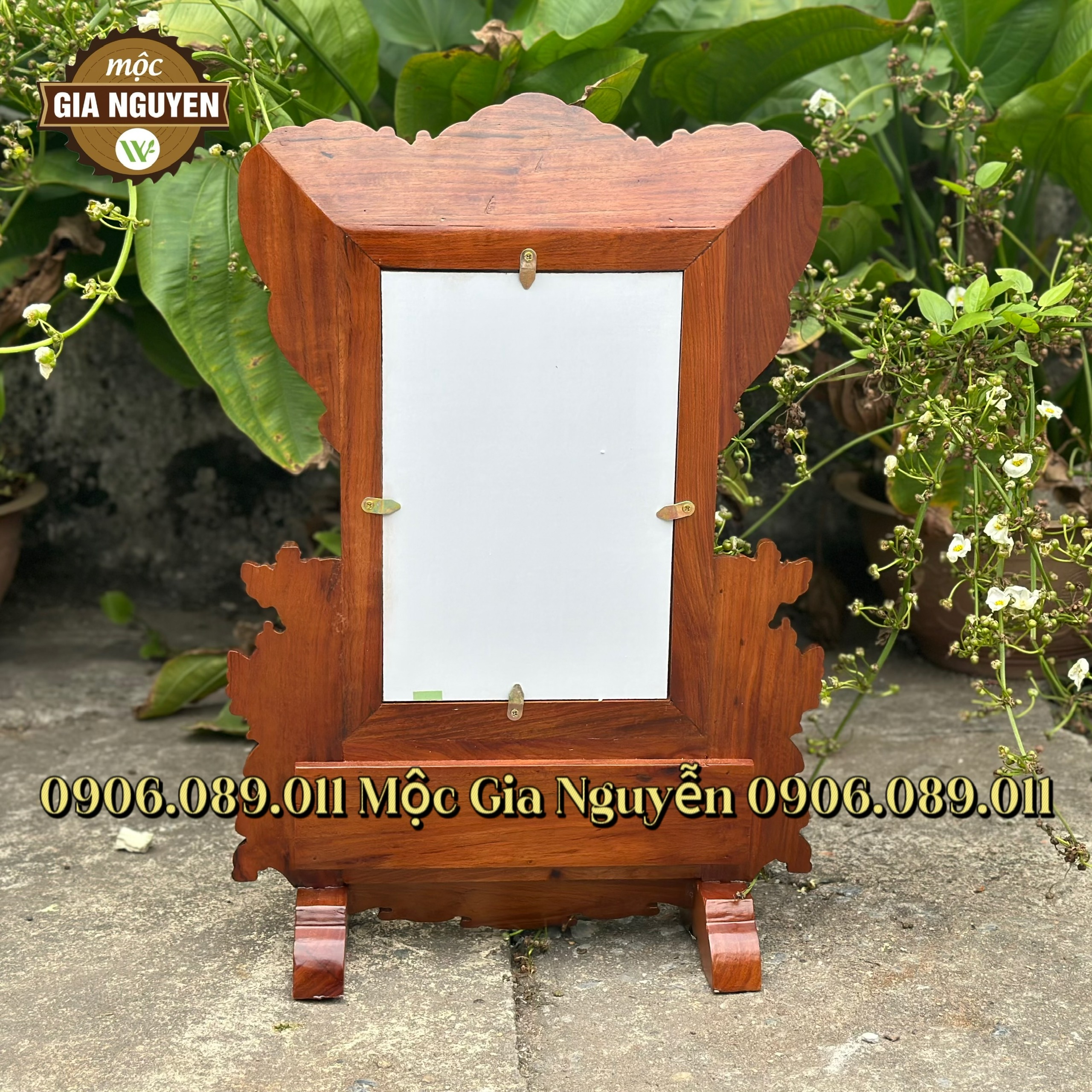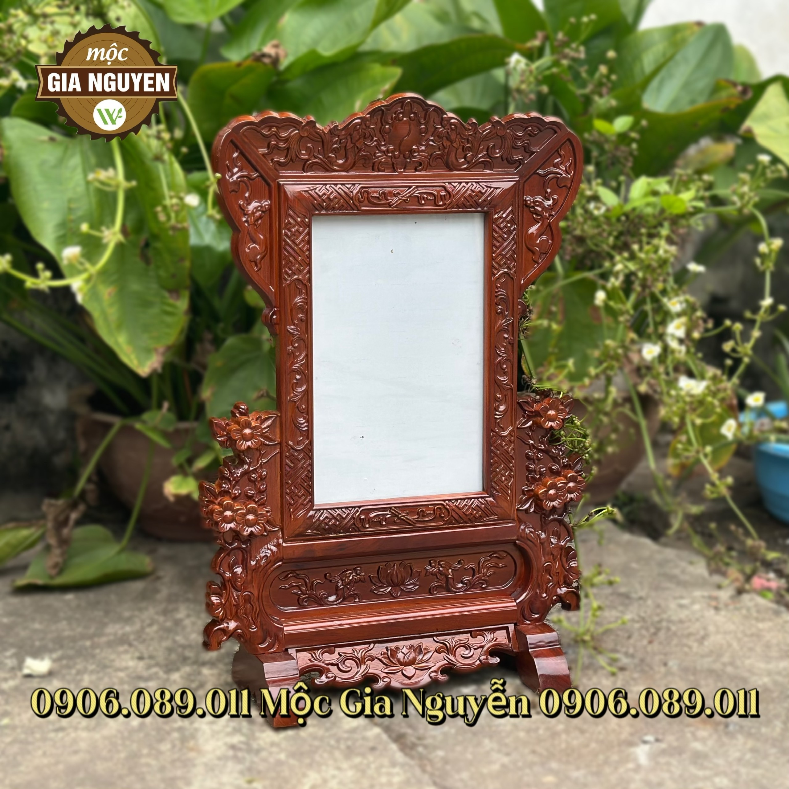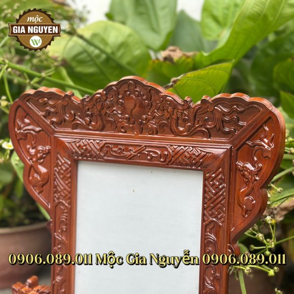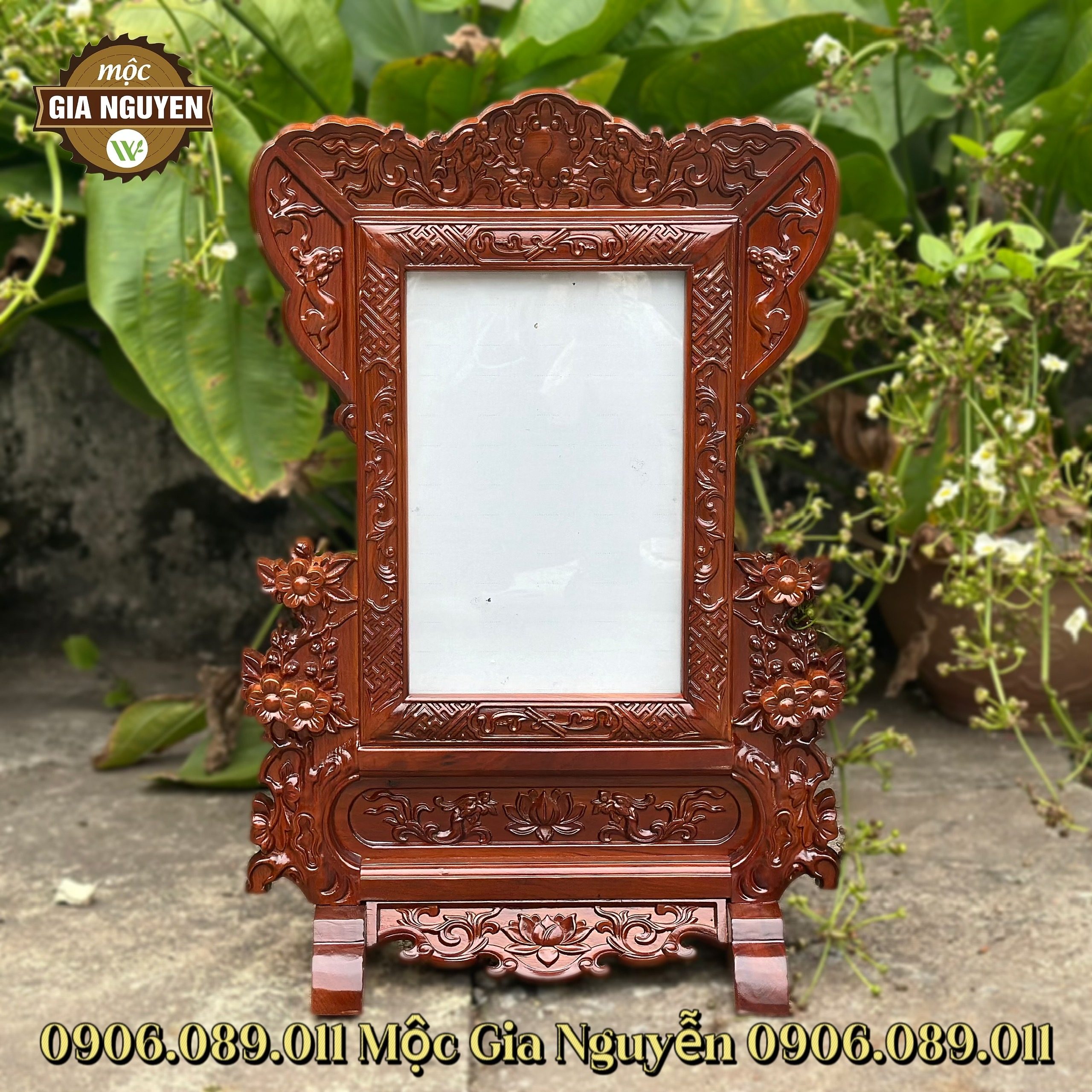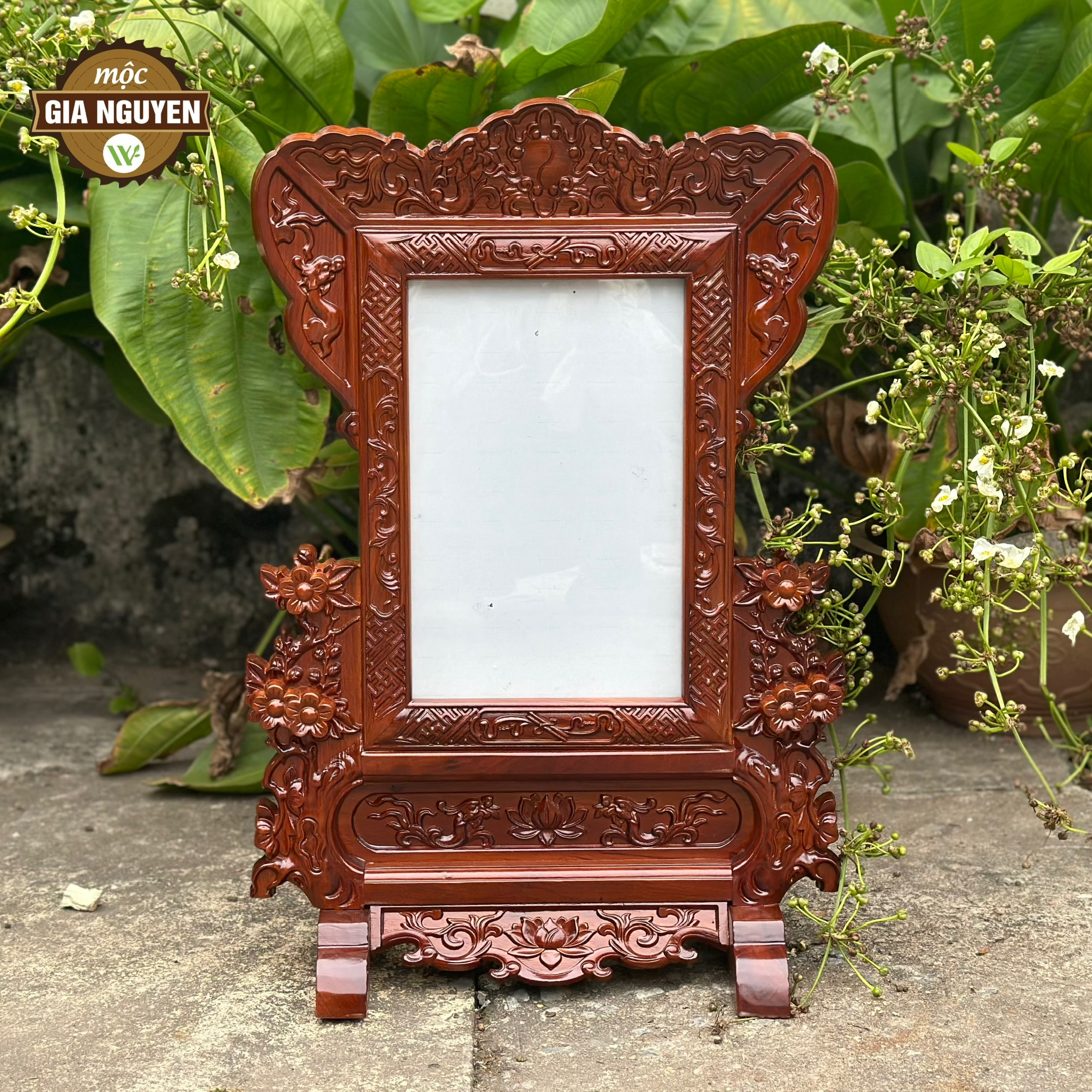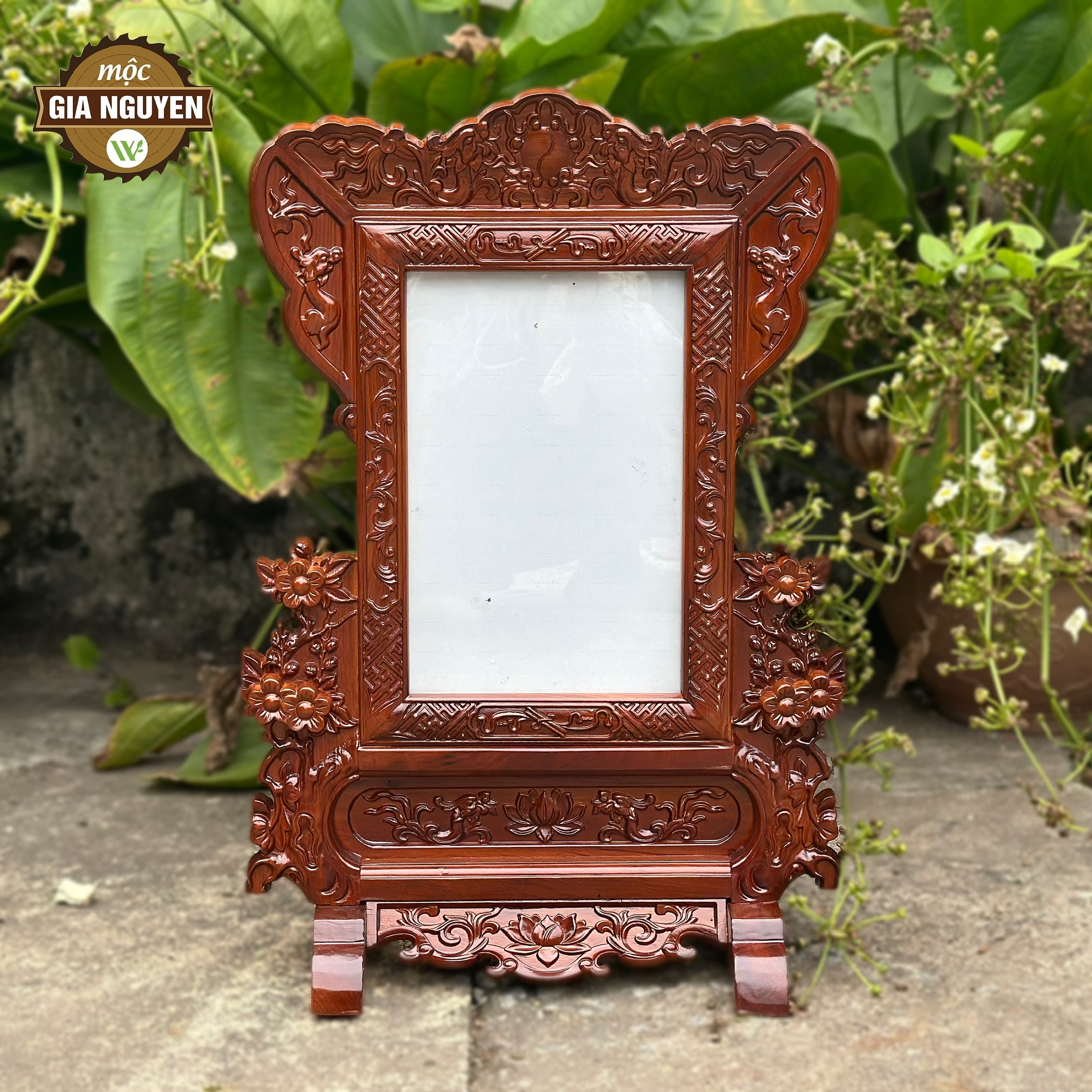 Khung ảnh thờ treo đục cuốn thư gỗ hương cao cấp 20x30cm