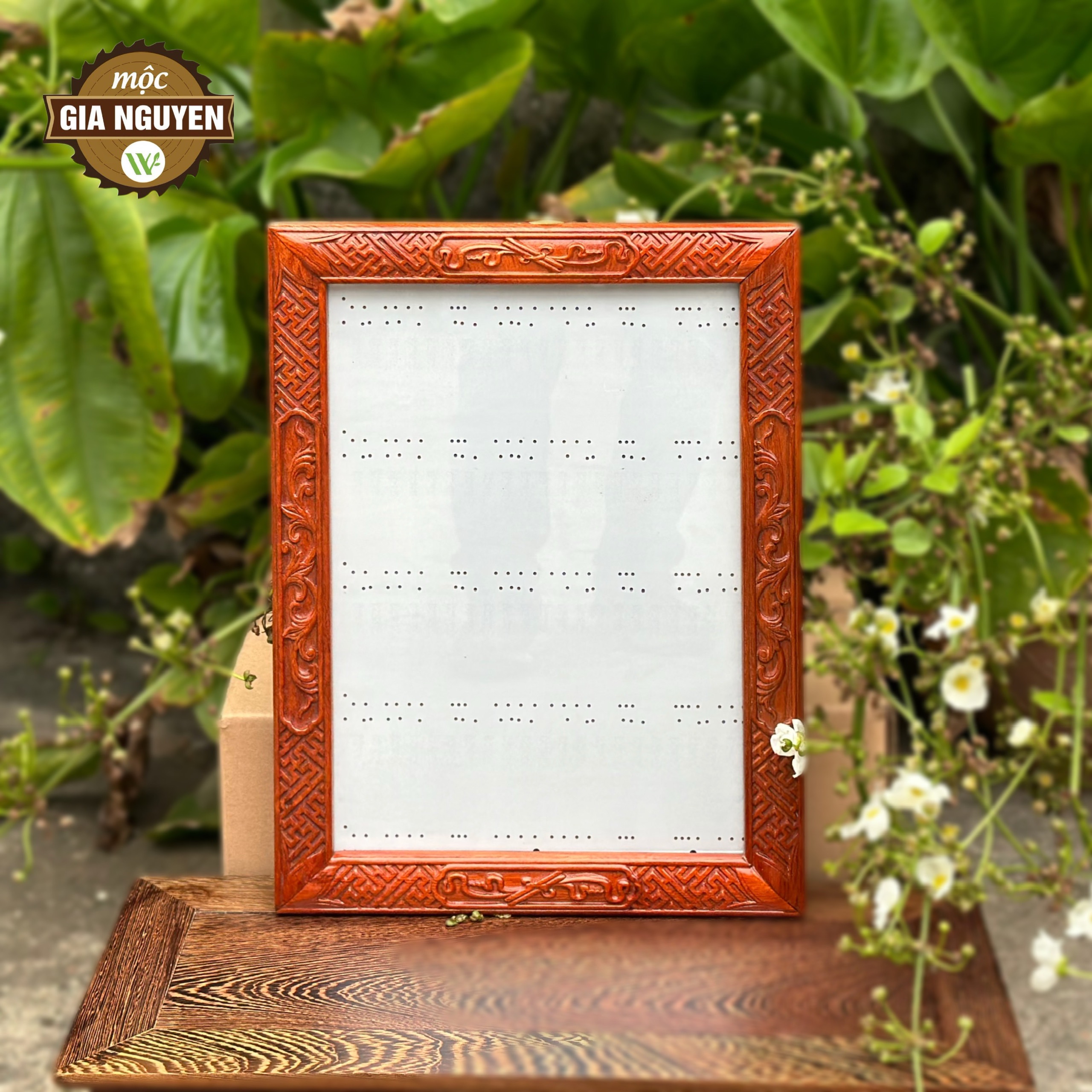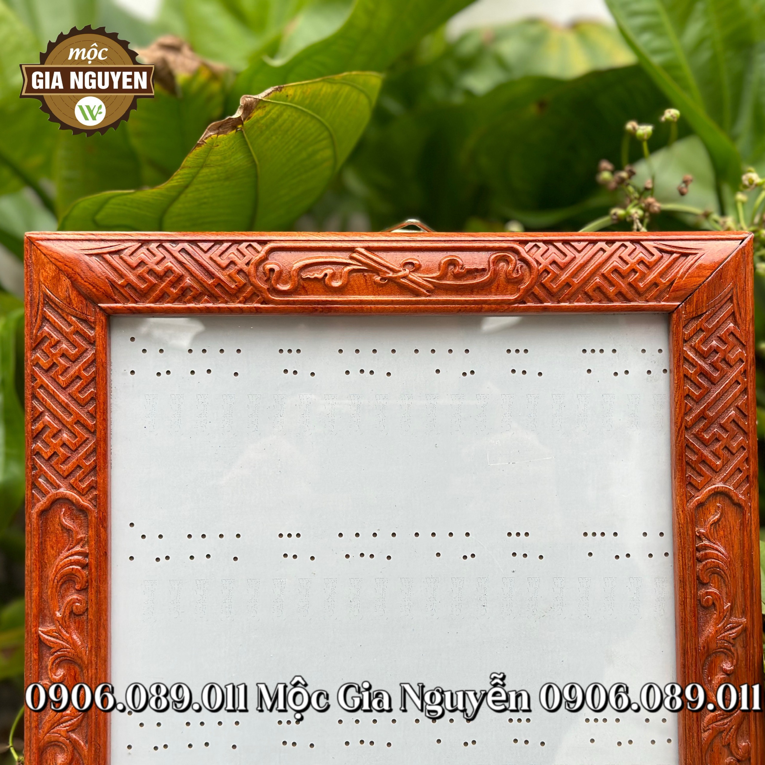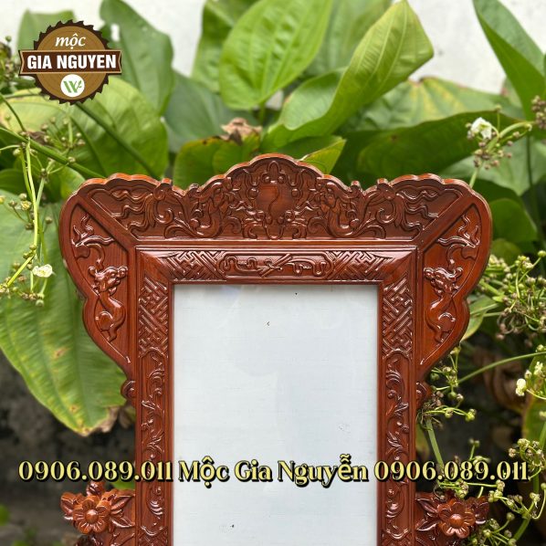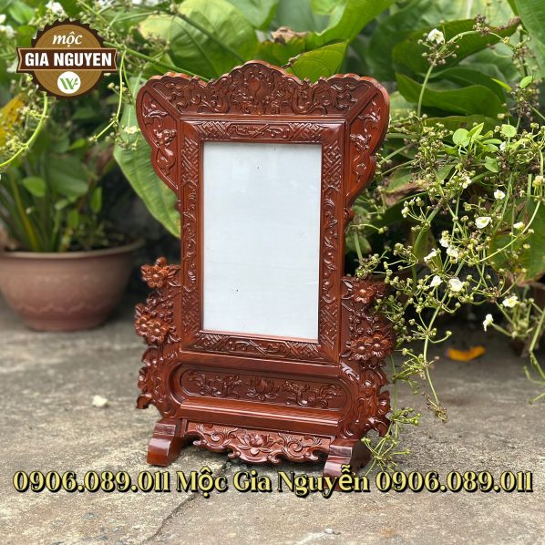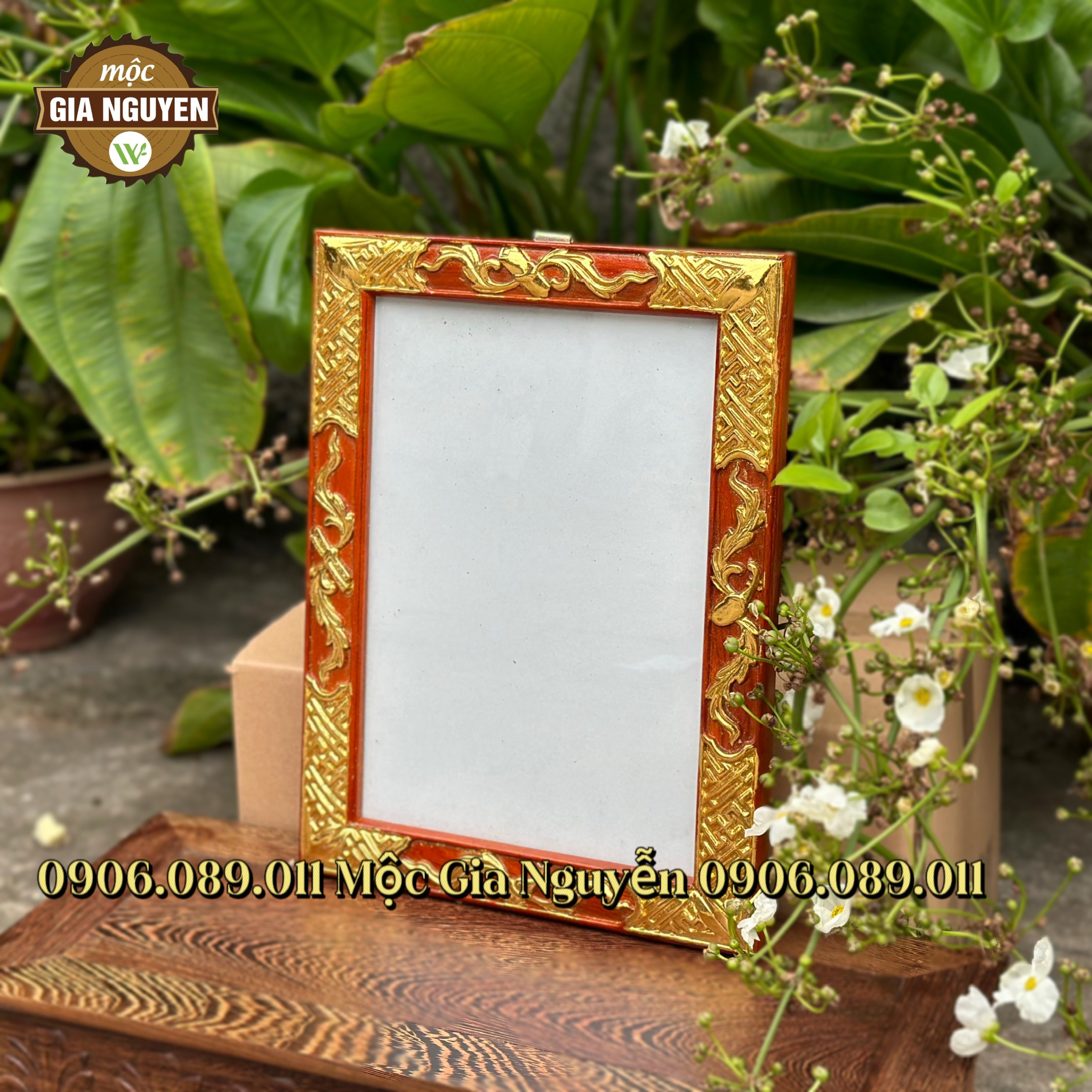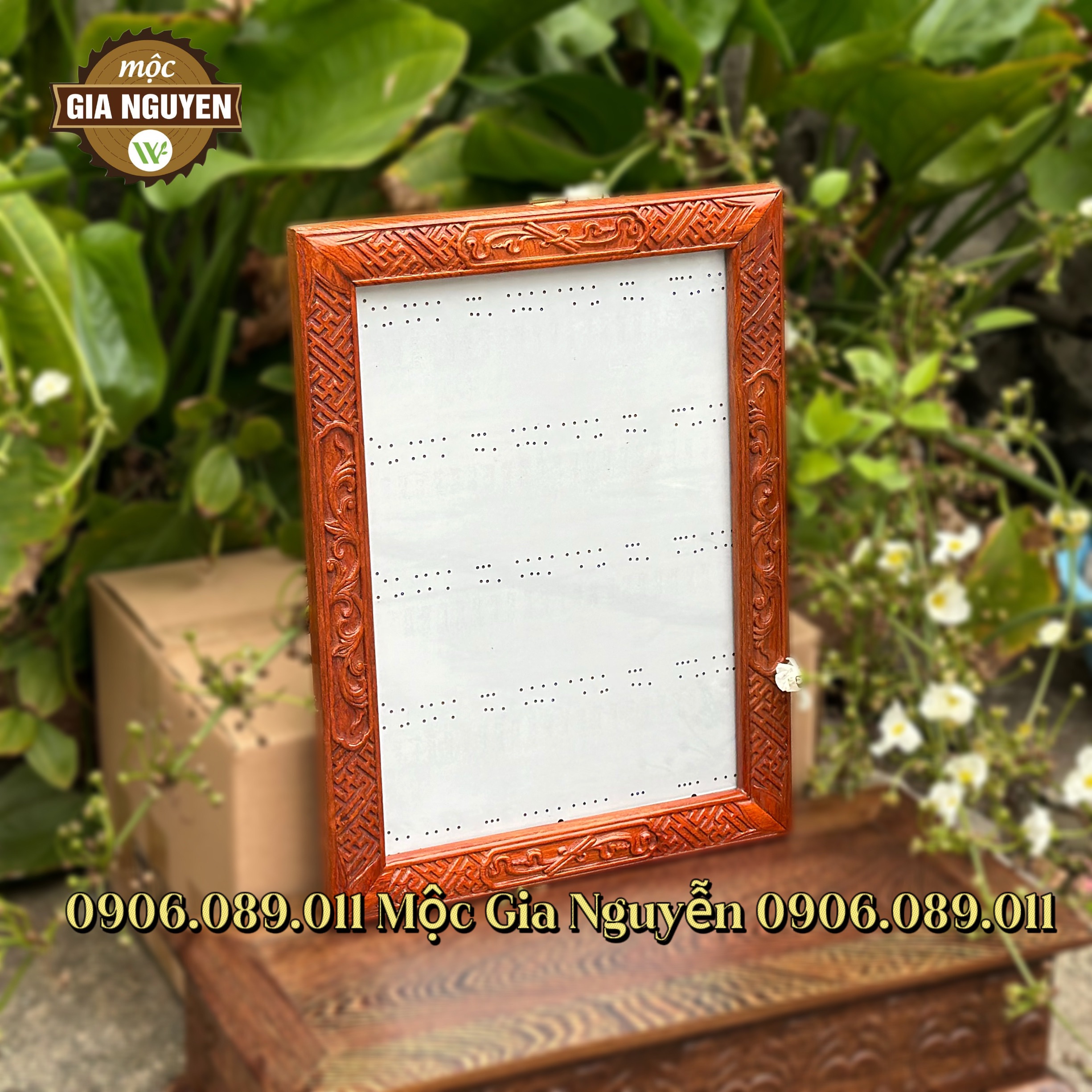 Khung ảnh thờ treo đục cuốn thư gỗ hương cao cấp 20x30cm