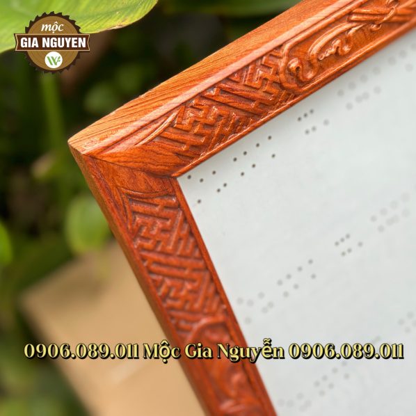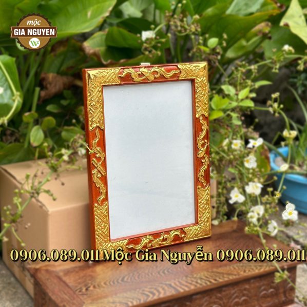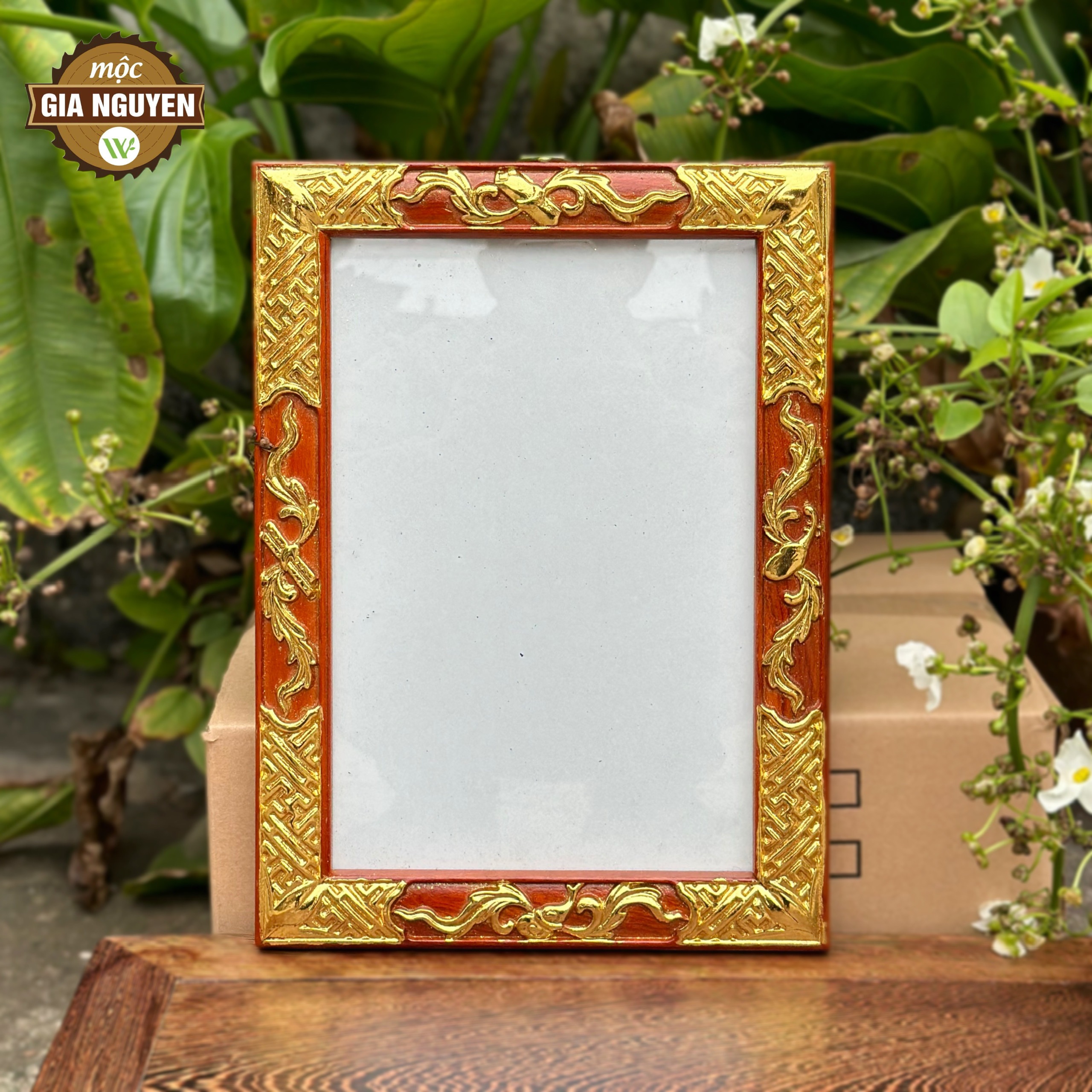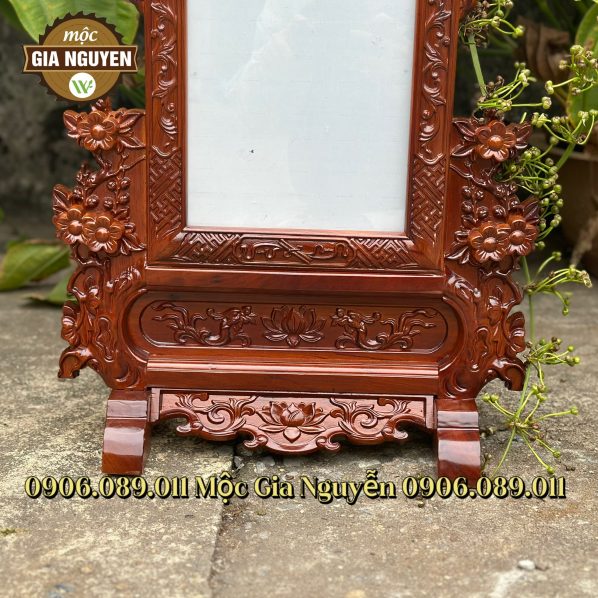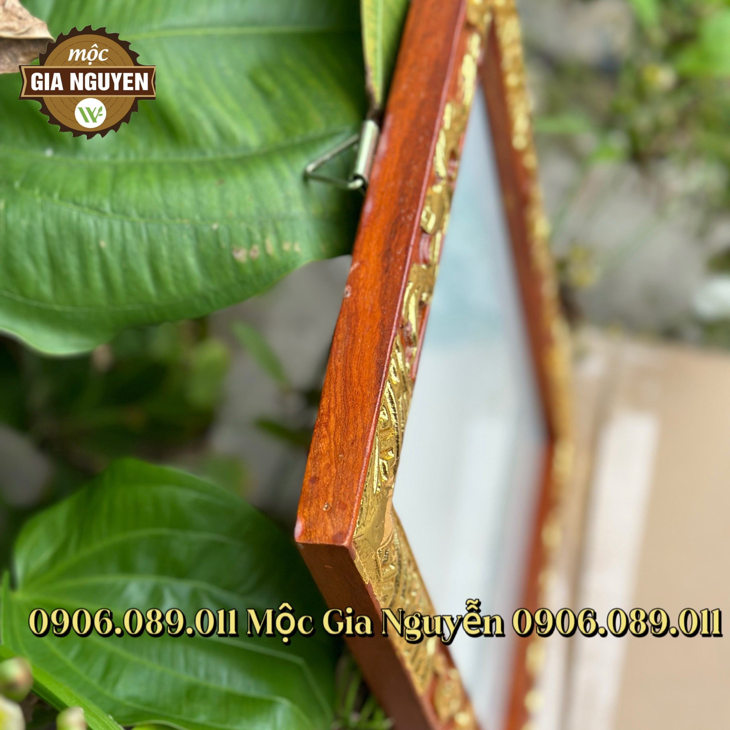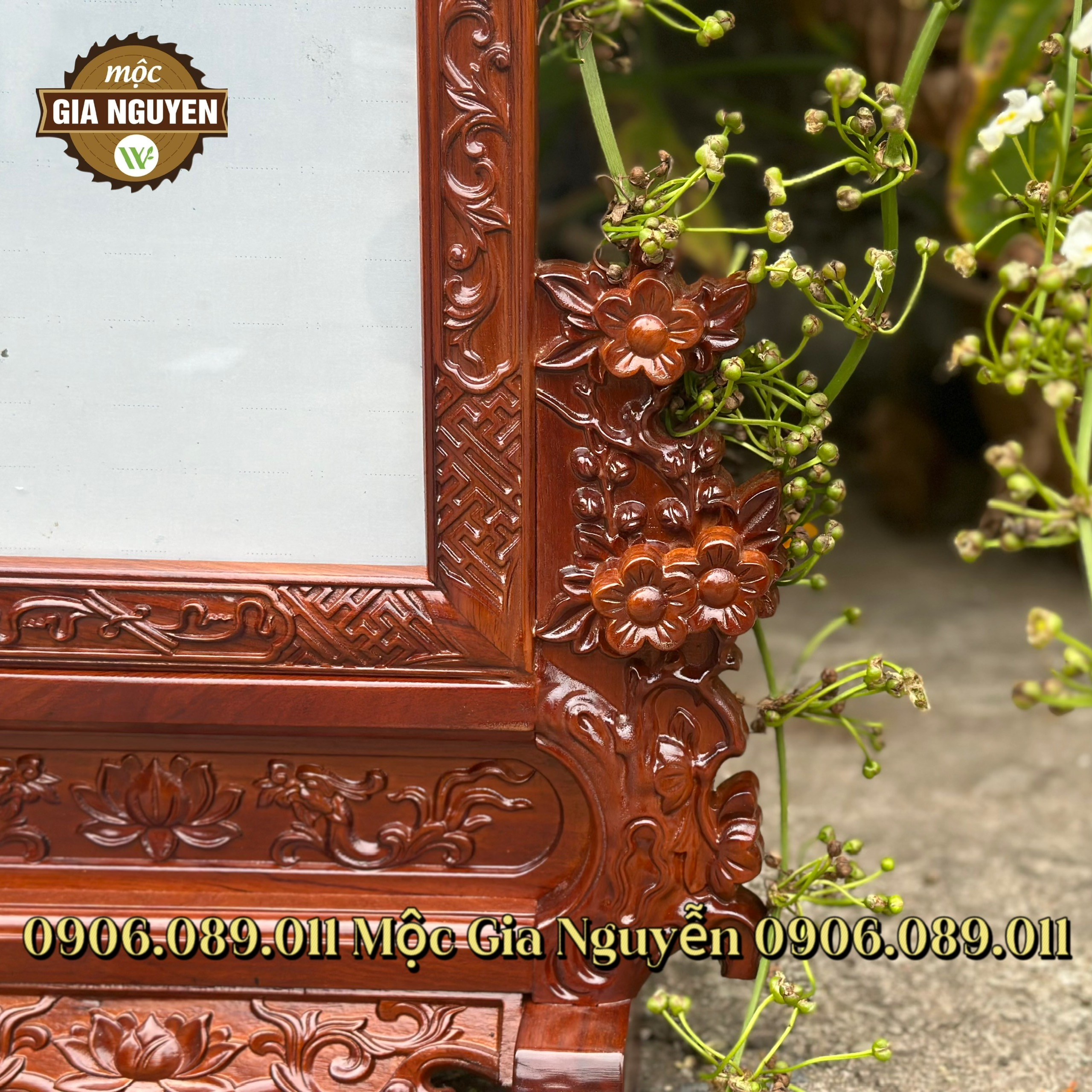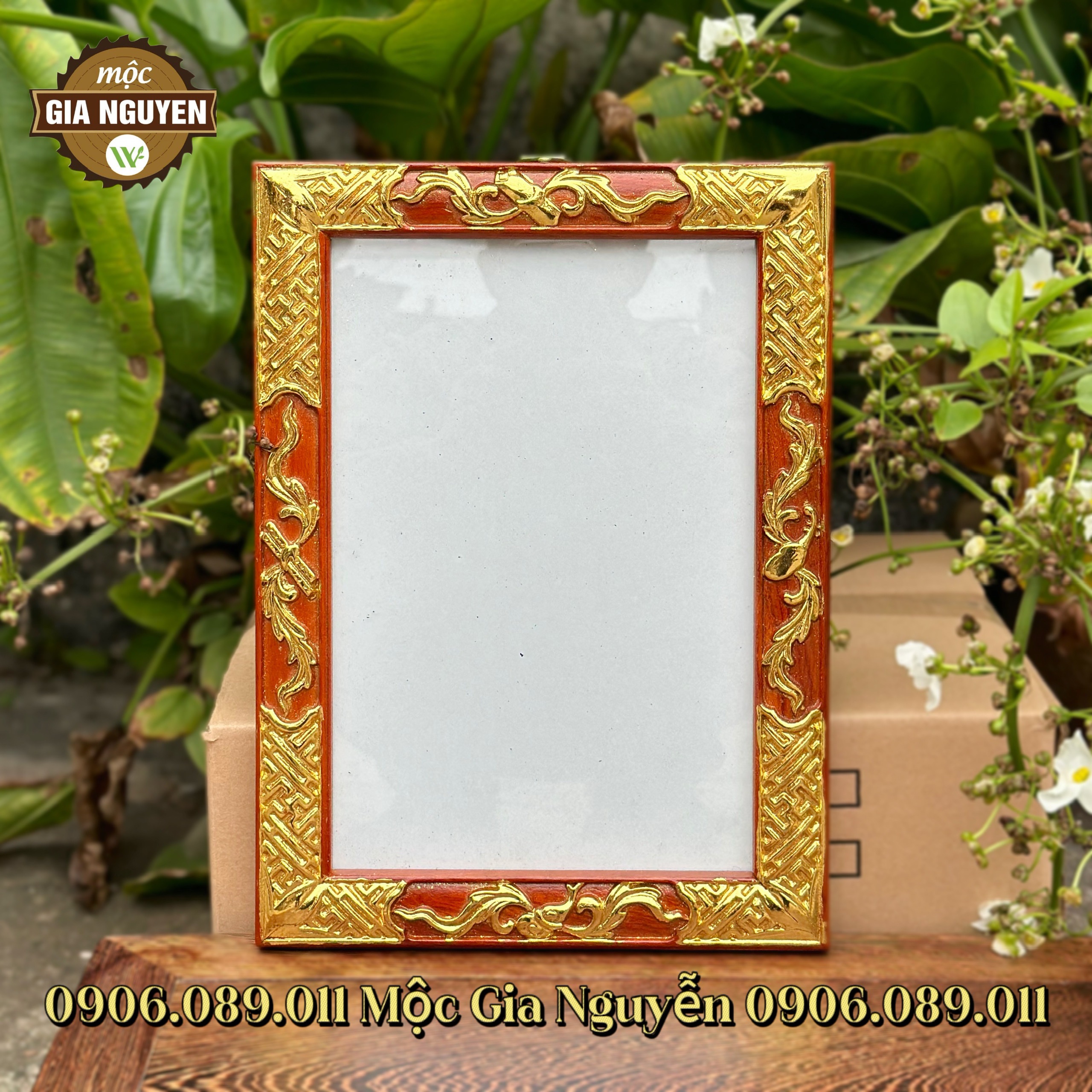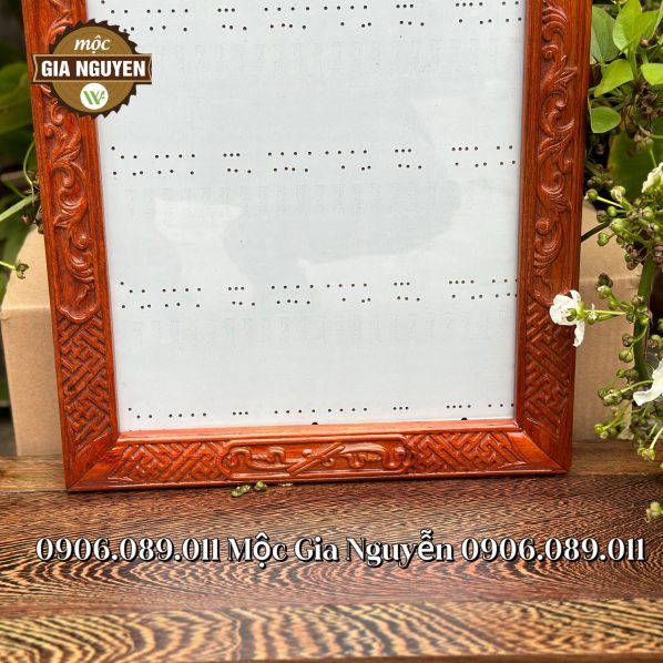 Khung ảnh thờ treo đục cuốn thư gỗ hương cao cấp 20x30cm