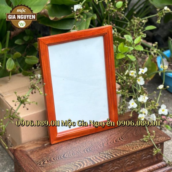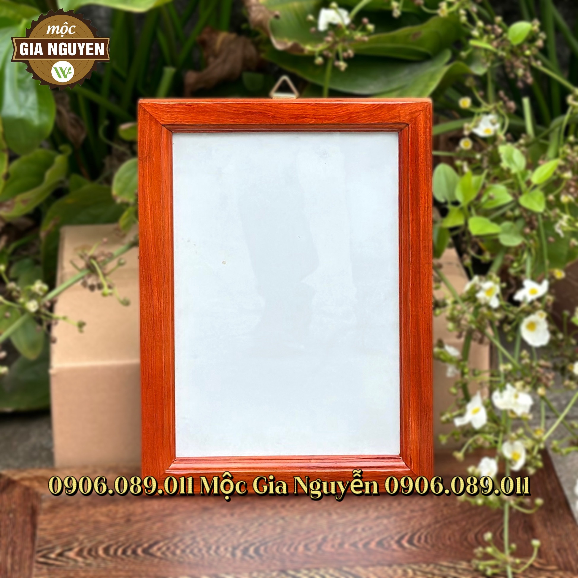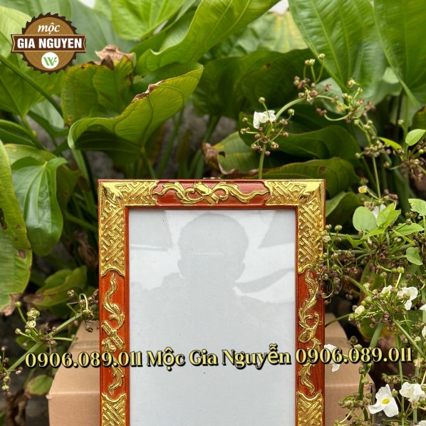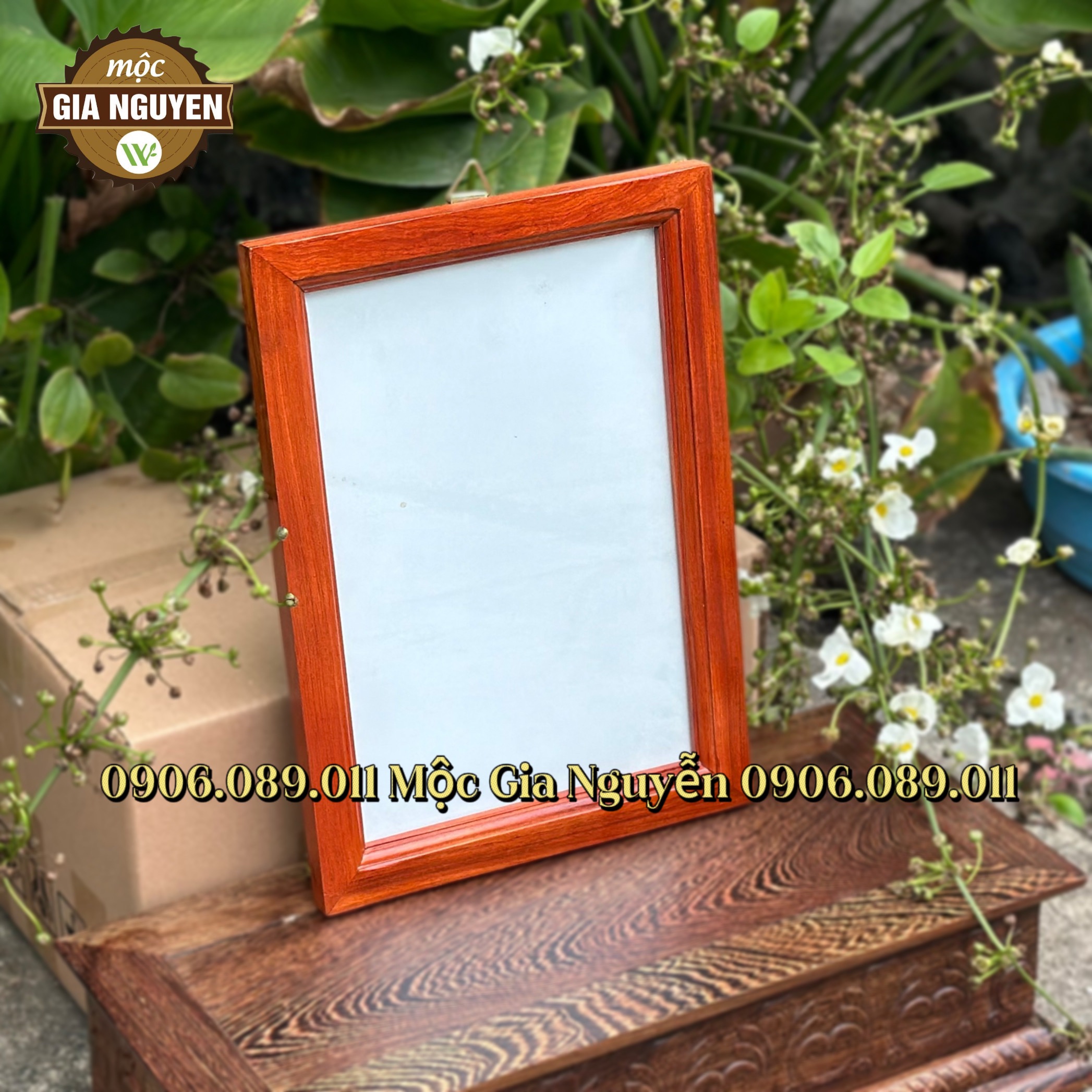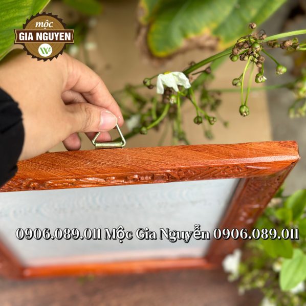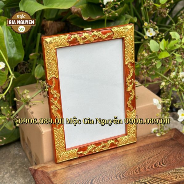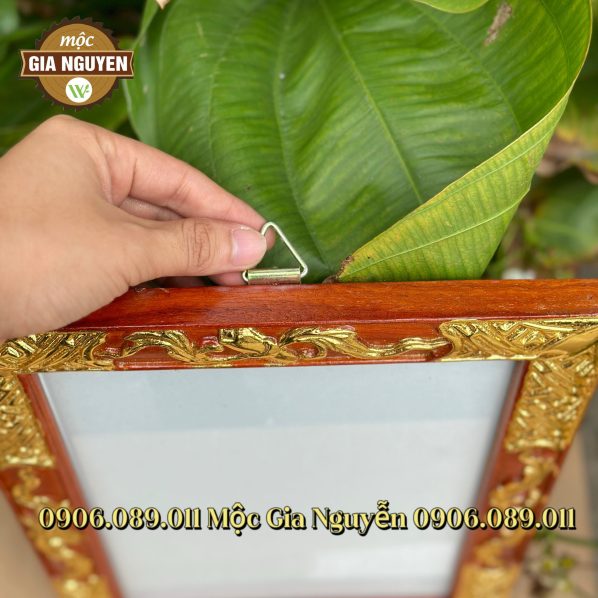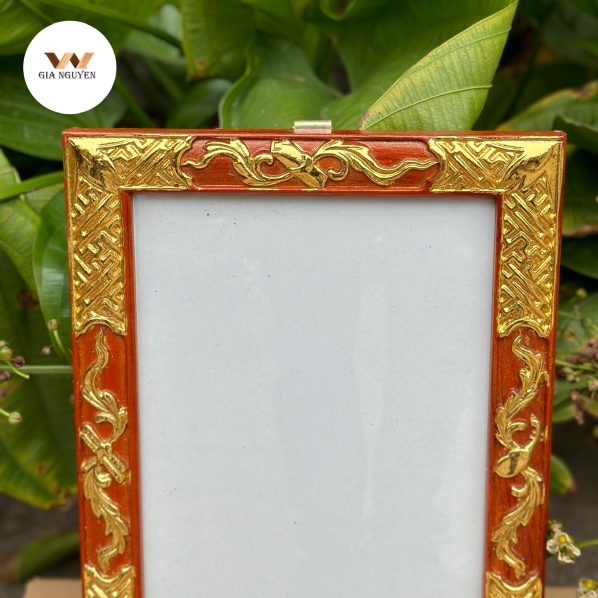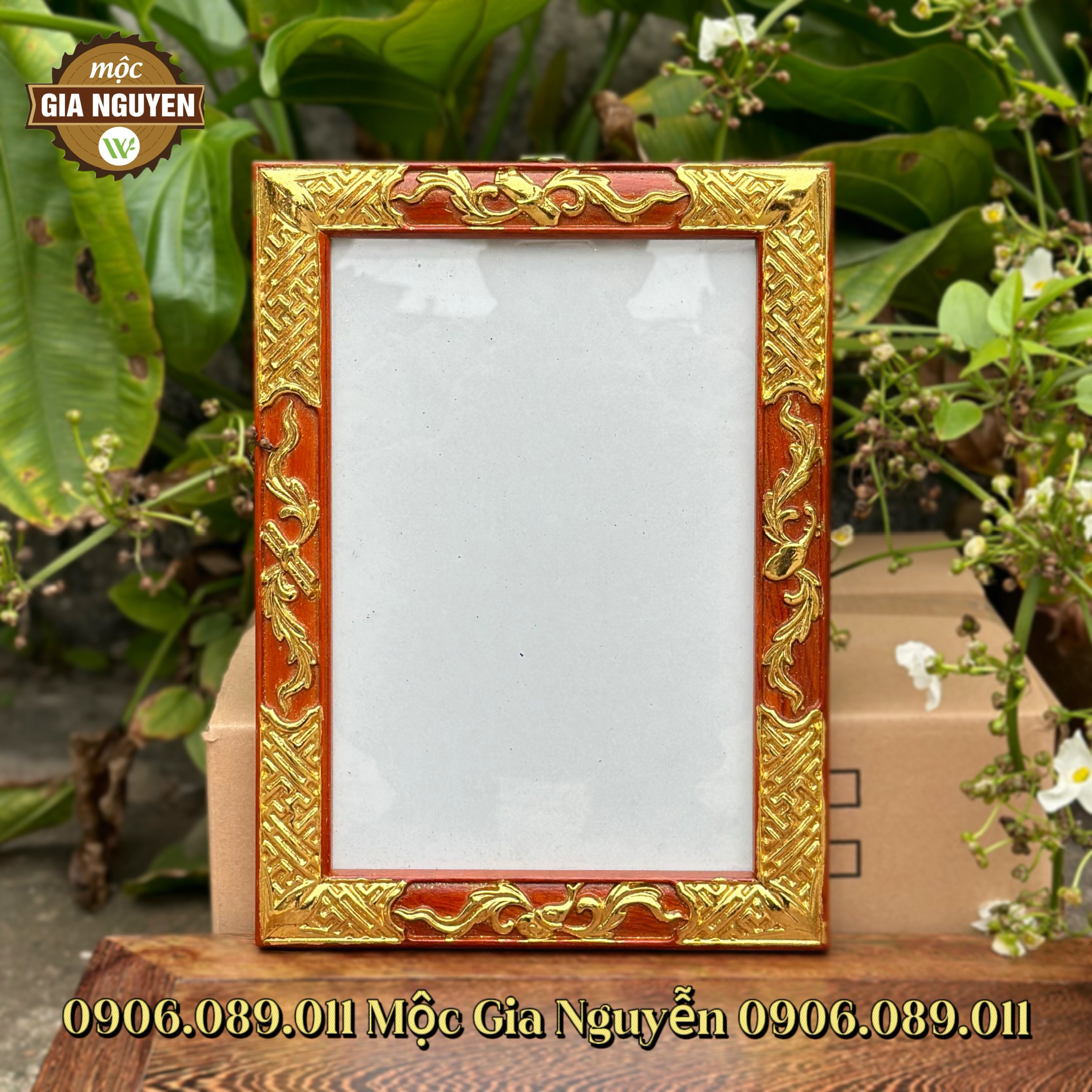 Khung ảnh thờ treo đục cuốn thư gỗ hương cao cấp 20x30cm