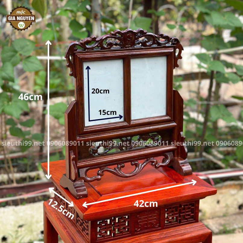 Kích thước: Di ảnh: 15x20cm; Phủ bì: Cao 46cm x Ngang 42cm x Sâu 12.5cm