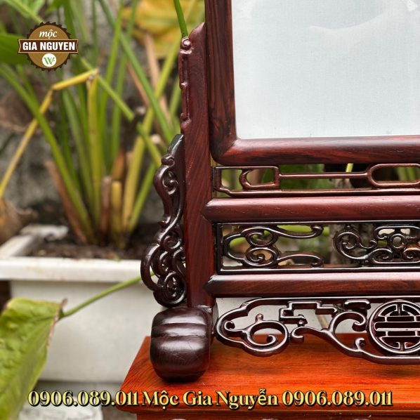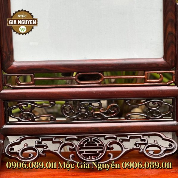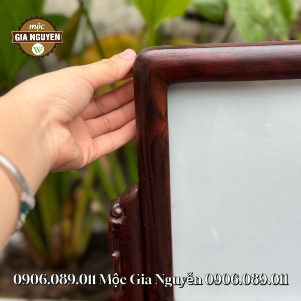 Khung ảnh đôi gỗ trắc được hoàn thiện qua nhiều công đoạn: đánh giấy nhám nhiều lần, sơn Pu nhiều lớp cho ra sản phẩm nhẵn phẳng đạt yêu cầu thẩm mỹ cao. Giữ nguyên được vân gỗ rất đẹp.