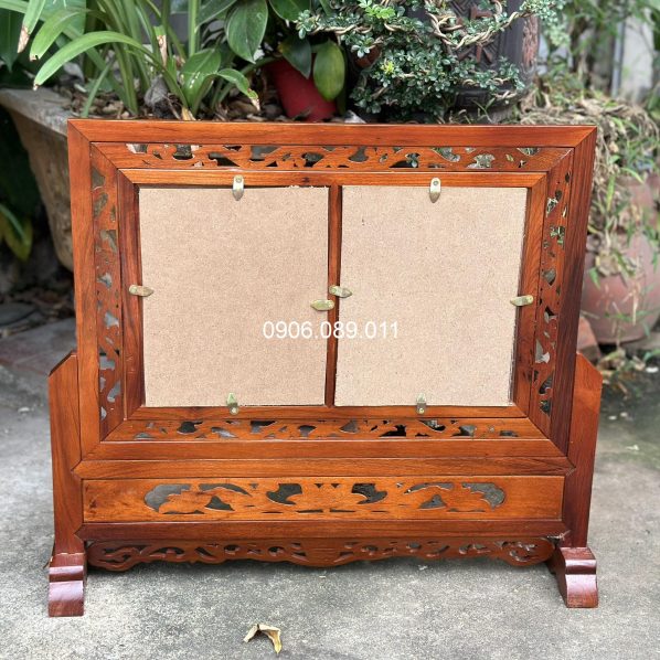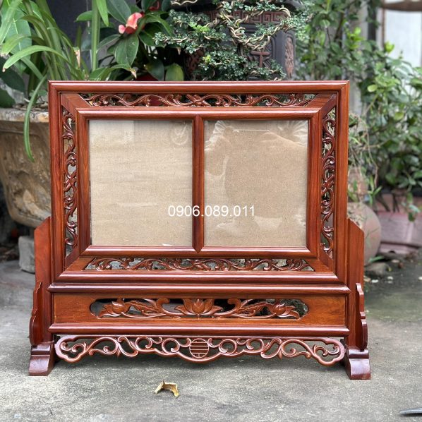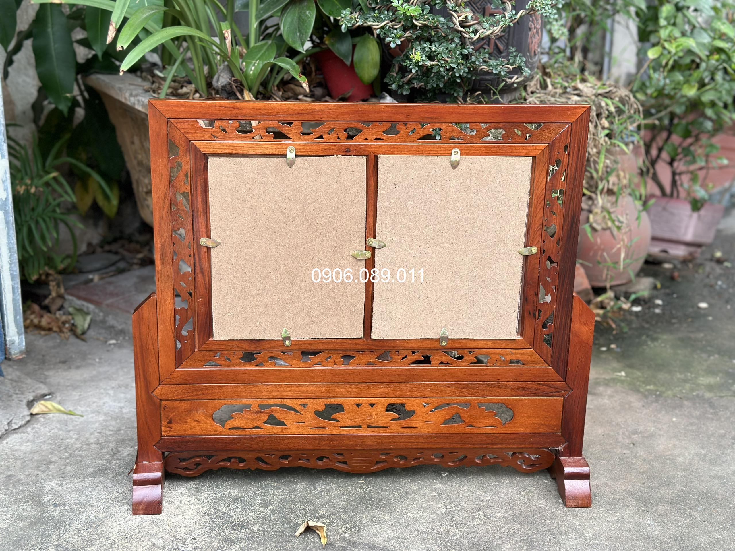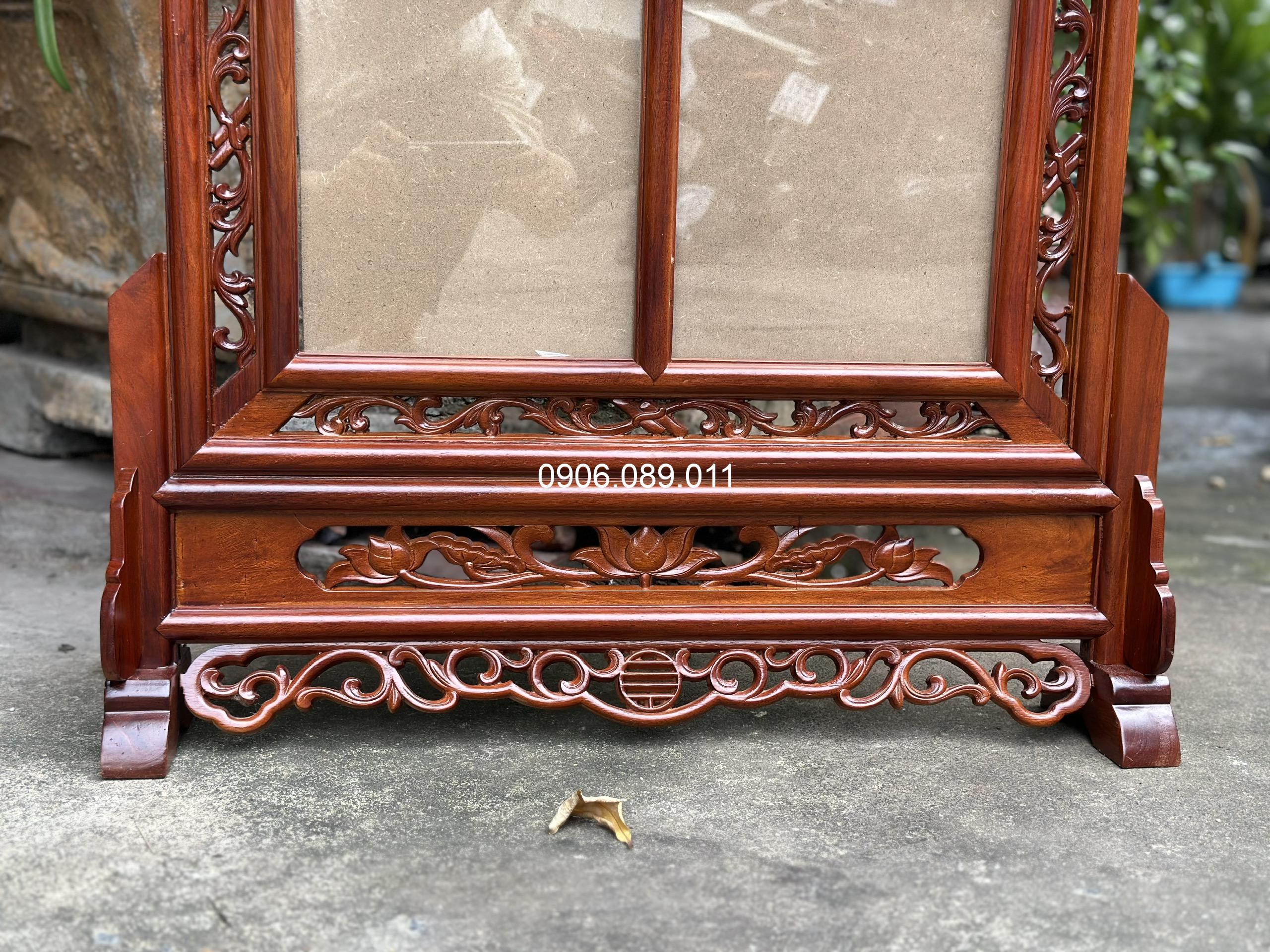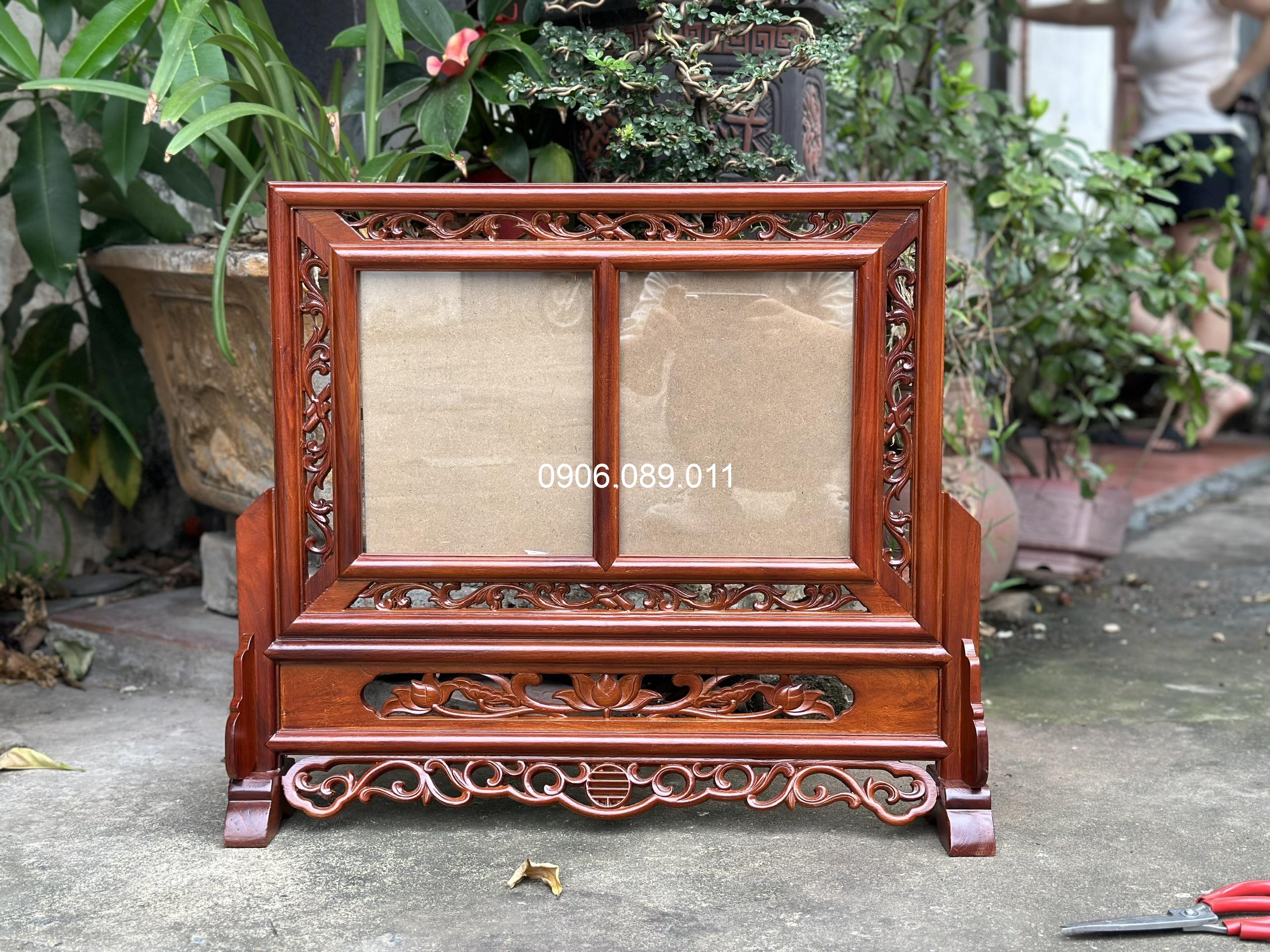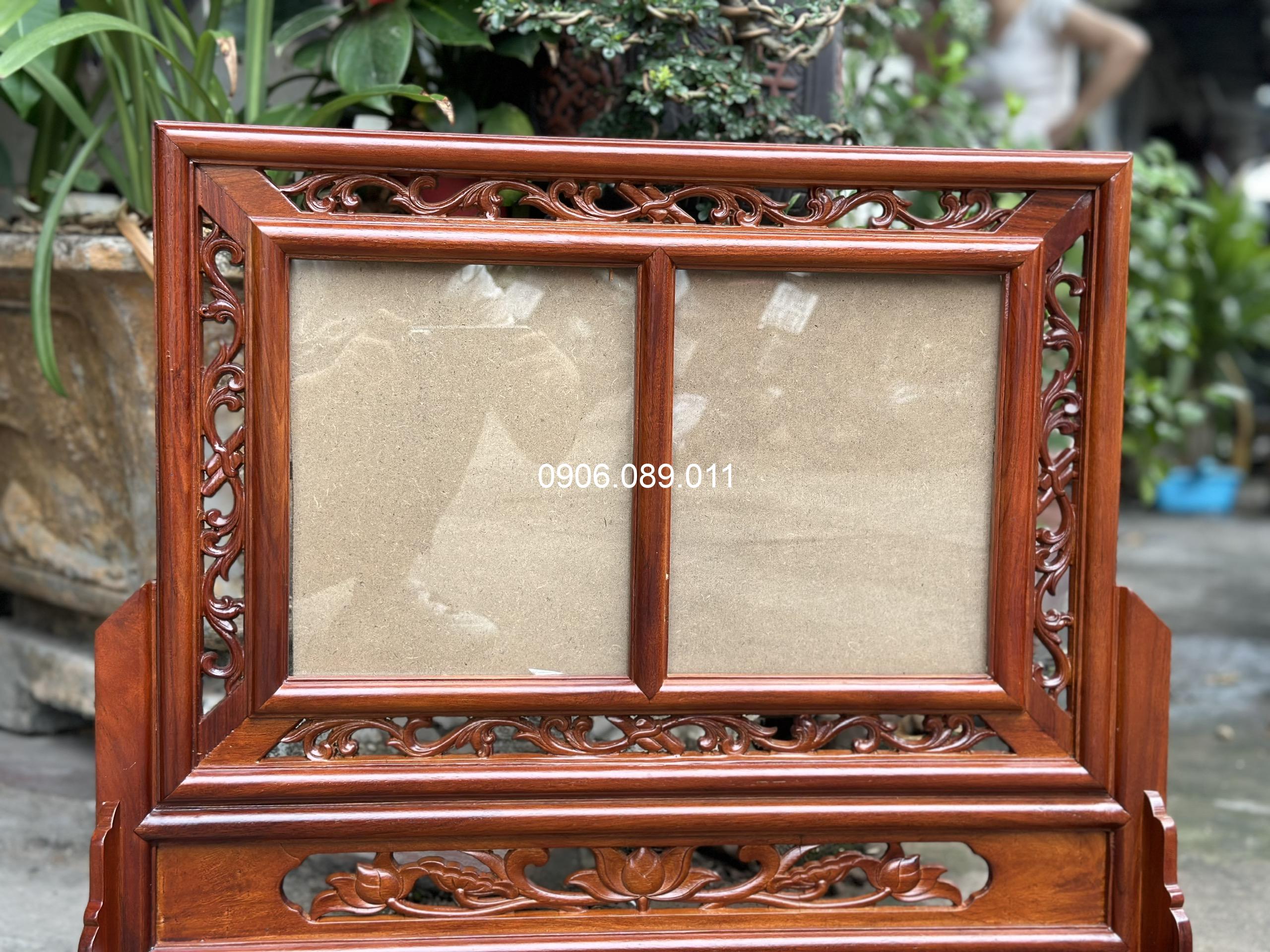 Khung ảnh thờ đôi hoa lá tây gỗ hương cao cấp 18x24cm