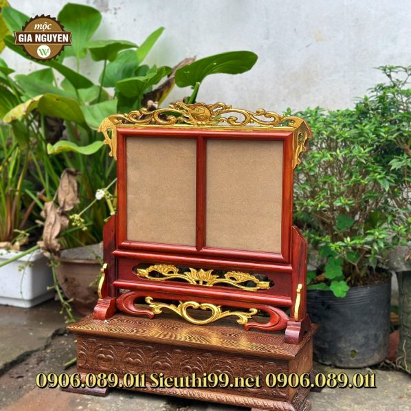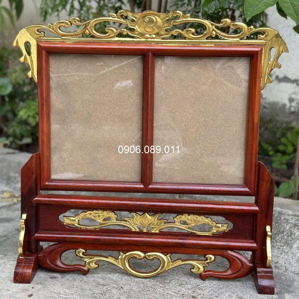 Khung ảnh thờ đơn giản dát vàng gỗ hương 18x24cm