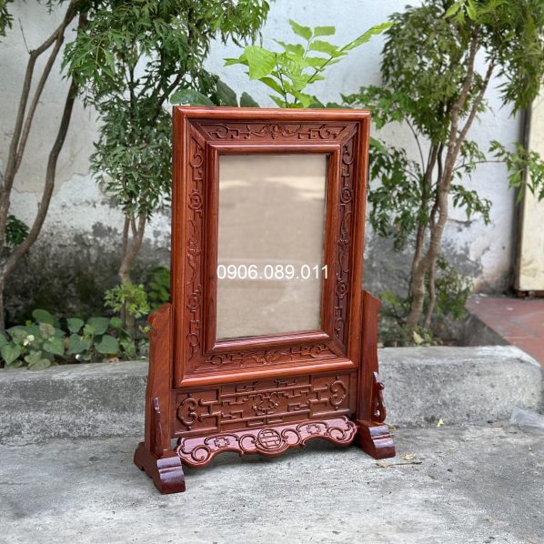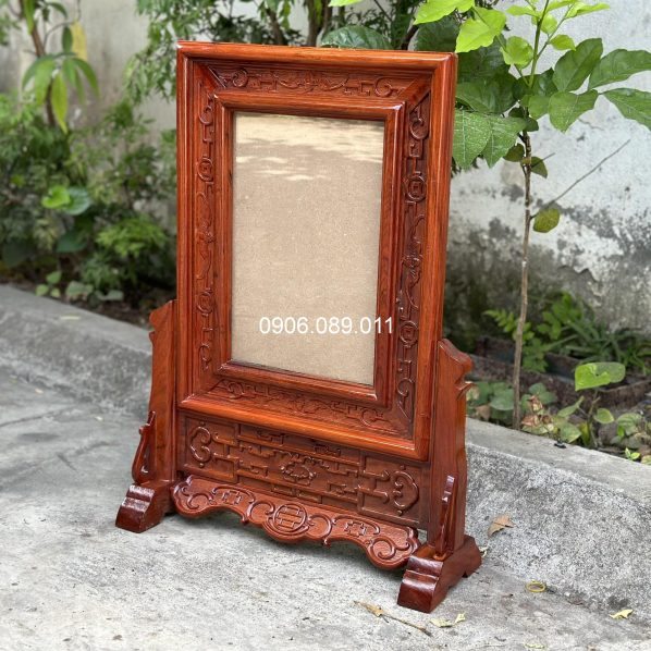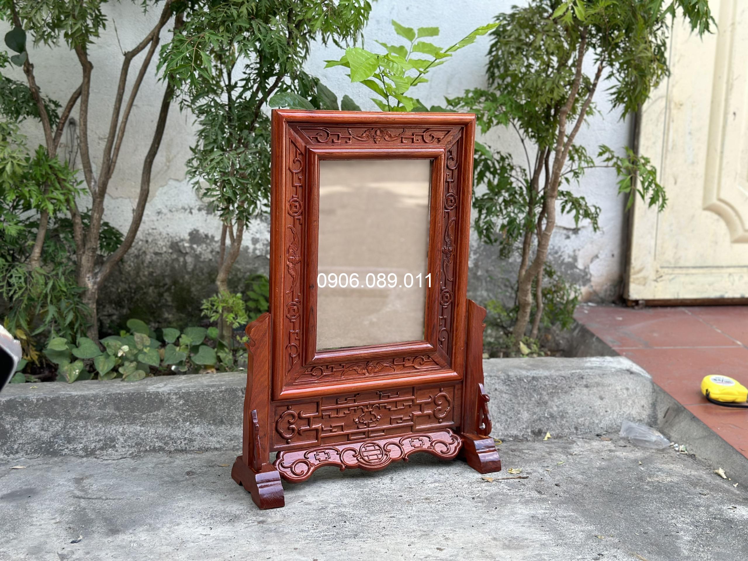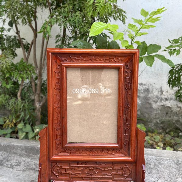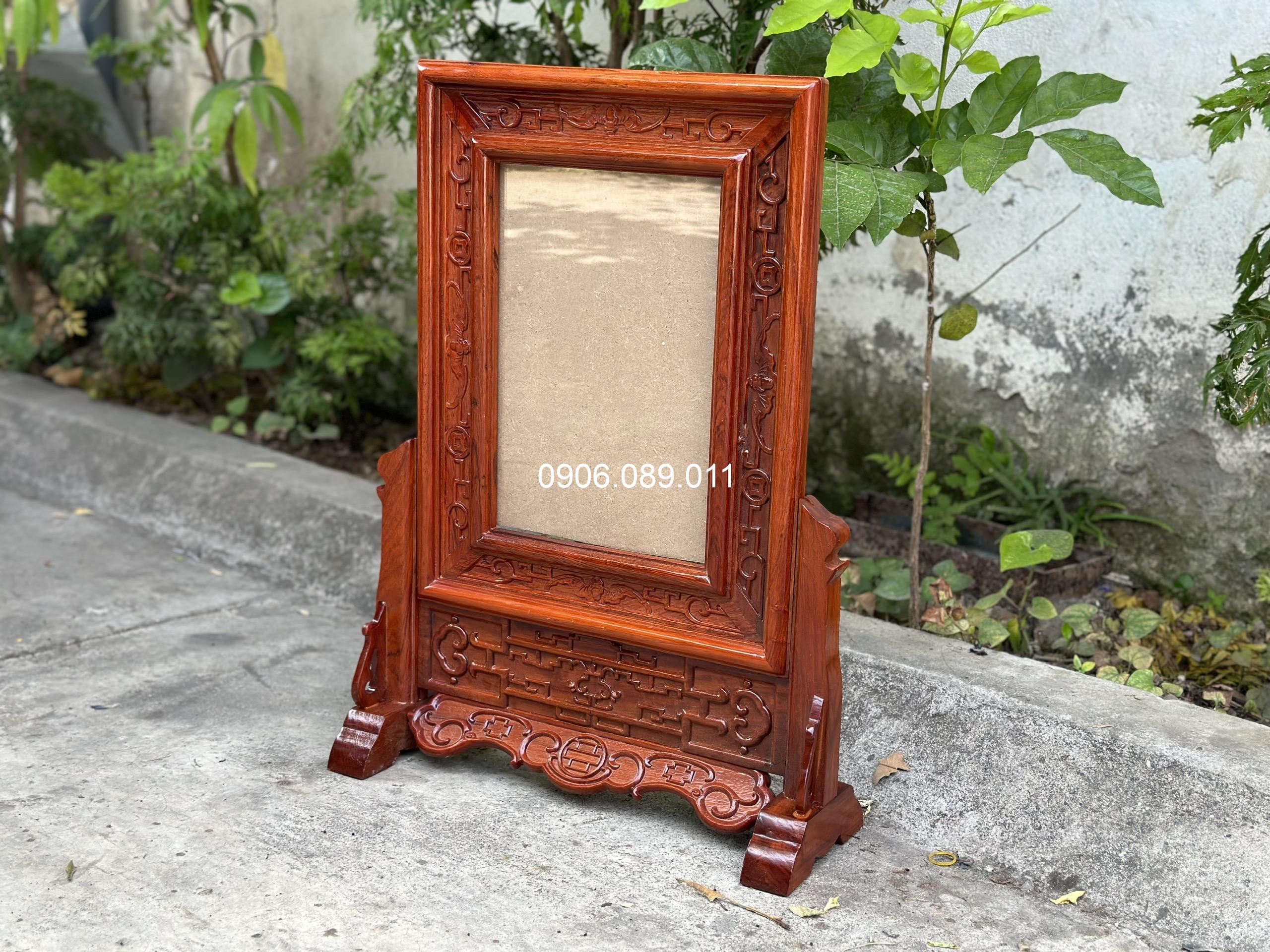Khung ảnh thờ đục dơi tiền liền gỗ hương Đồng Kỵ 20x30cm