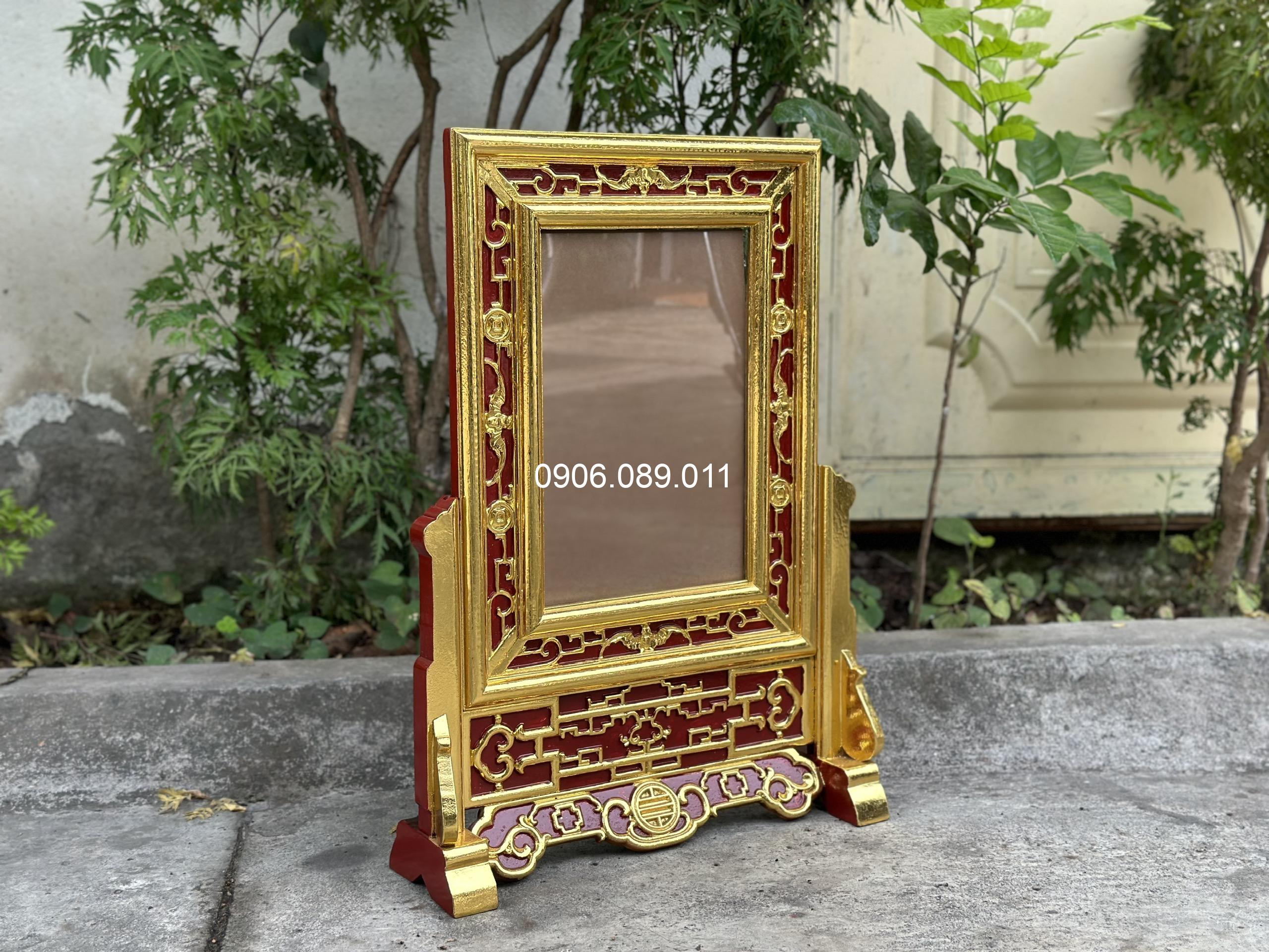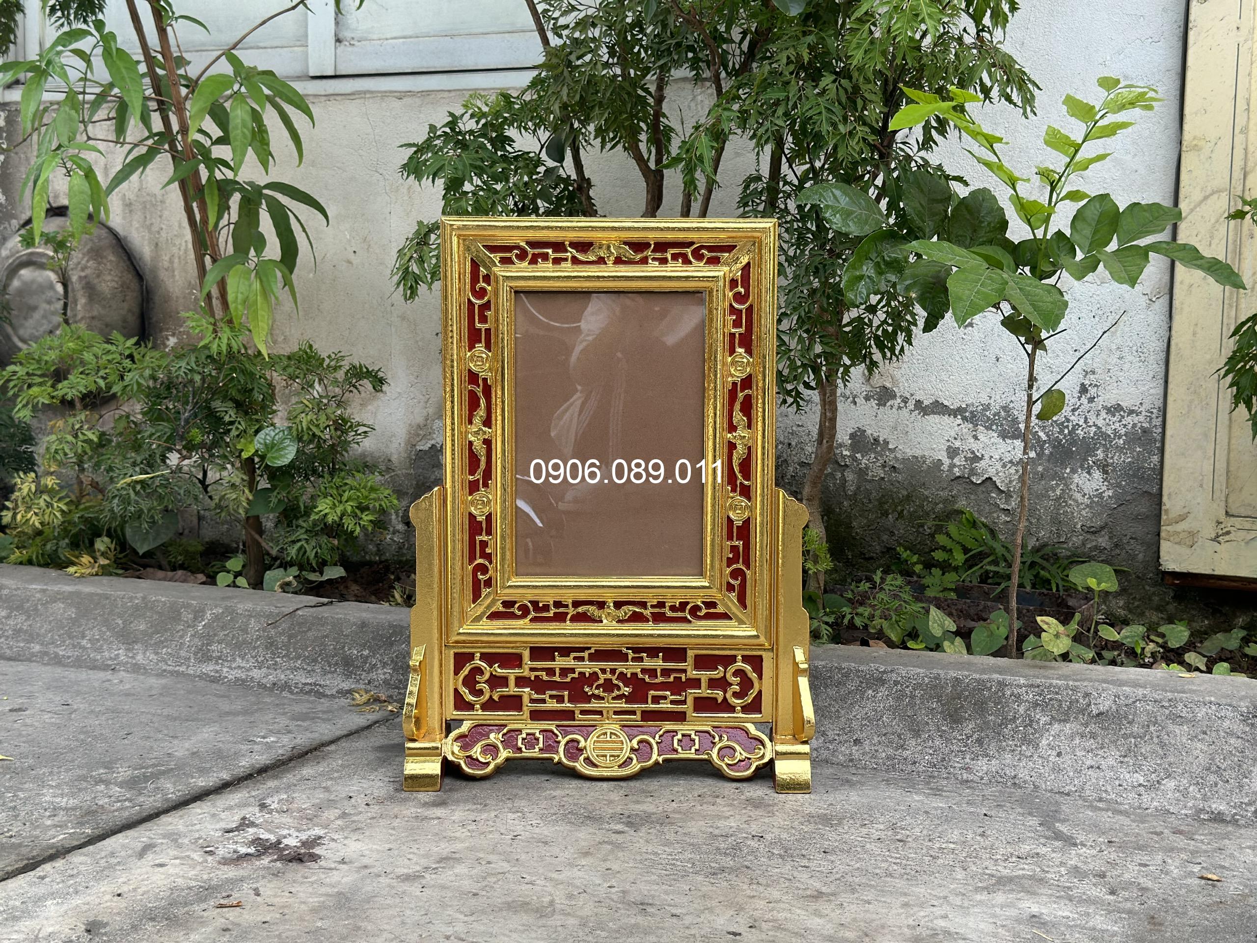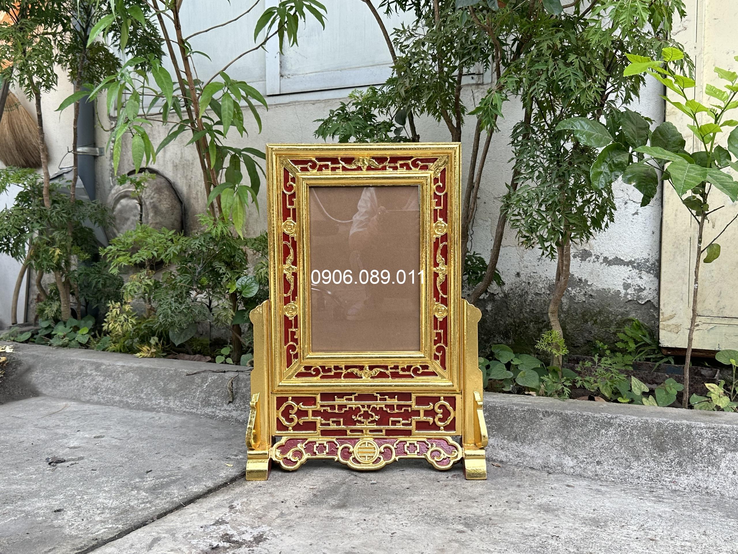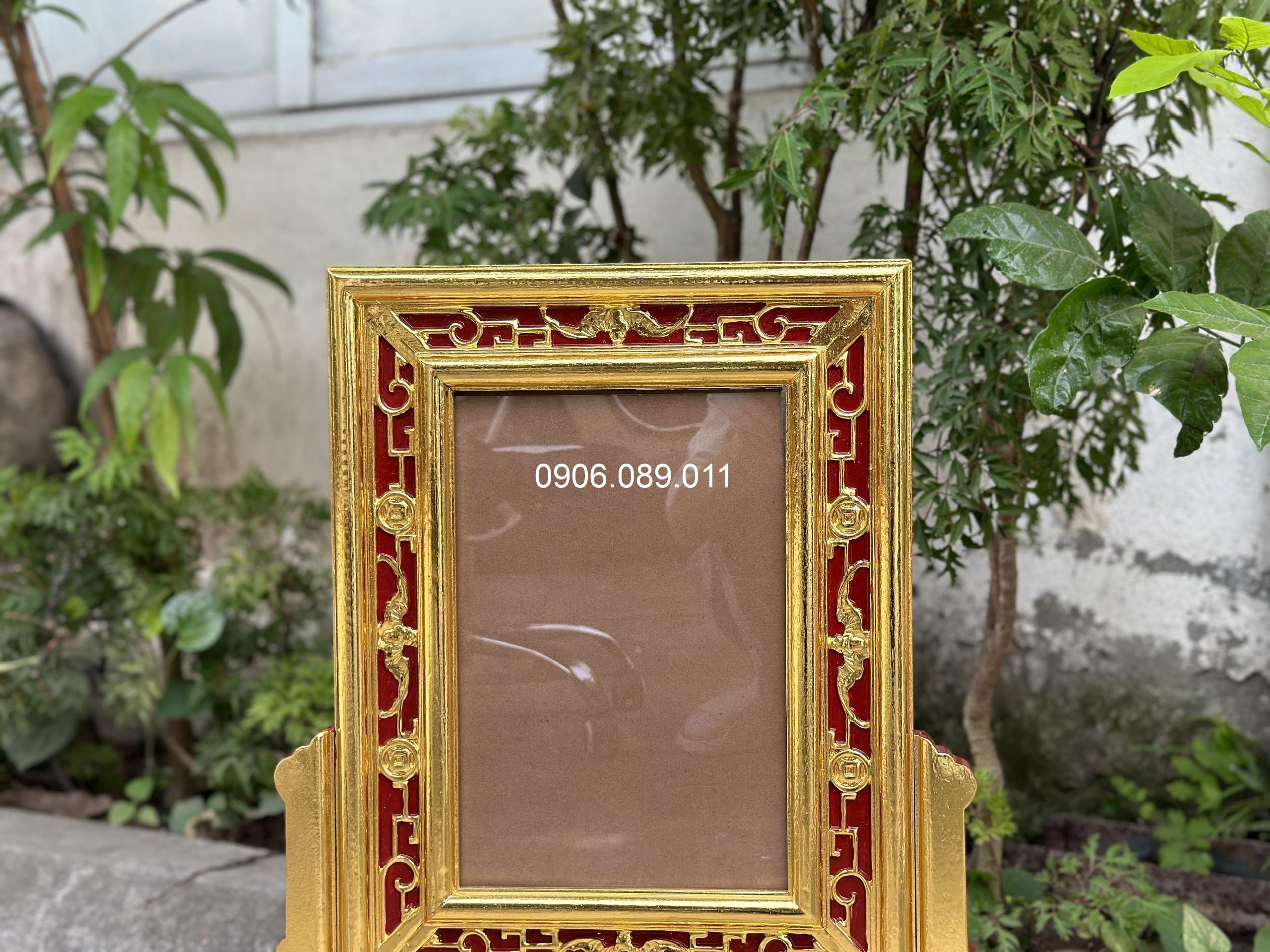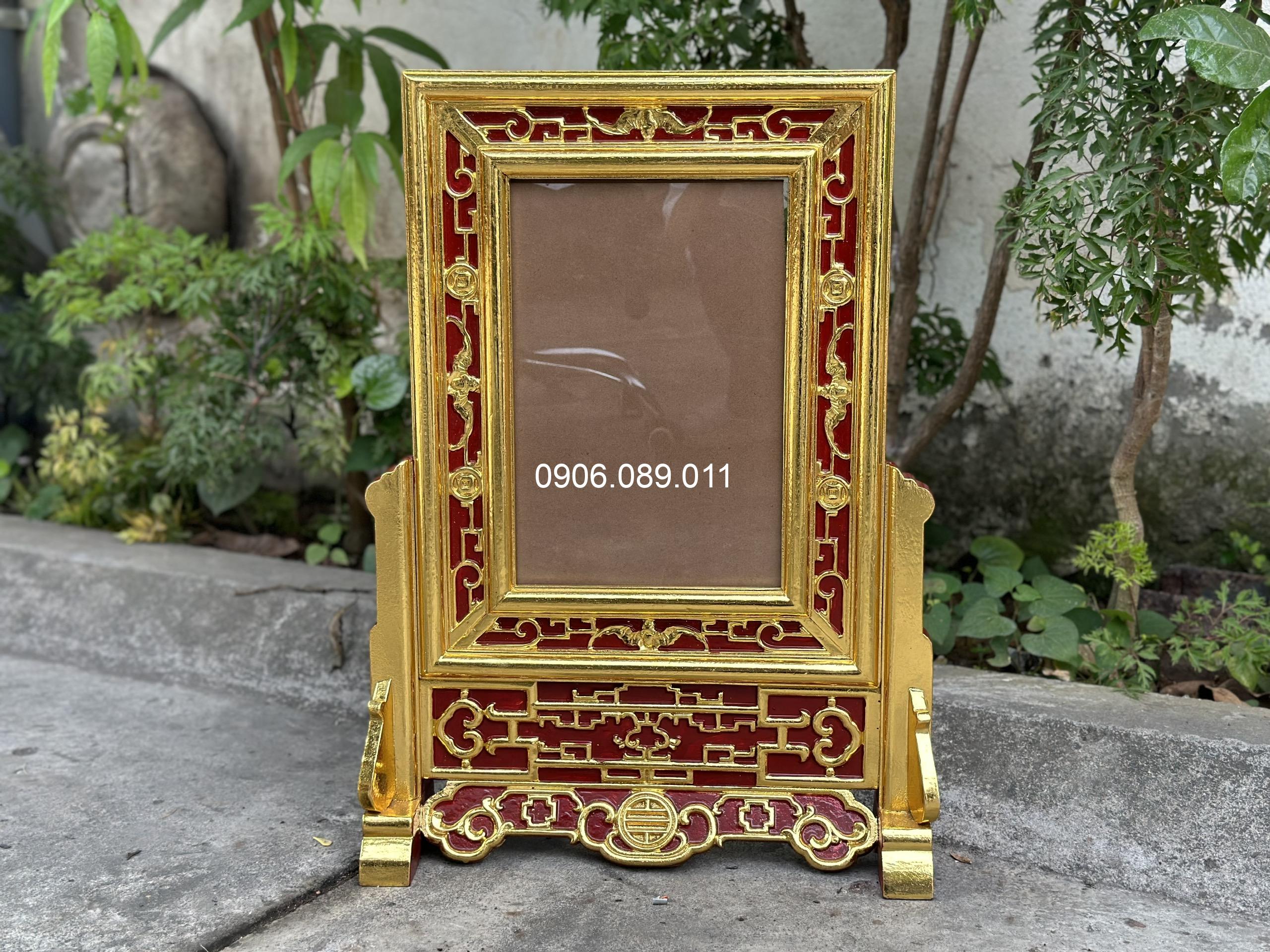Khung Ảnh Thờ Đục Dơi Tiền Sơn Son Thếp Vàng Gỗ Hương 20×30 cm