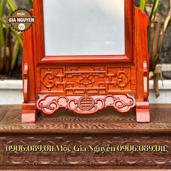 Khung ảnh thờ gỗ hương được thiết kế tinh xảo, tôn vinh giá trị của cuộc sống và mong muốn sự thịnh vượng cho gia đình.