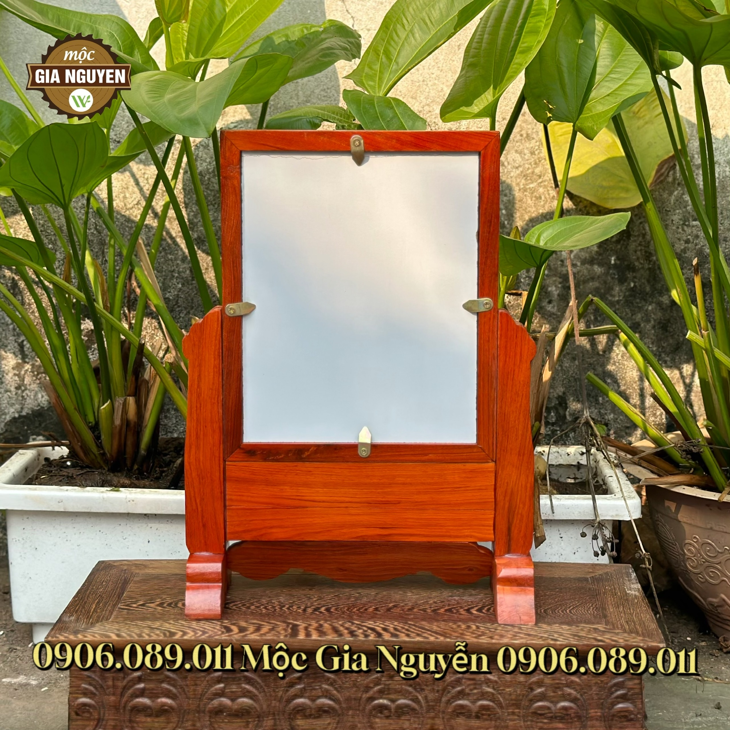 Khung ảnh thờ gỗ hương 18x24cm được hoàn thiện qua nhiều công đoạn: đánh giấy nhám nhiều lần, sơn Pu nhiều lớp cho ra sản phẩm nhẵn phẳng đạt yêu cầu thẩm mỹ cao. Giữ nguyên được vân gỗ rất đẹp.