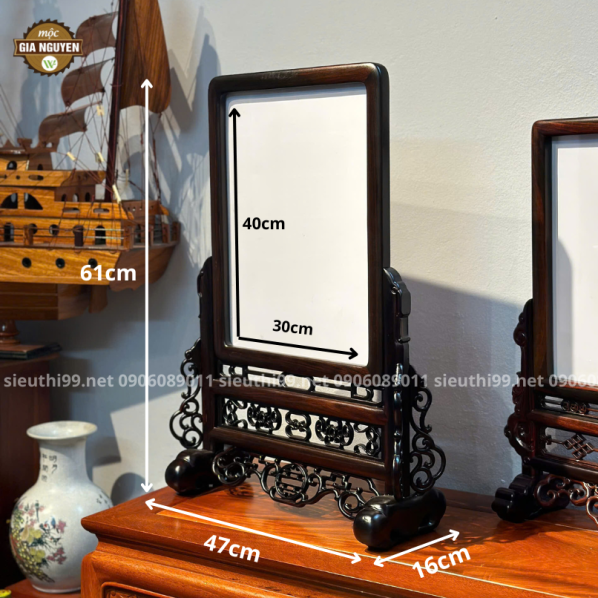 Kích thước tiêu chuẩn 30×40 cm: Khung ảnh thờ gỗ trắc có kích thước phù hợp để đặt các bức ảnh thờ cúng phổ biến. Dễ dàng bố trí trên bàn thờ gia tiên, bàn thờ Phật, hoặc các vị trí trang nghiêm khác trong nhà.