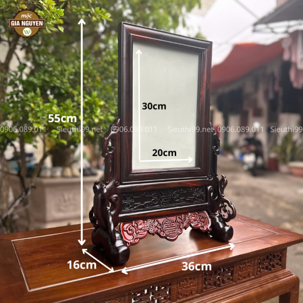 Kích thước phù hợp: Phù hợp để đặt di ảnh kích thước 20x30cm, với tổng thể phủ bì cao 55cm, ngang 36cm, sâu 16cm. Thiết kế cân đối giúp hài hòa với không gian thờ cúng.