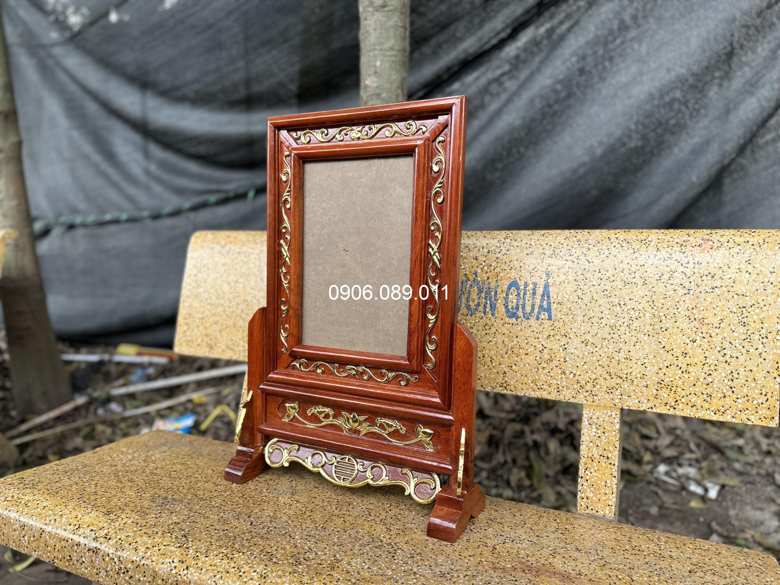Khung Ảnh Thờ Hoa Lá Tây Dát Vàng Gỗ Hương 20×30 cm