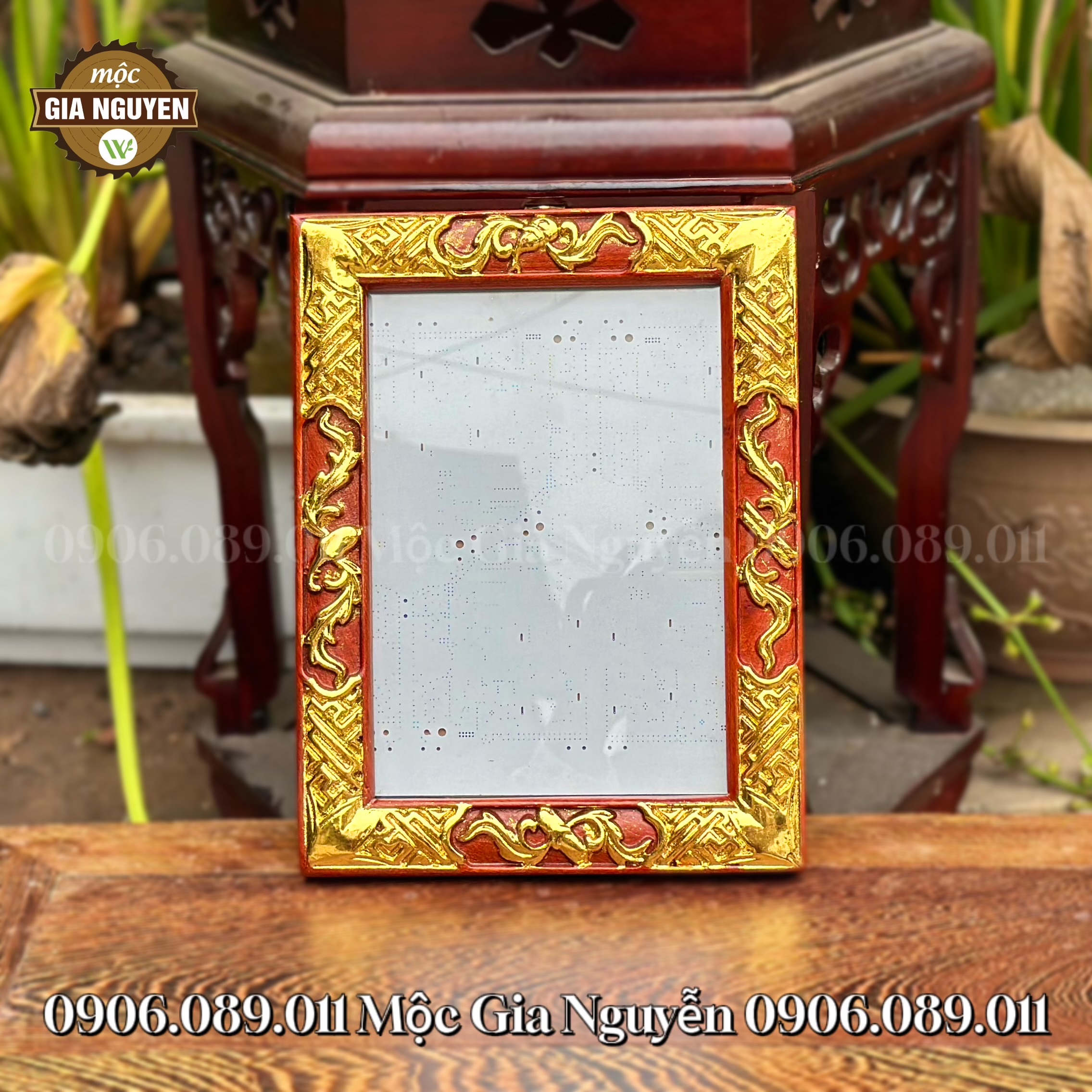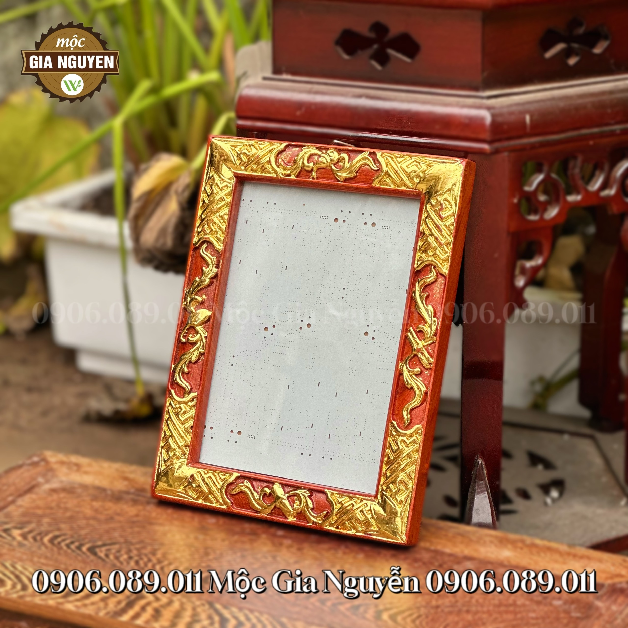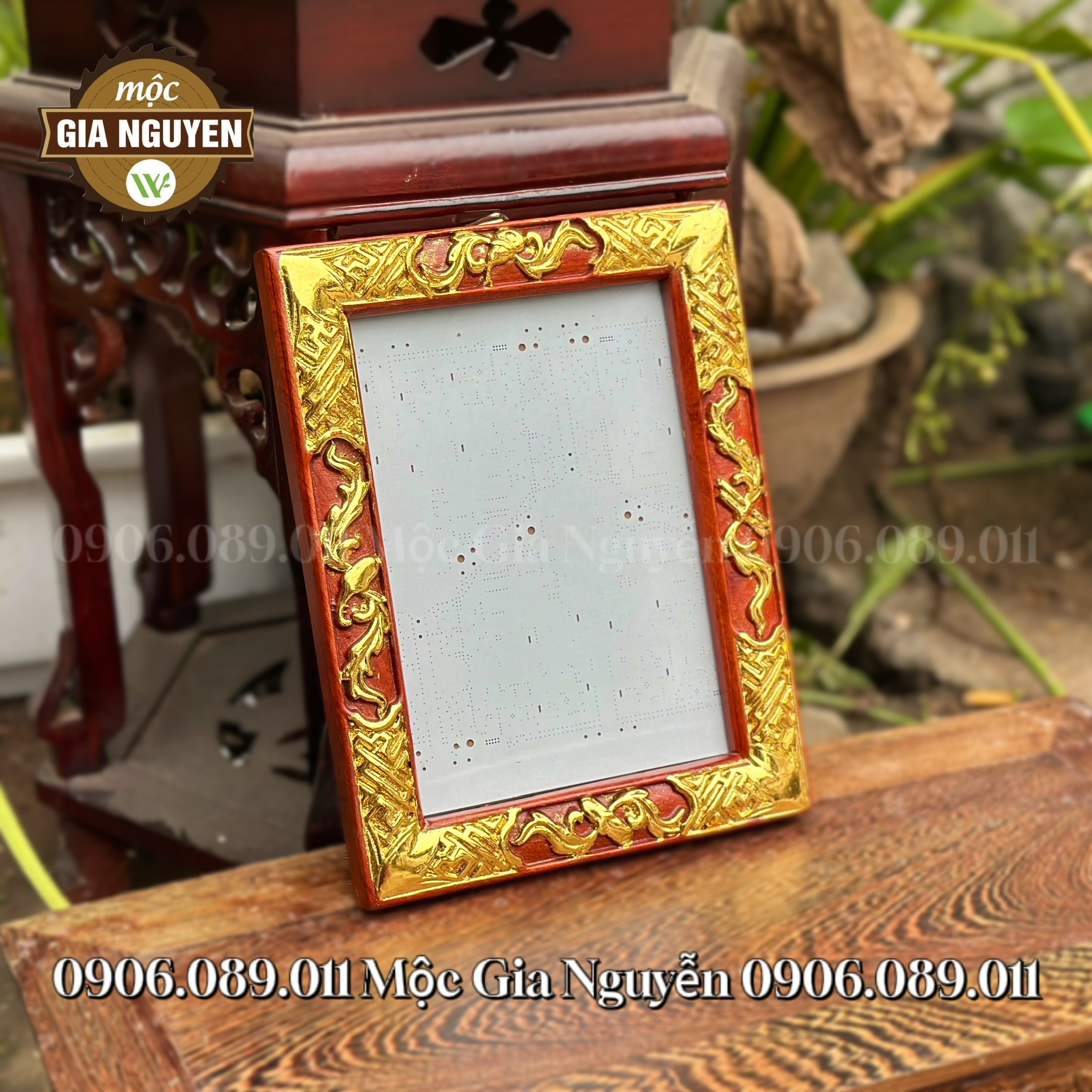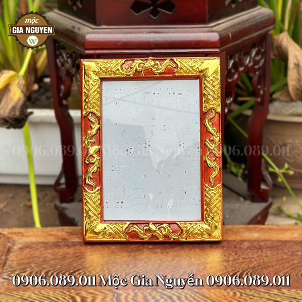 Khung Ảnh Thờ Treo Cuốn Thư Gỗ Hương Dát Vàng 18×24 cm