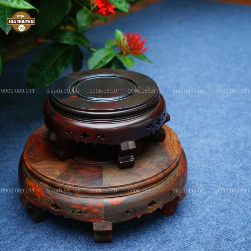 Kỷ tròn gỗ trắc thường được sử dụng để kê các vật phẩm phong thủy như pha lê, thạch anh, tượng Phật, hoặc cây cảnh nhỏ.