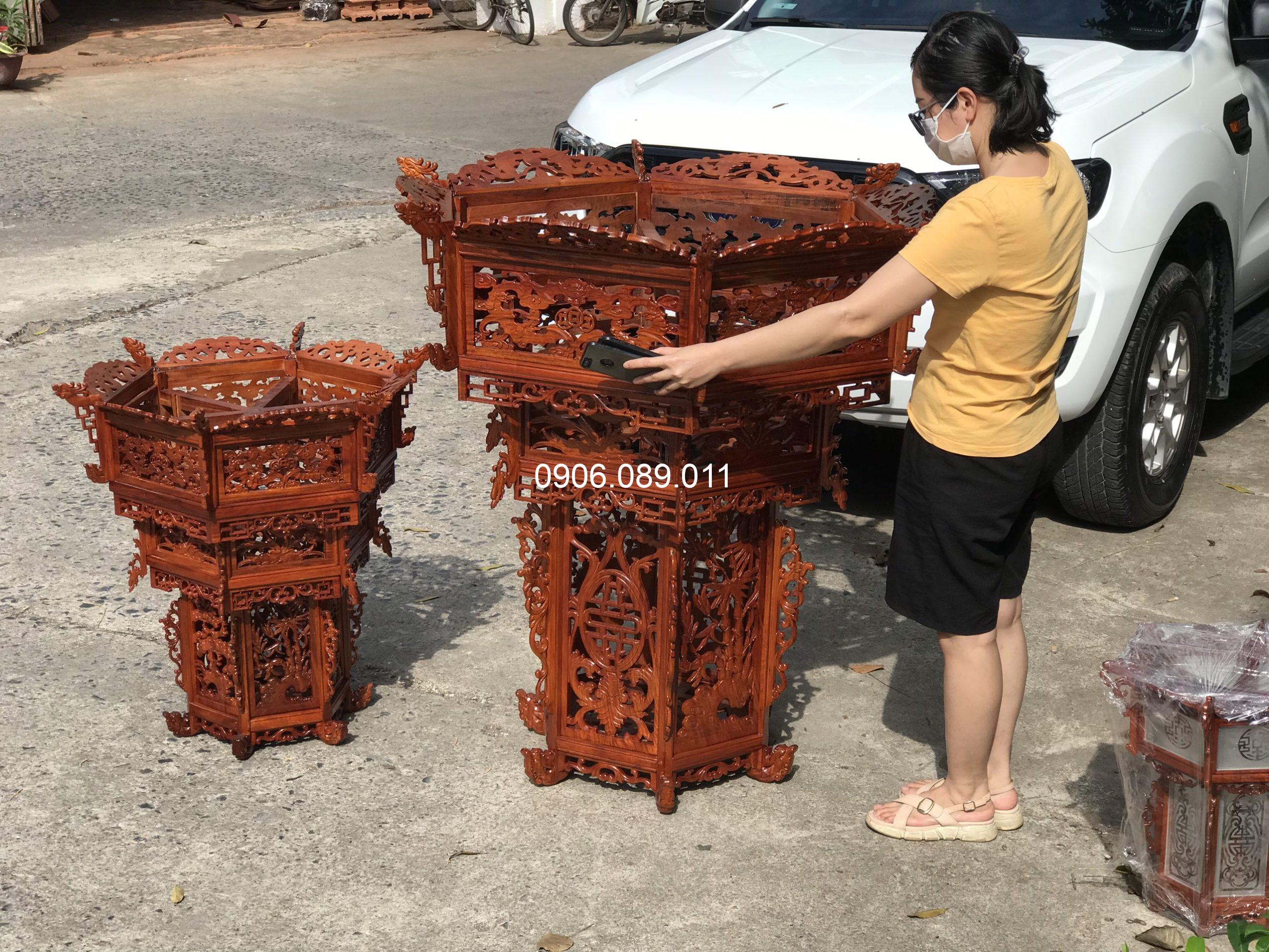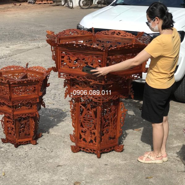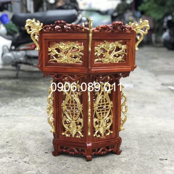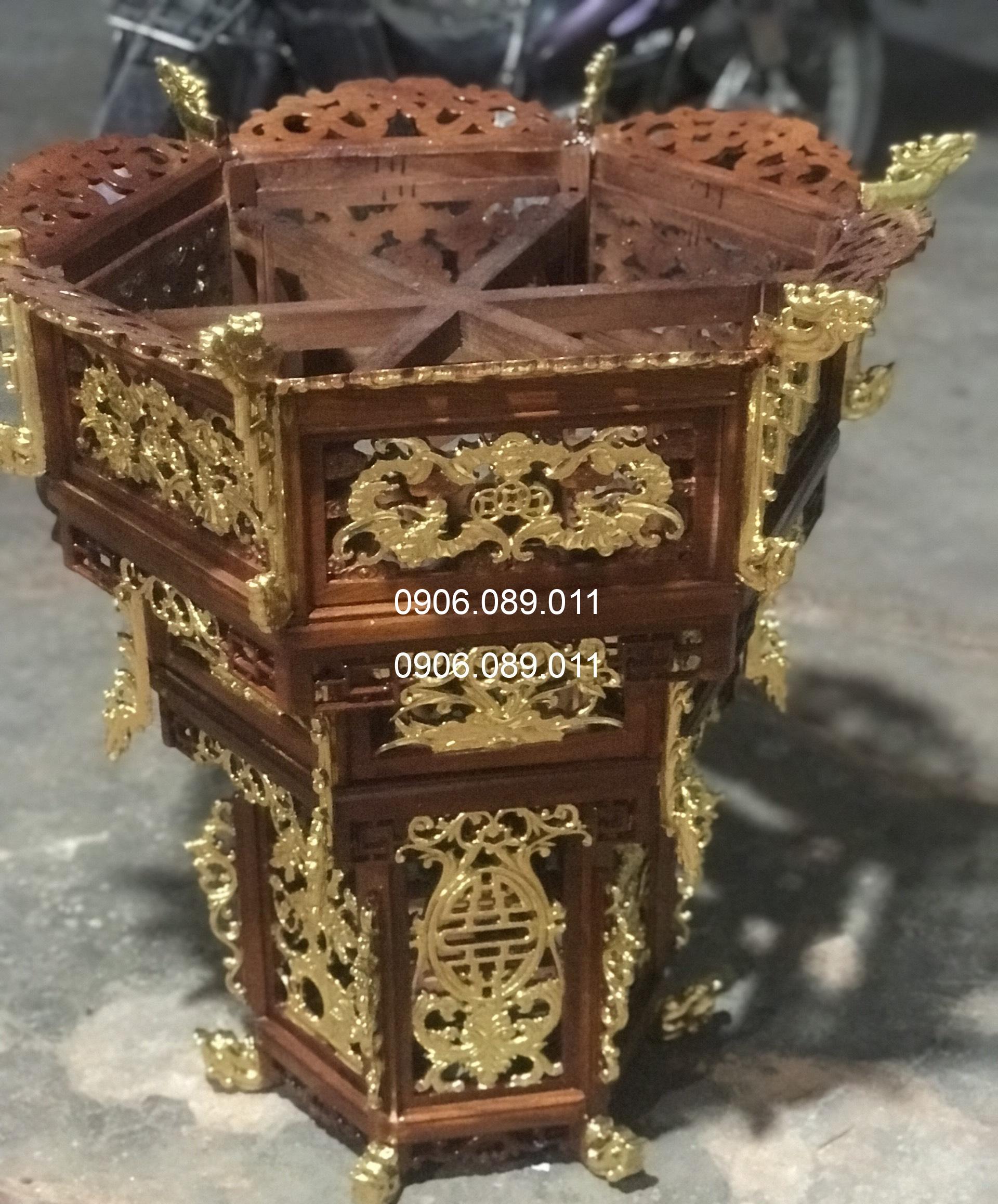 Lồng đèn gỗ hương dát vàng 1.2m