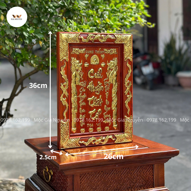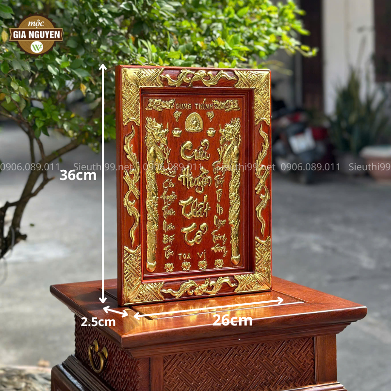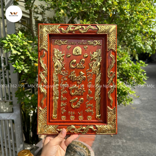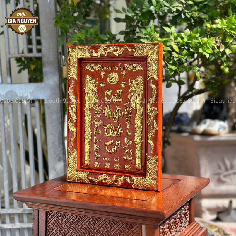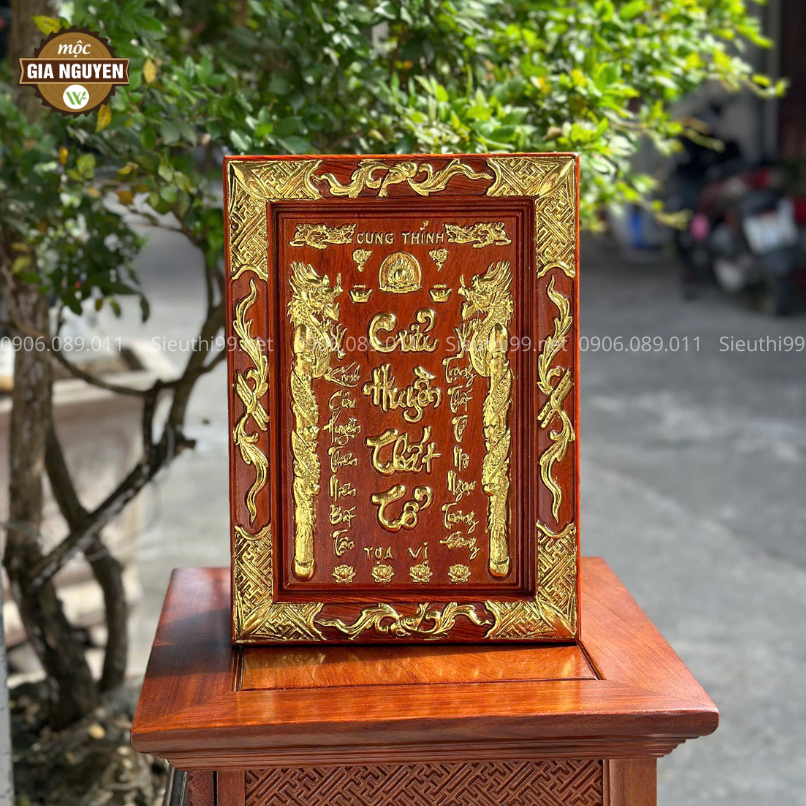 Tranh Cửu Huyền Thất Tổ gỗ hương cỡ nhỏ 26x36cm là lựa chọn hoàn hảo để trang trí không gian thờ cúng. Với thiết kế tinh xảo, chất liệu cao cấp và ý nghĩa tâm linh sâu sắc. Sản phẩm không chỉ tôn vinh truyền thống kính tổ tiên mà còn tăng vẻ trang trọng cho bàn thờ gia đình.
