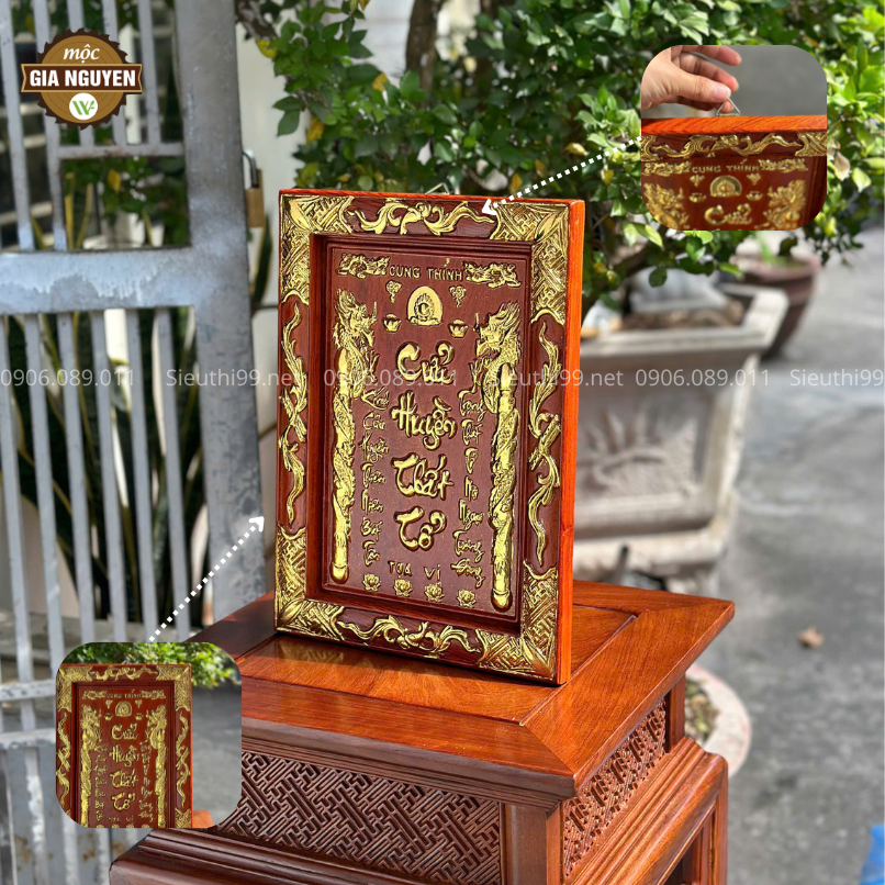 Chạm khắc tinh xảo: Các họa tiết và dòng chữ “Cửu Huyền Thất Tổ” được khắc bằng tay khéo léo. Thể hiện sự khéo léo và tâm huyết của nghệ nhân. Mang đến vẻ đẹp truyền thống và giá trị nghệ thuật cao.