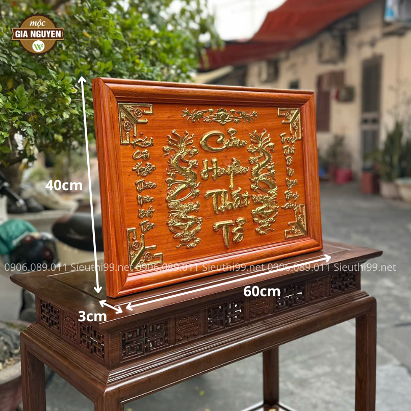 Kích thước: Tranh có kích thước vừa phải: cao 40cm, ngang 60cm, dày 3cm. Phù hợp với nhiều không gian thờ cúng khác nhau.