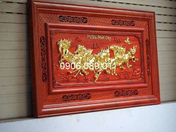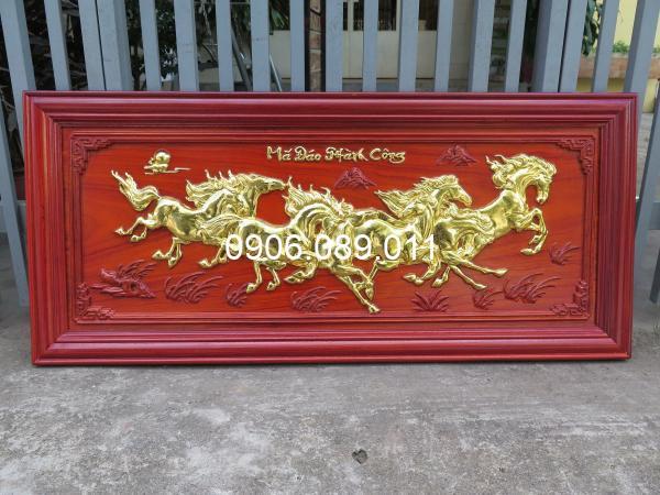 Tranh mã đáo thành công 107x47x3 dát vàng