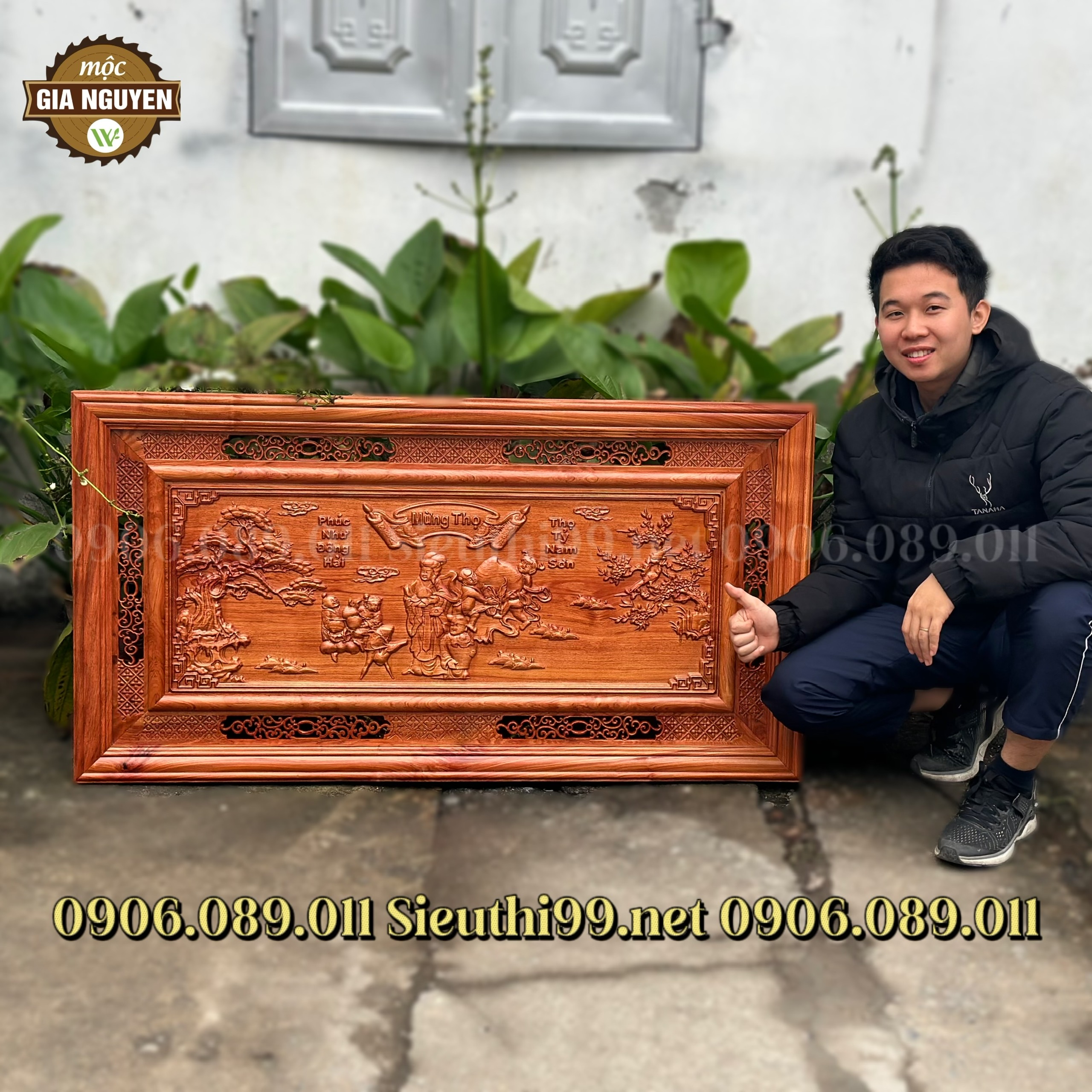 Tranh mừng thọ bà gỗ hương đá cao cấp 67x127cm