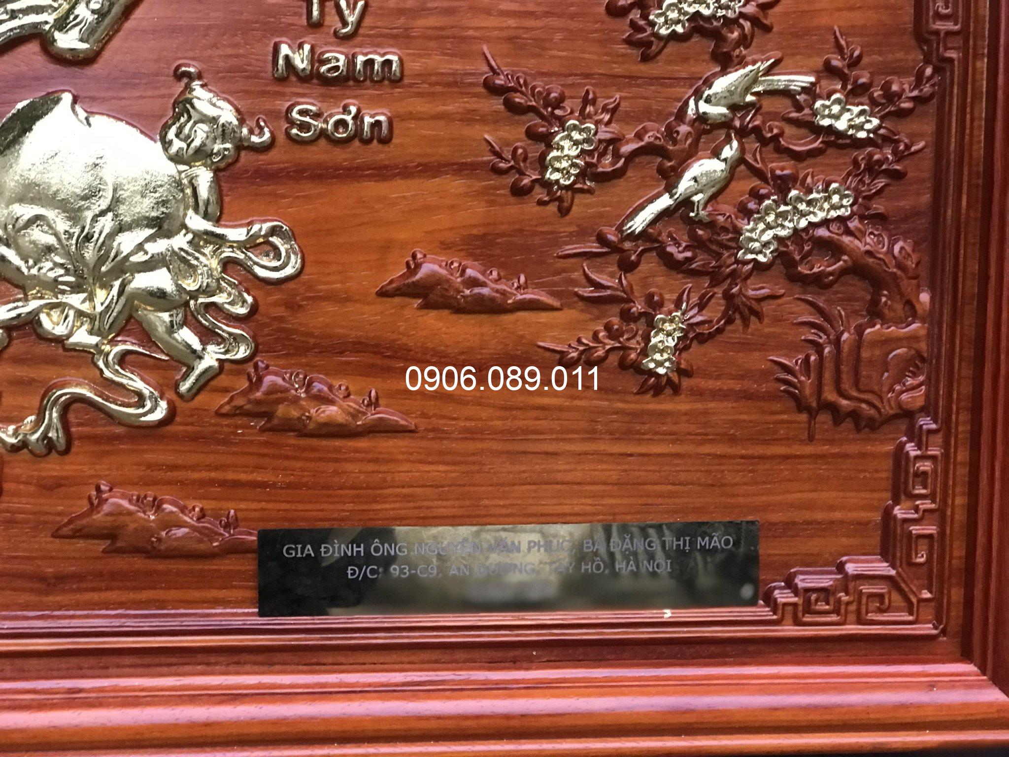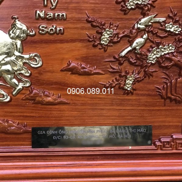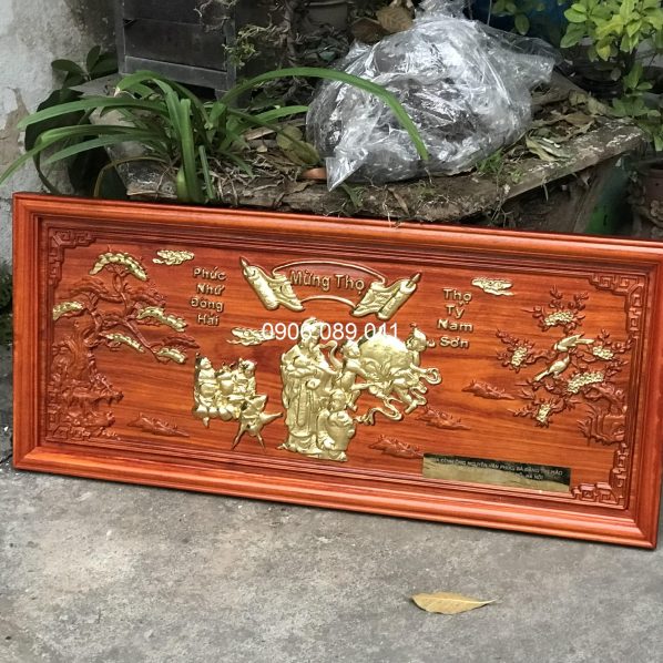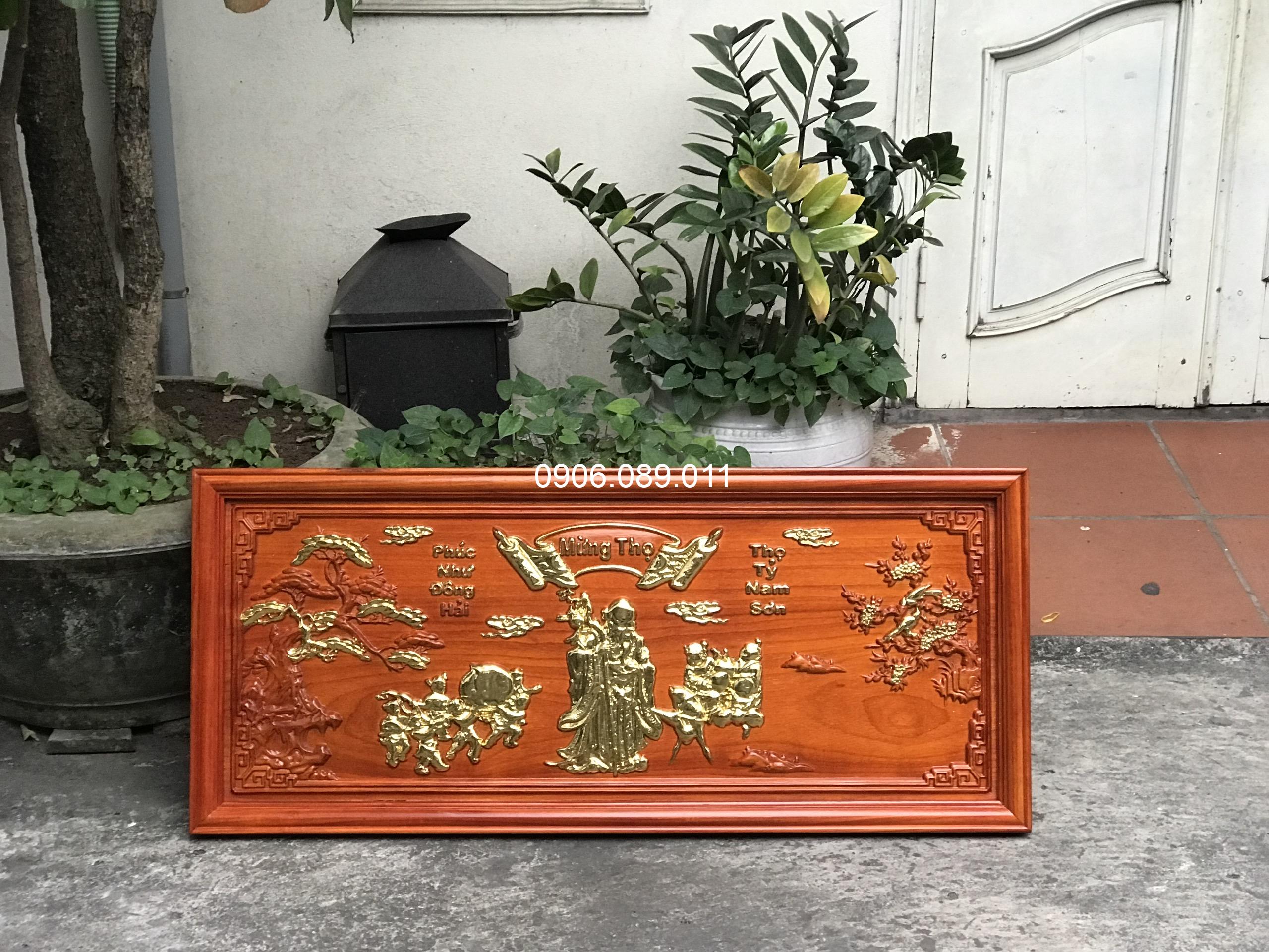 - Tranh mừng thọ bà được phun màu gỗ tự nhiên, phun sơn bóng và dát vàng công nghiệp.