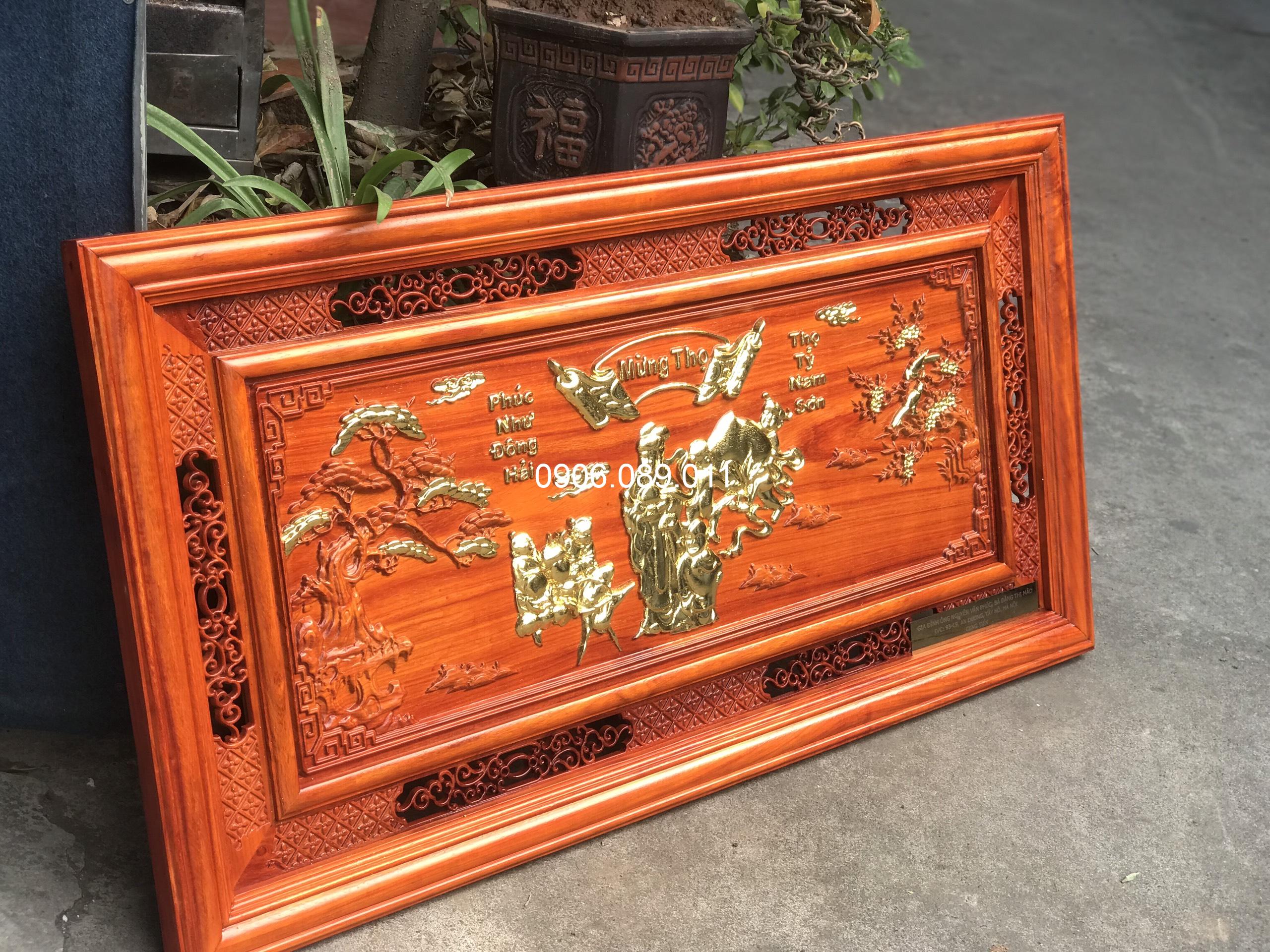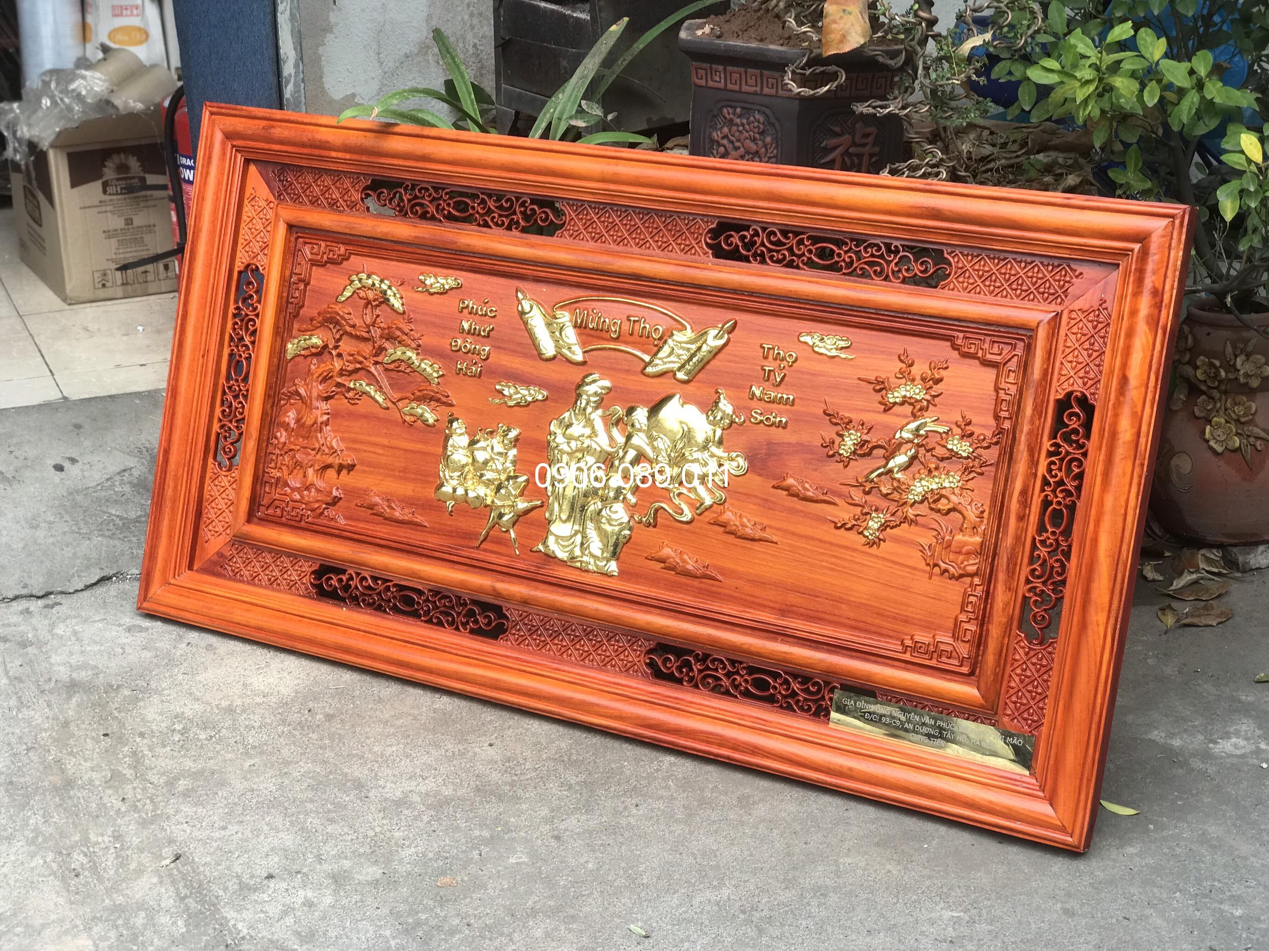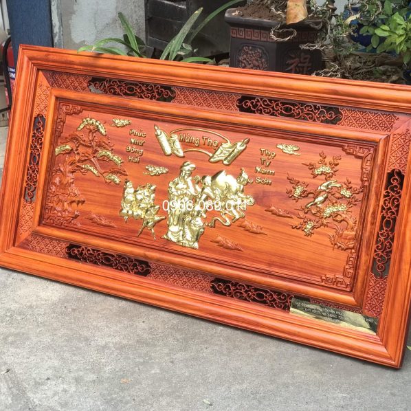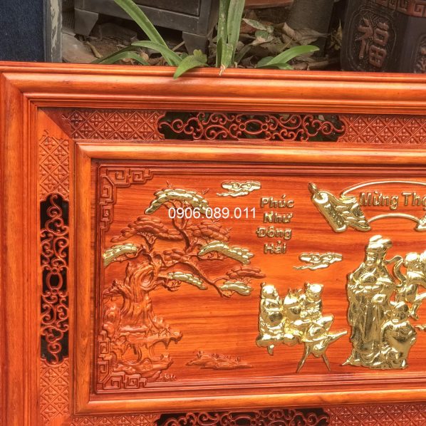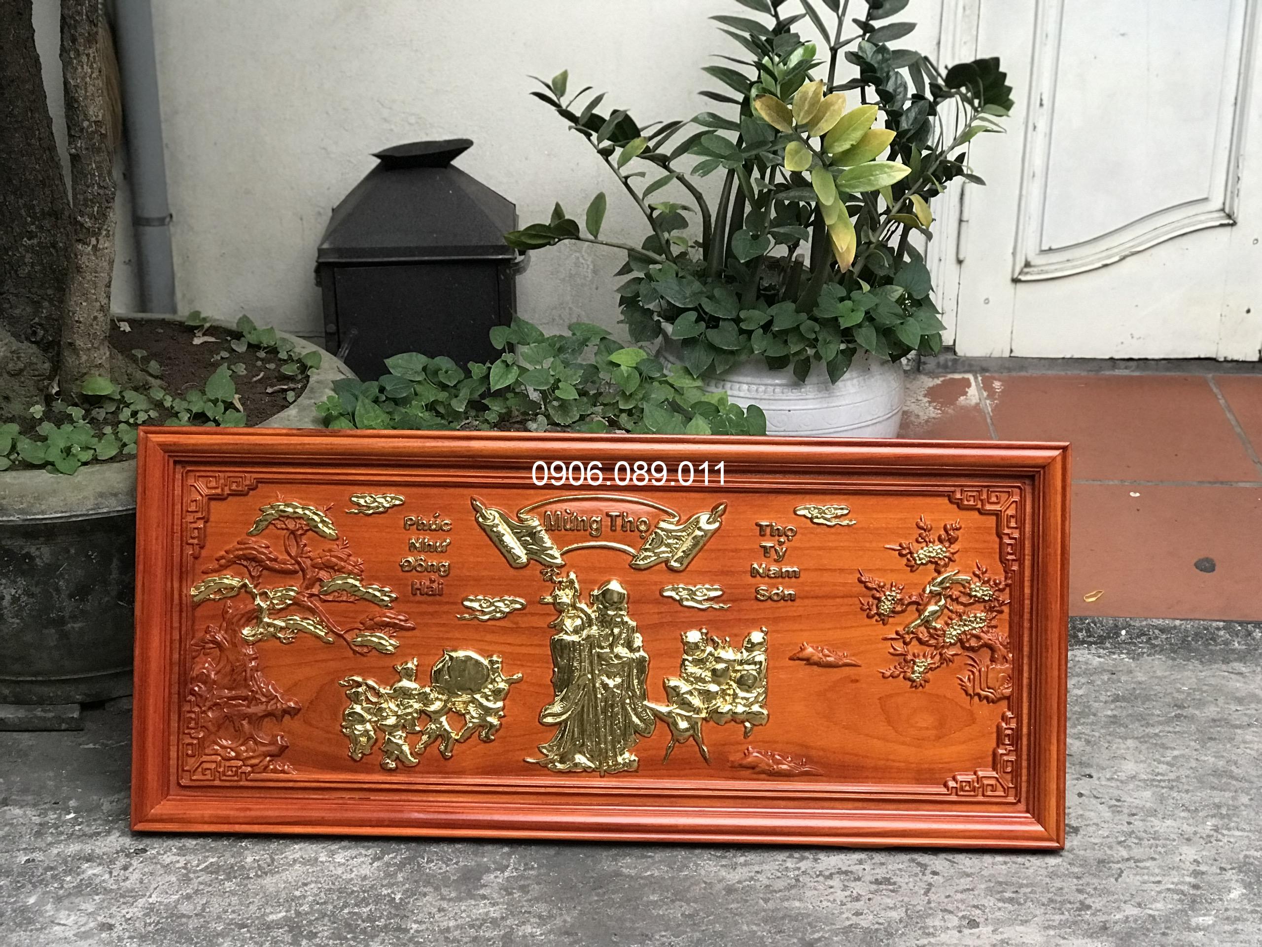 Tranh mừng thọ bà gỗ hương dát vàng 67x127cm