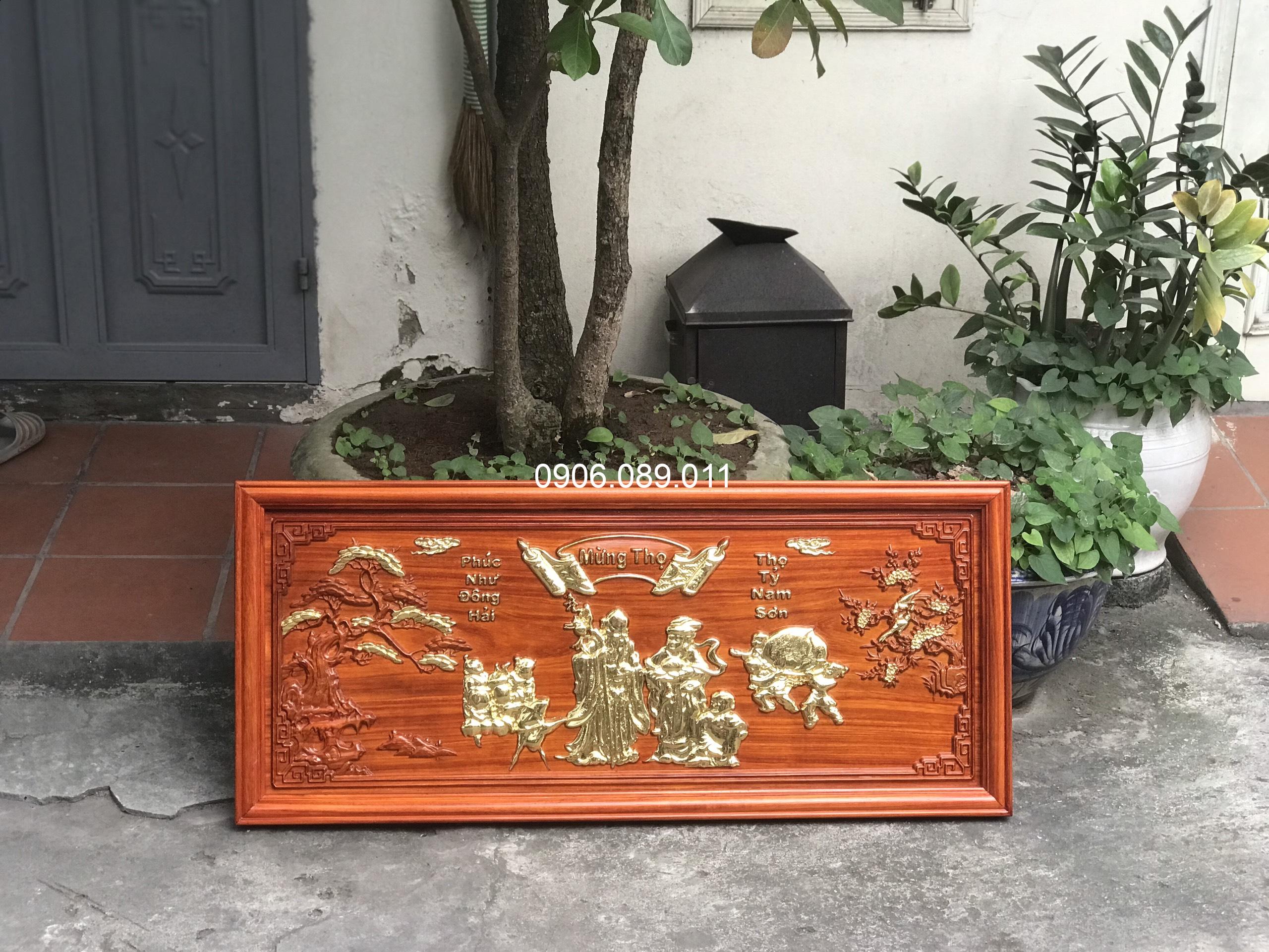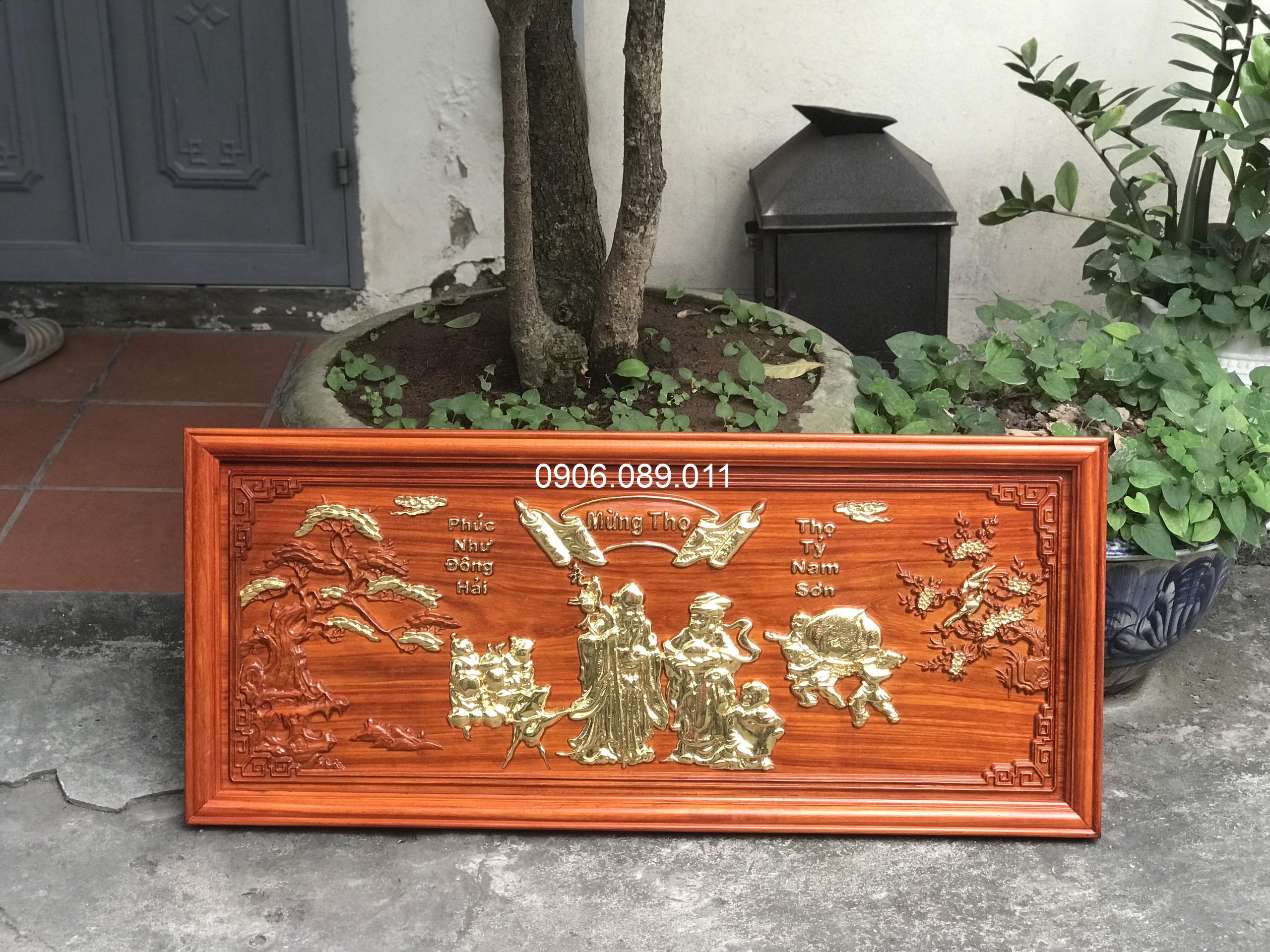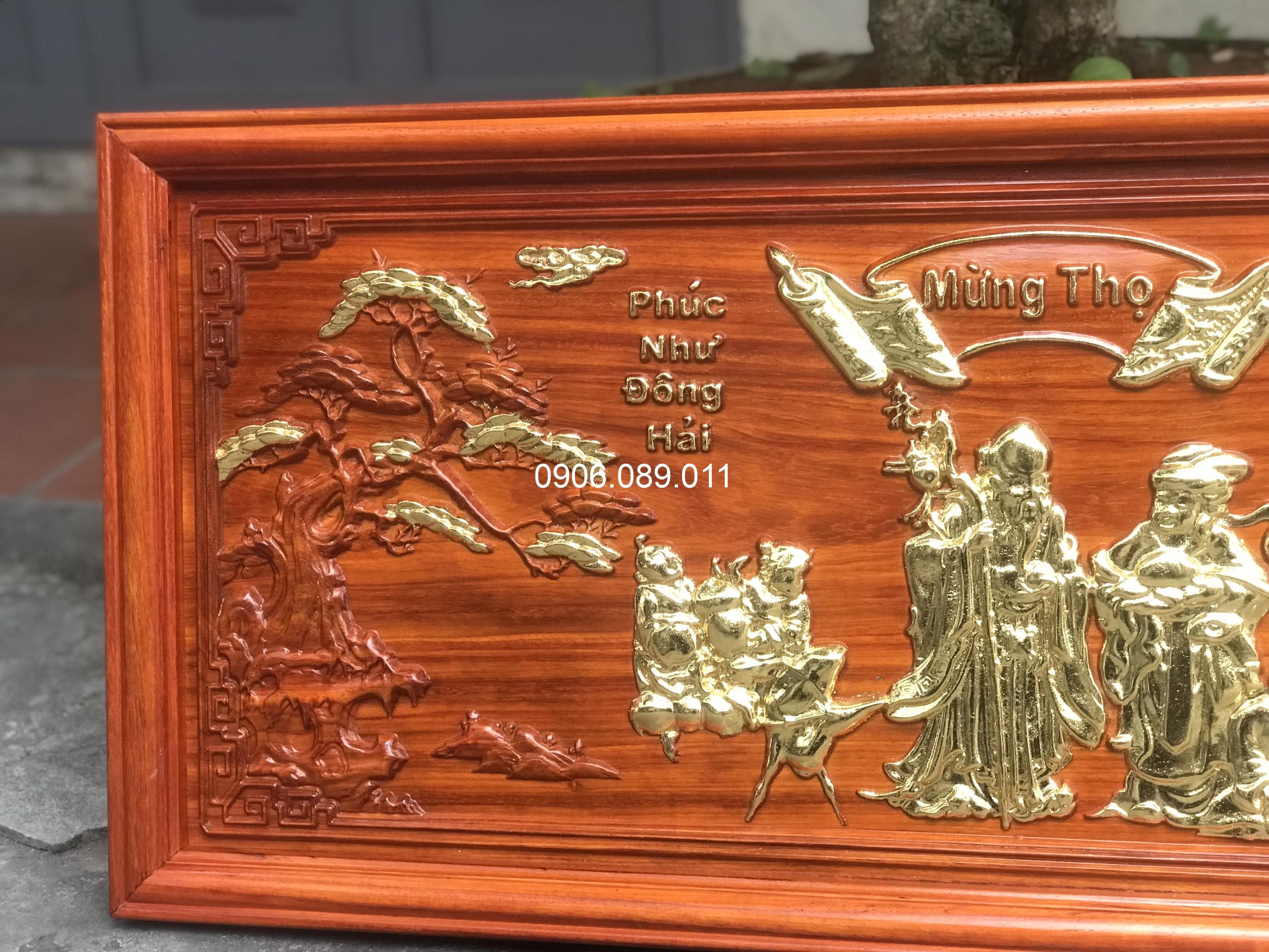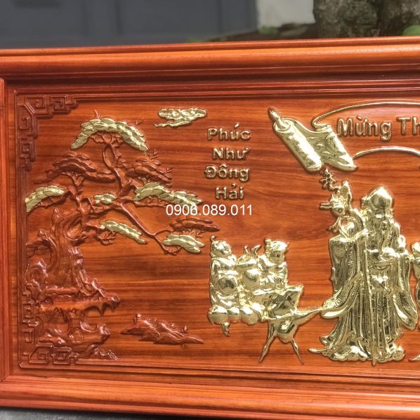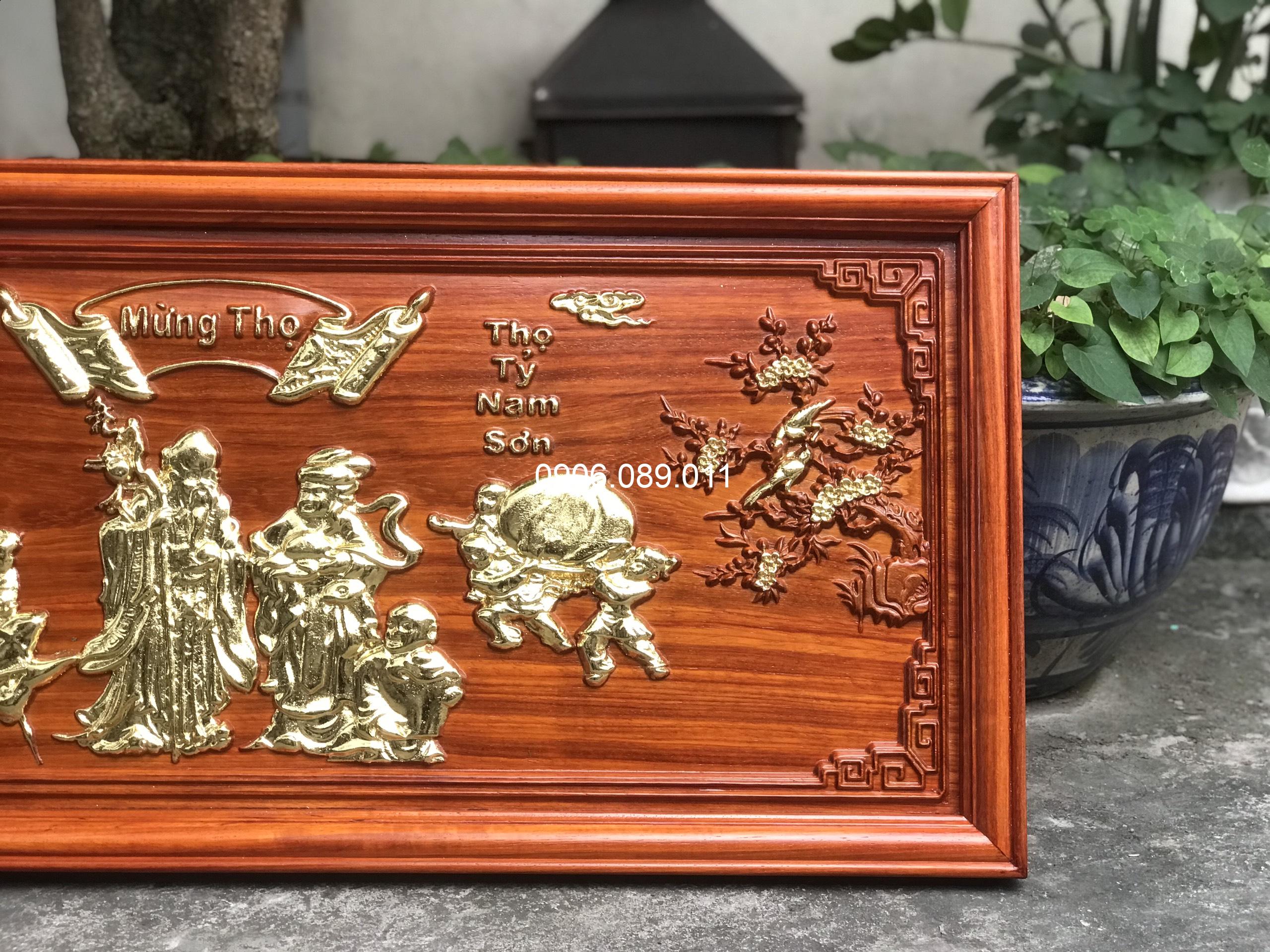 Tranh mừng thọ ông bà gỗ hương dát vàng 47x107cm