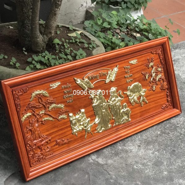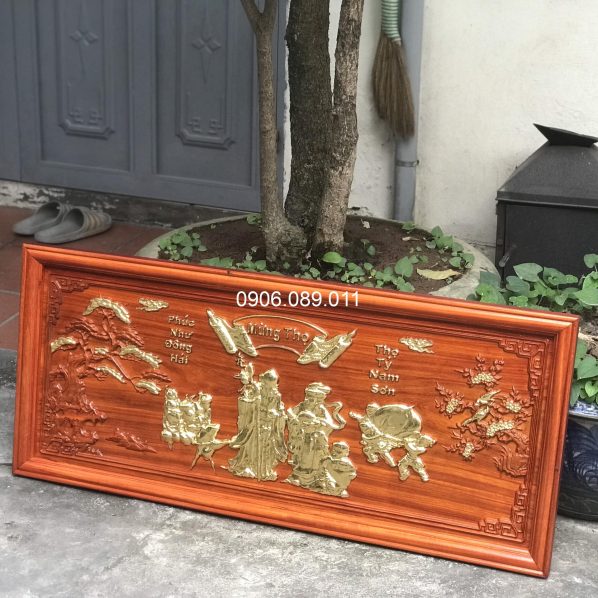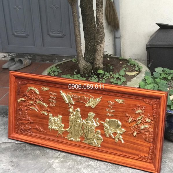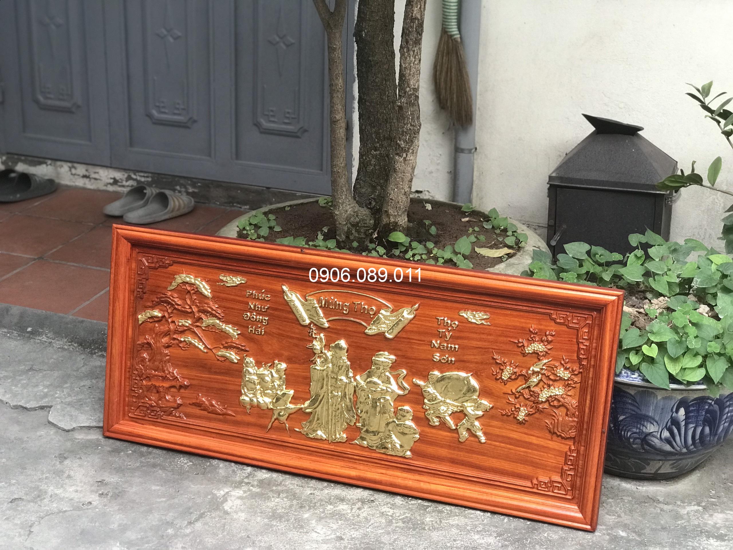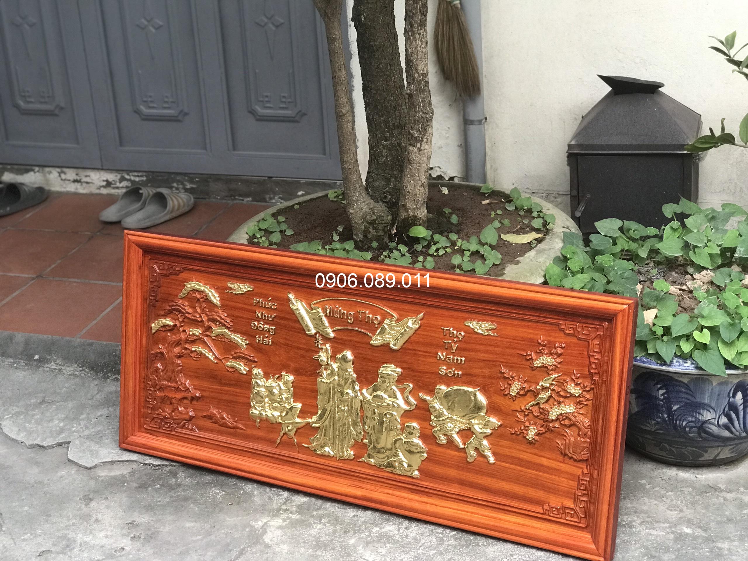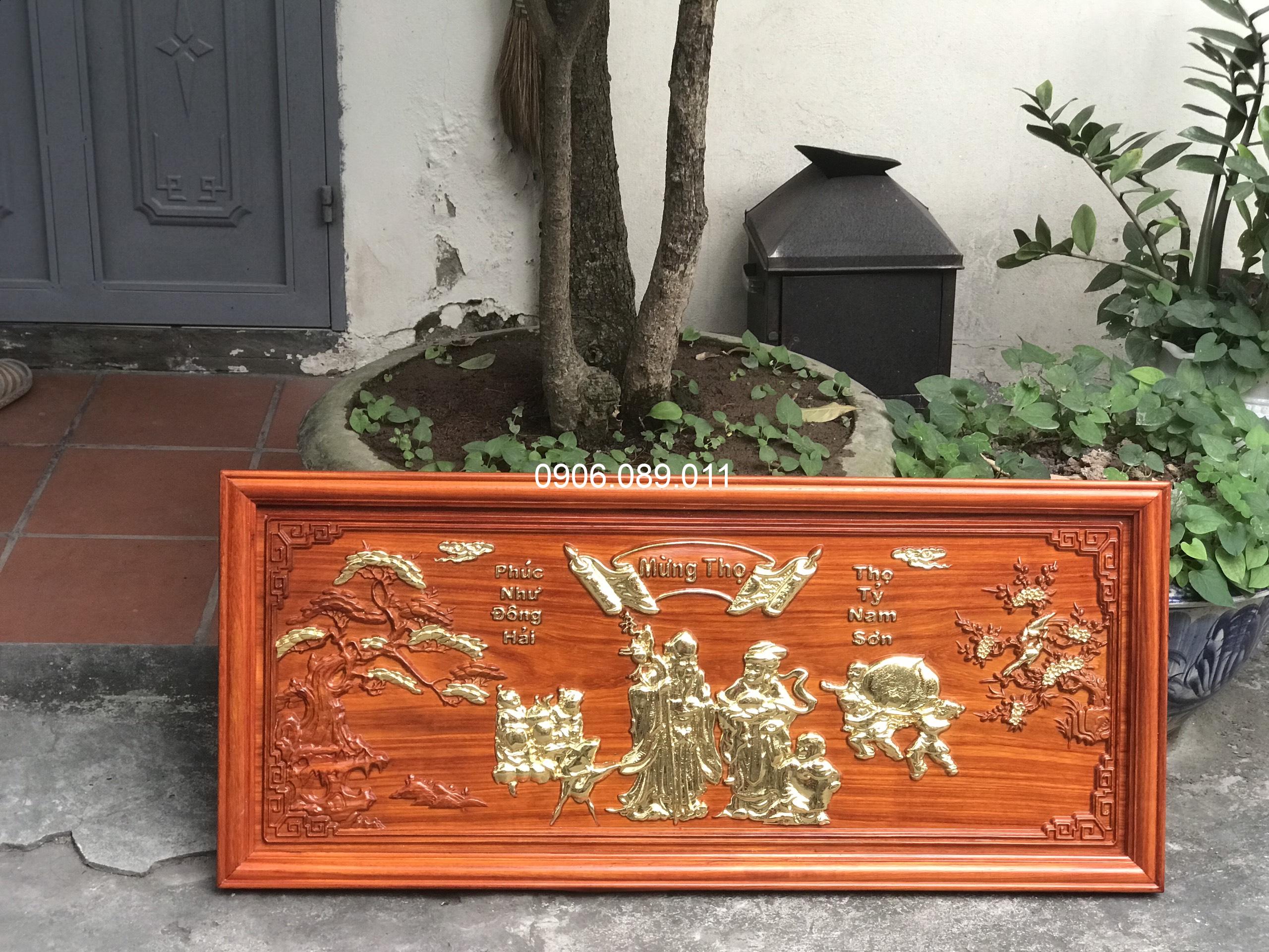 Tranh mừng thọ ông bà gỗ hương dát vàng 47x107cm
