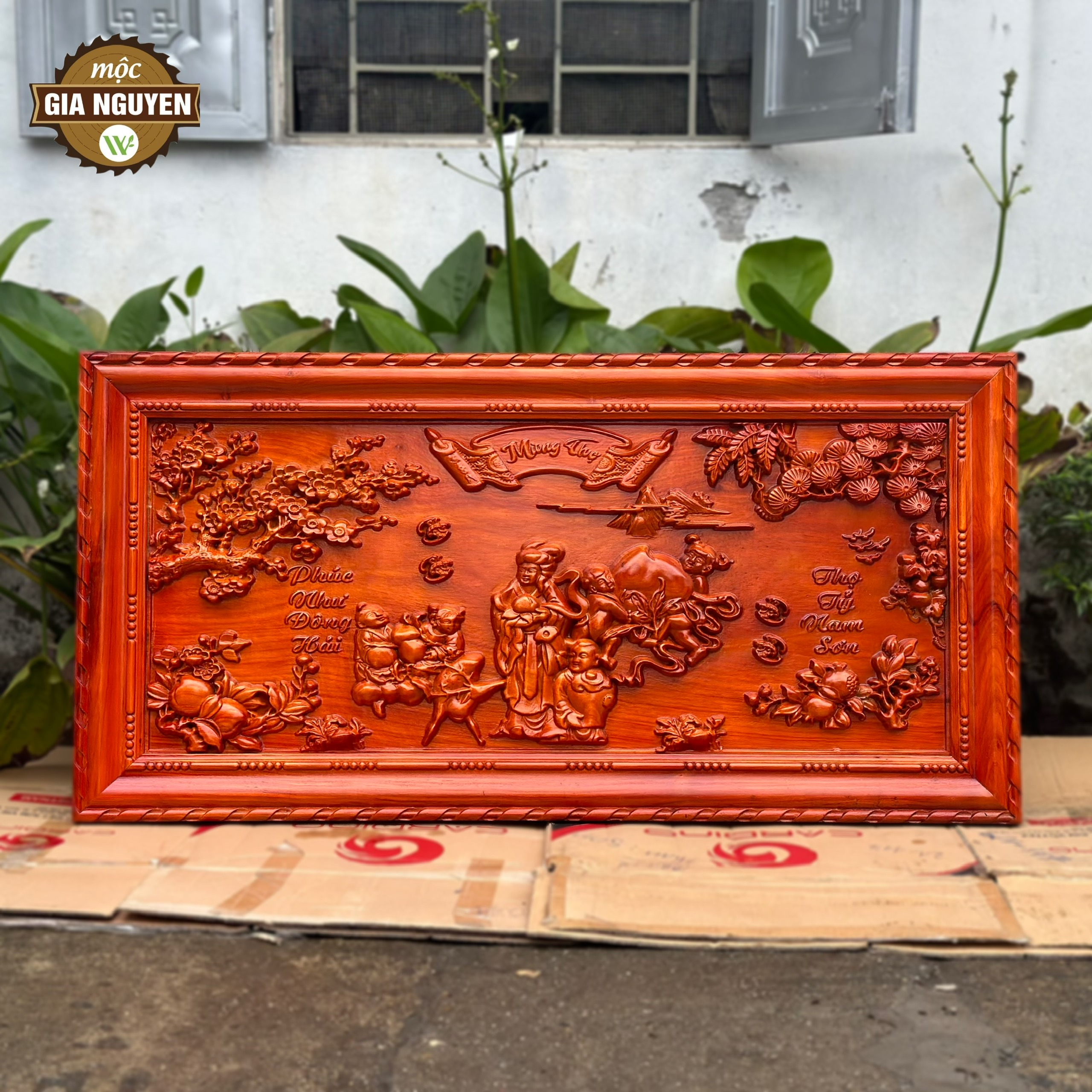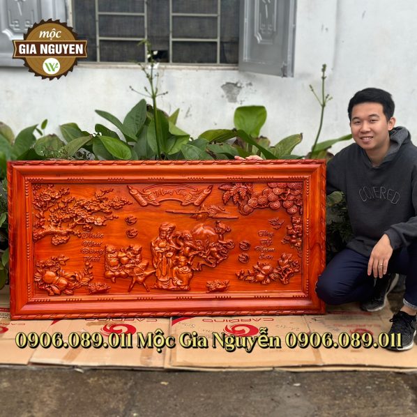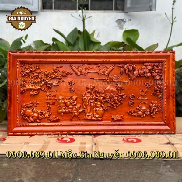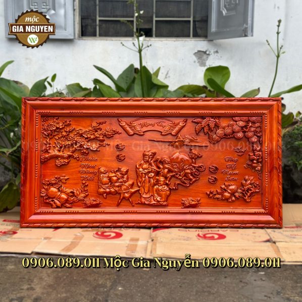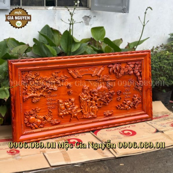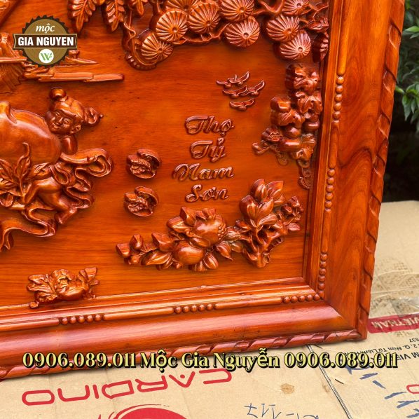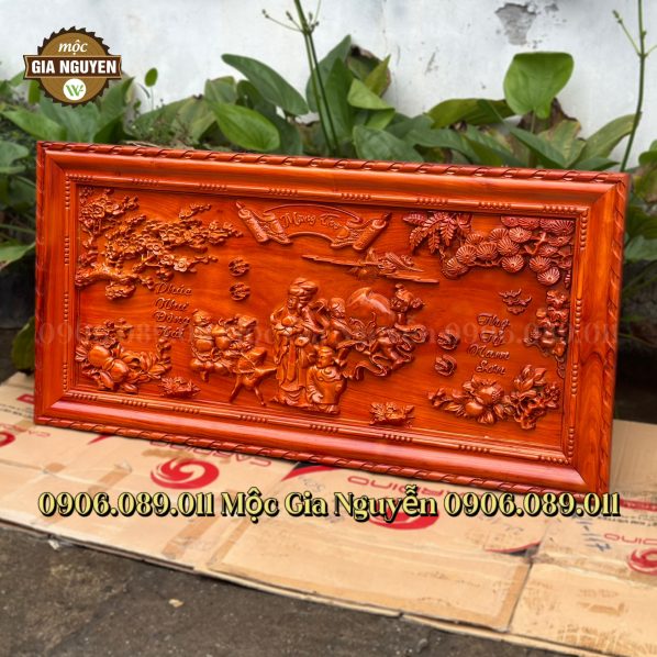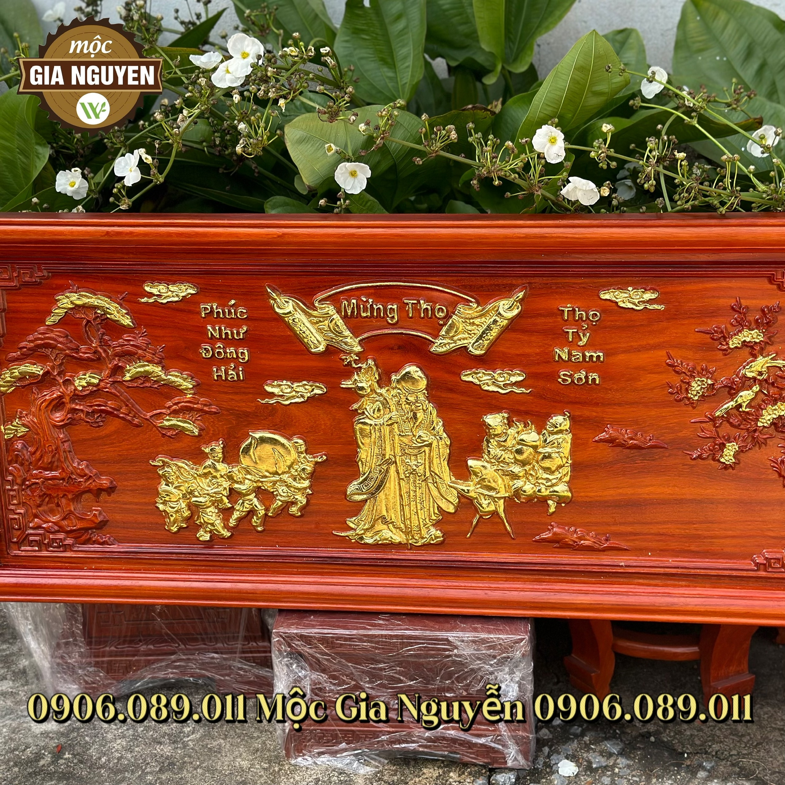 Thông tin sản phẩm: Tranh mừng thọ ông gỗ hương dát vàng 47x107cm