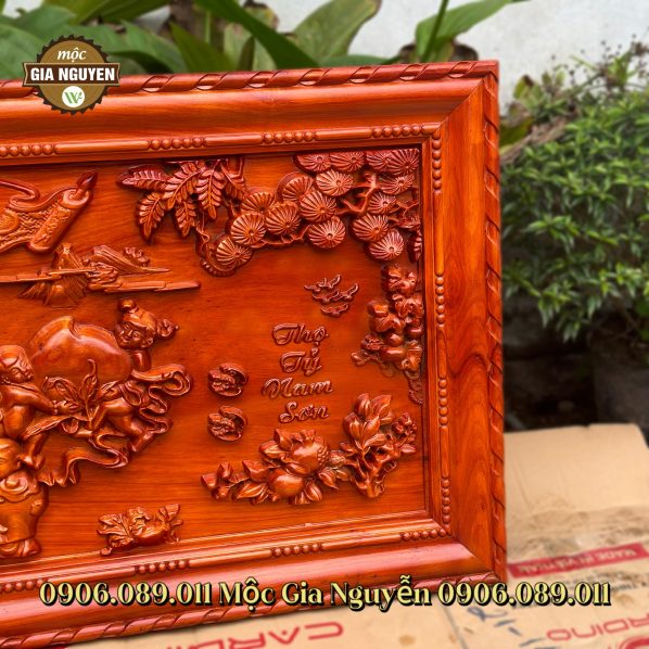 Tranh được làm từ gỗ hương, là một loại gỗ quý bởi nó tiết ra một mùi thơm đặc trưng, riêng biệt mà không loại gỗ nào có được.