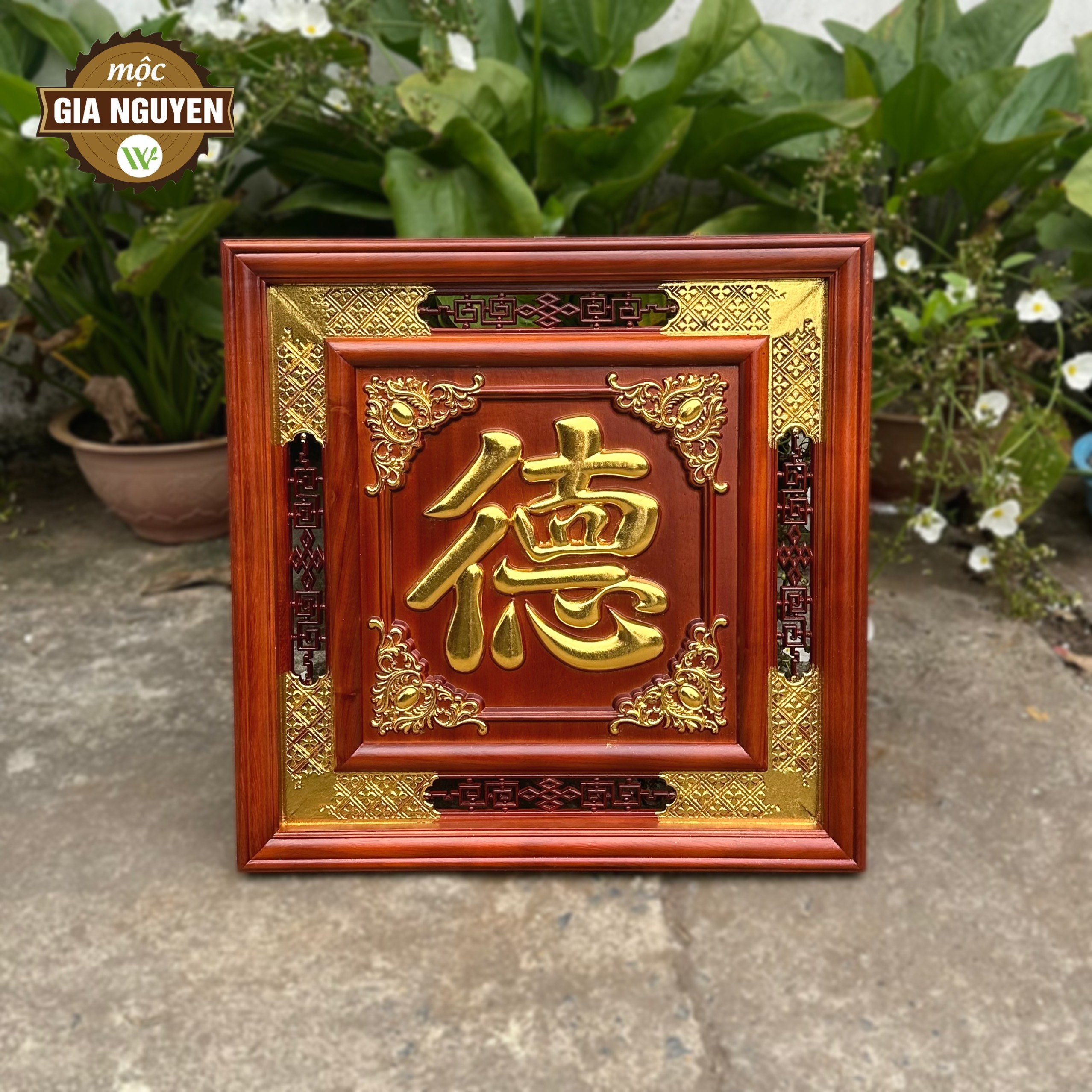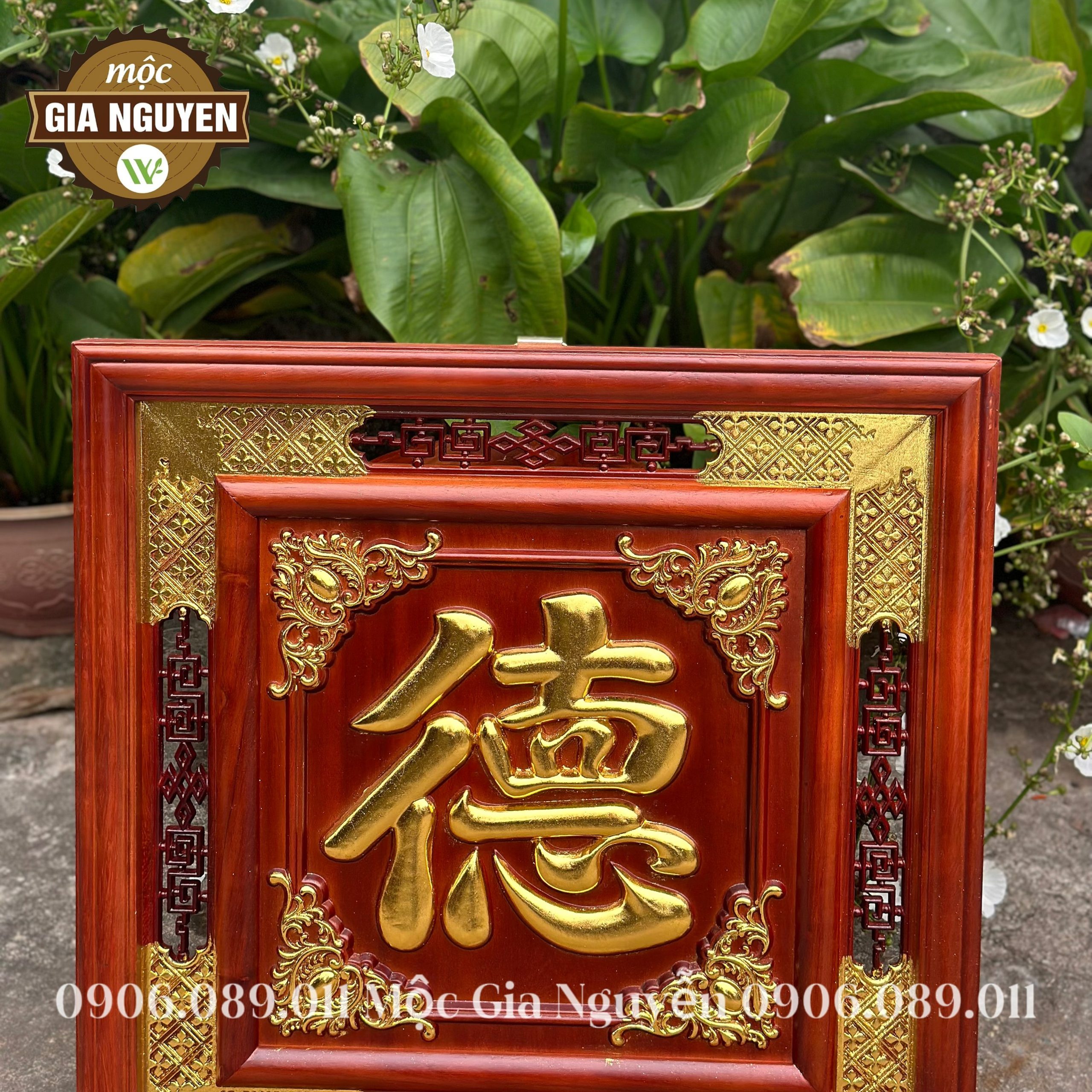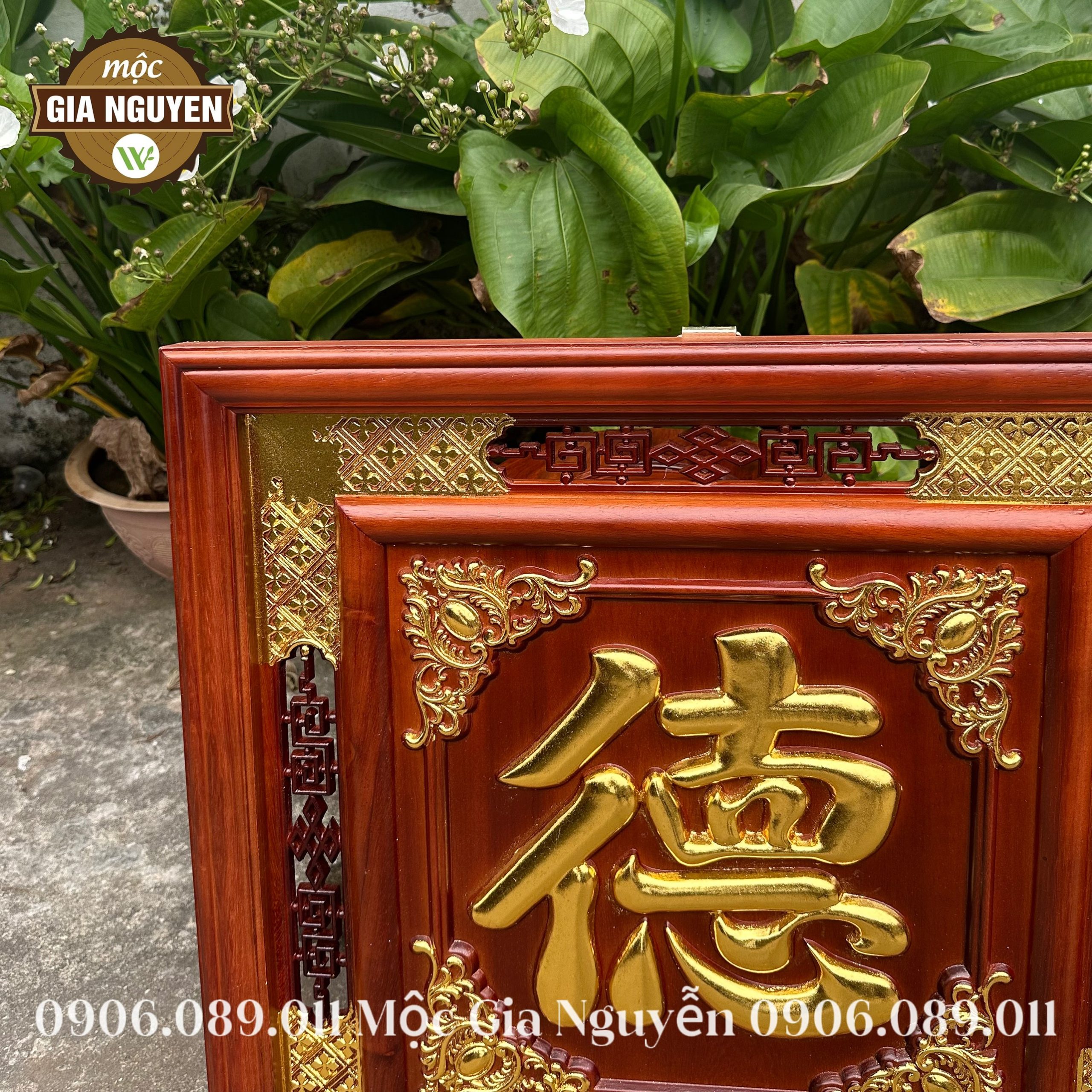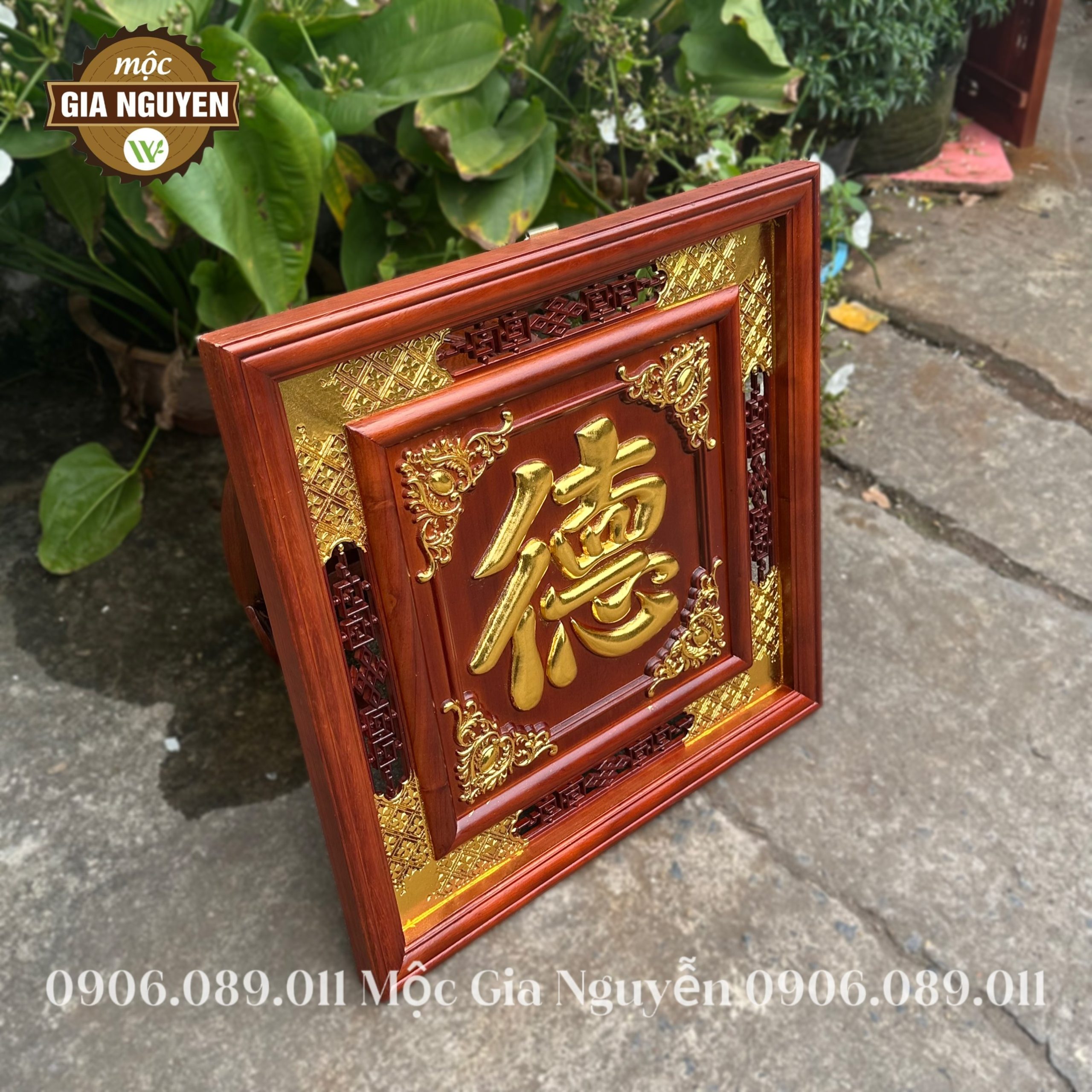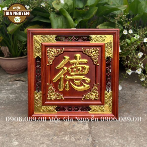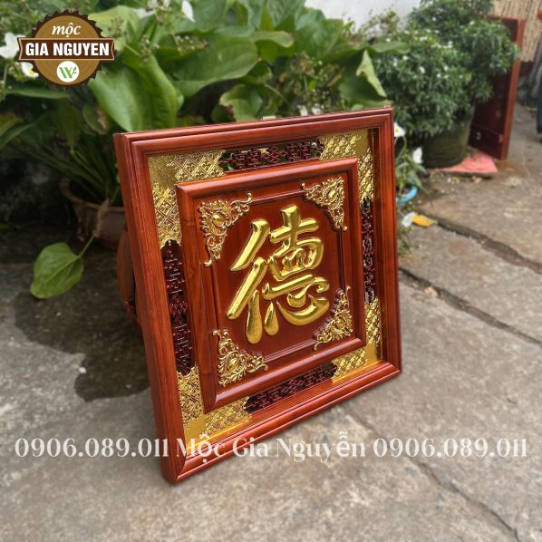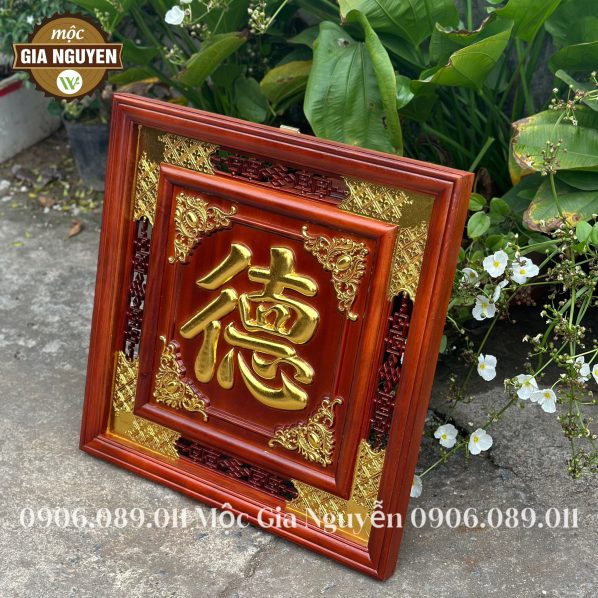 Thông tin sản phẩm: Tranh thờ chữ Đức gỗ hương dát vàng 60cm