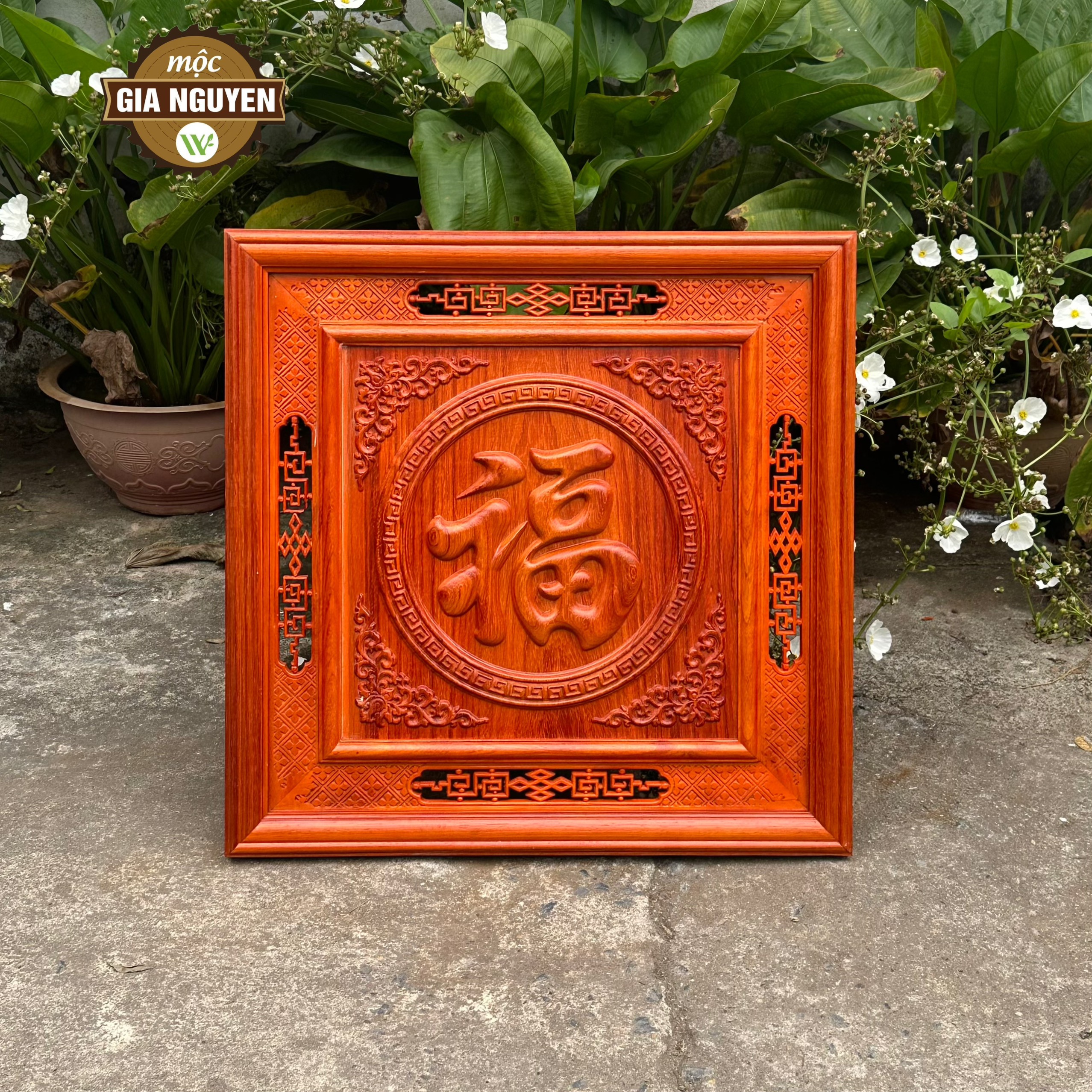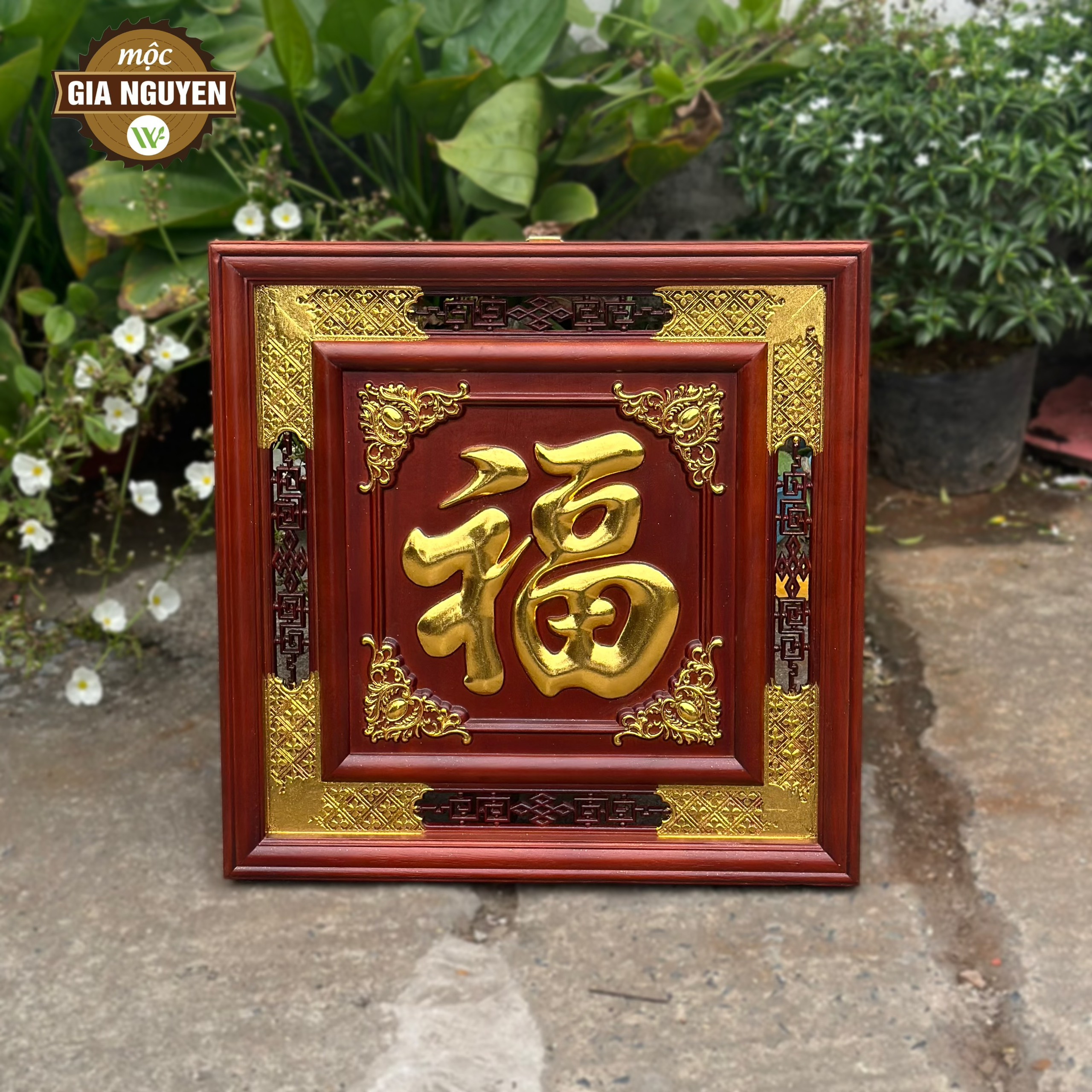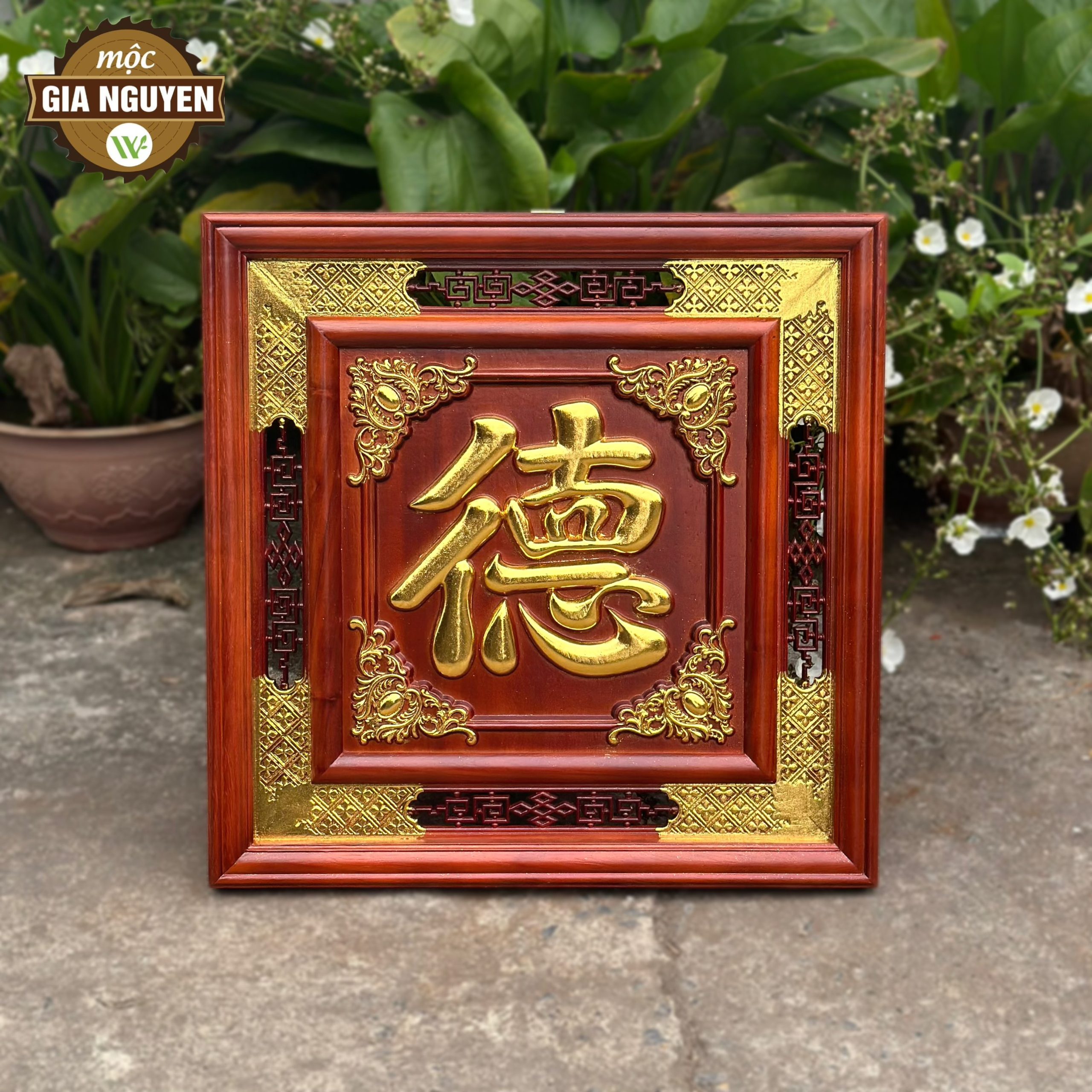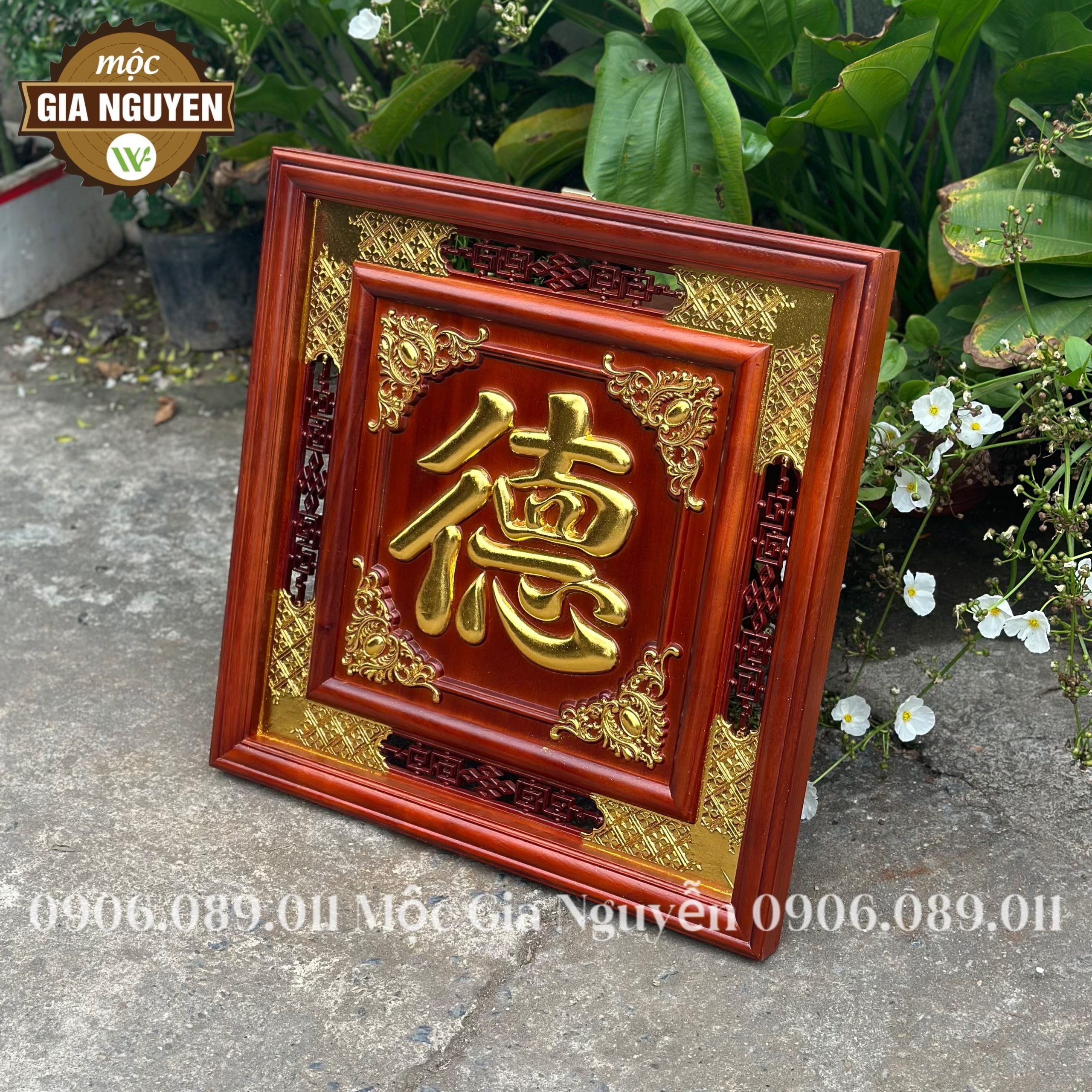 Thông tin sản phẩm: Tranh thờ chữ Đức gỗ hương dát vàng 60cm