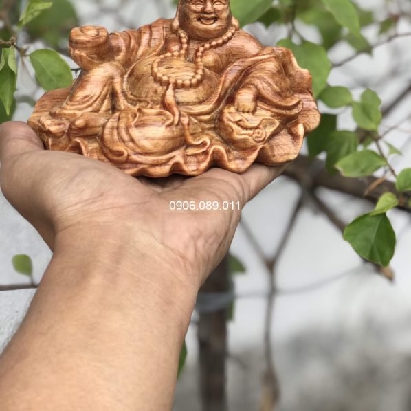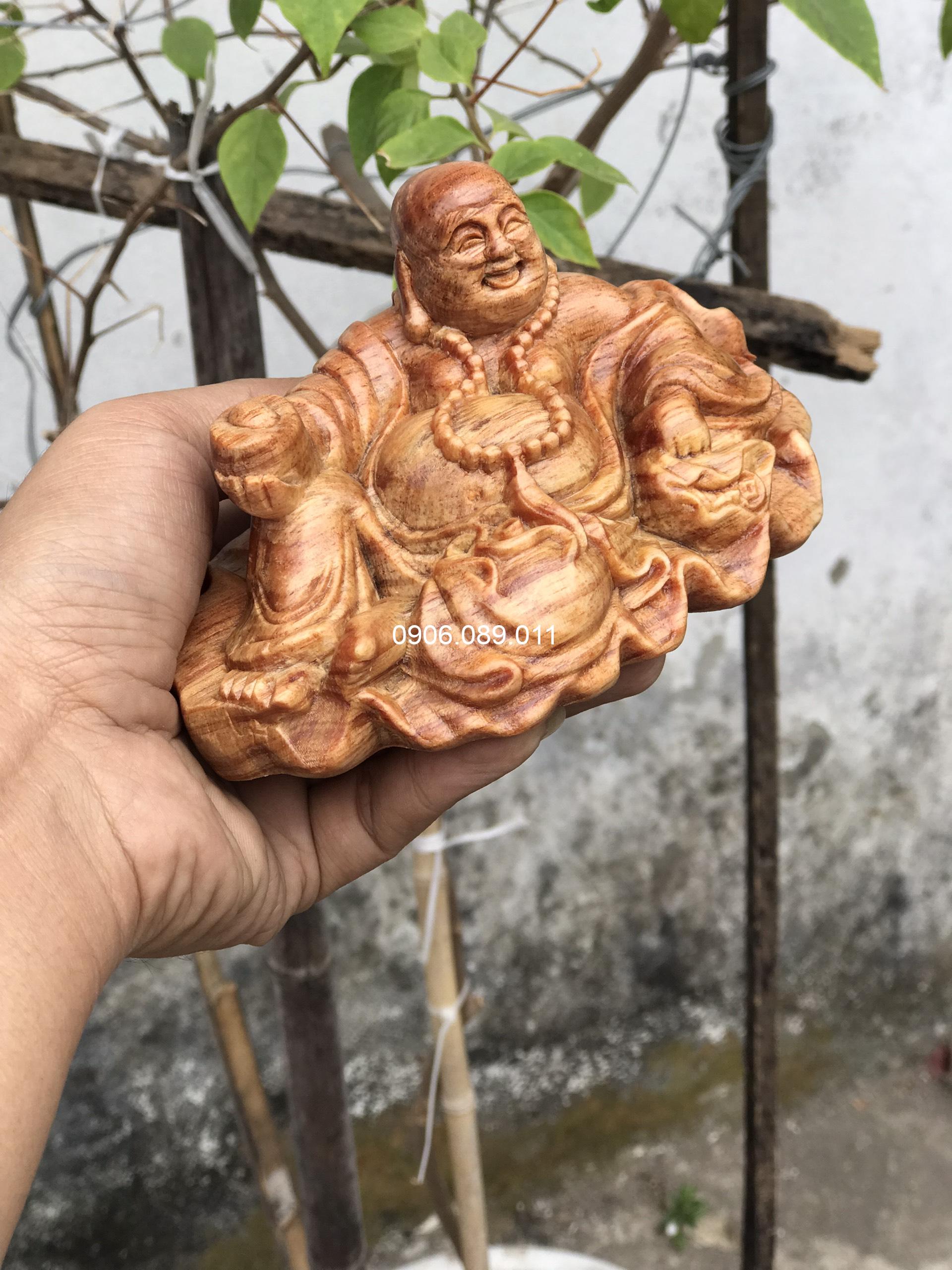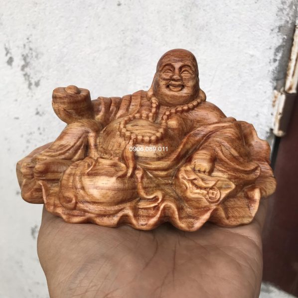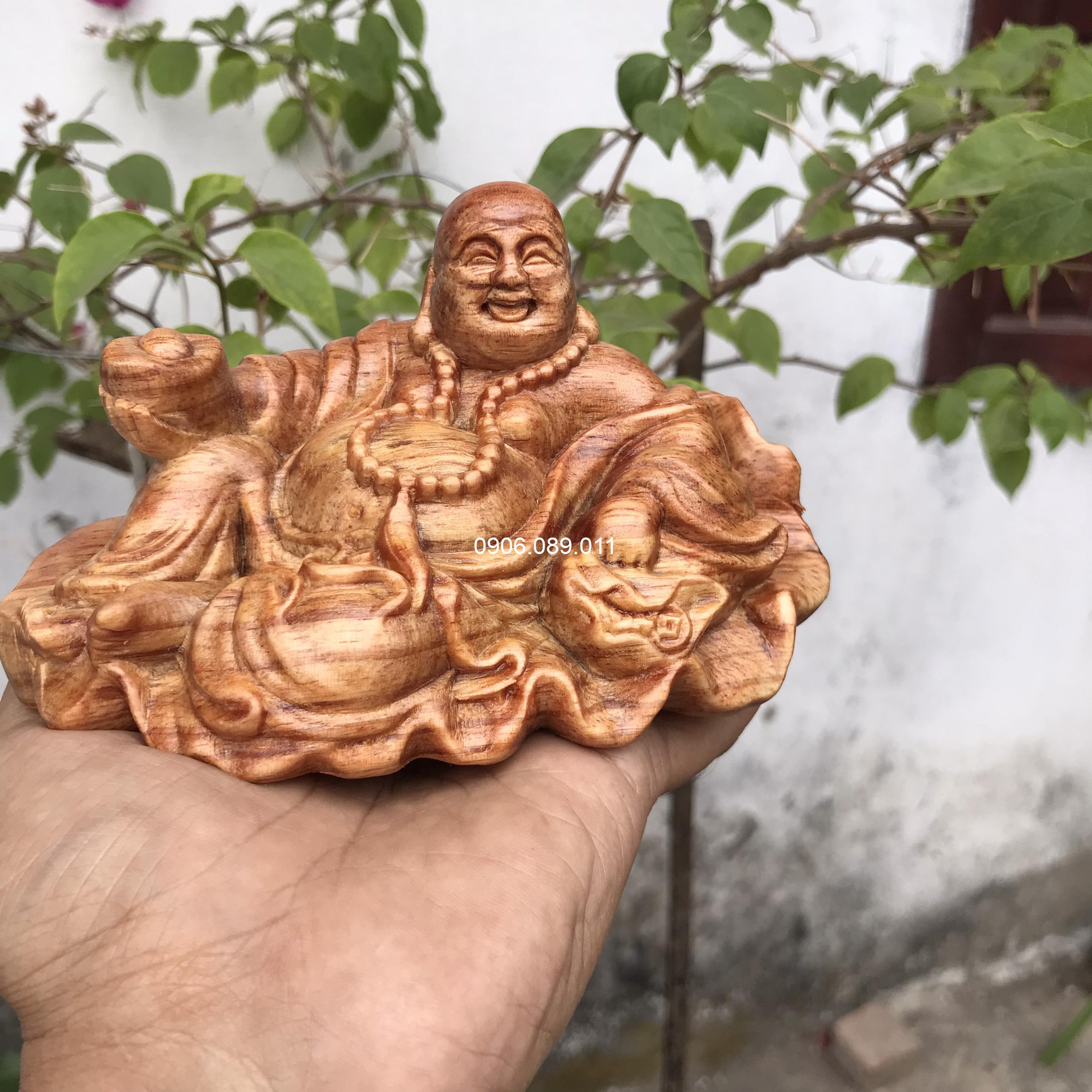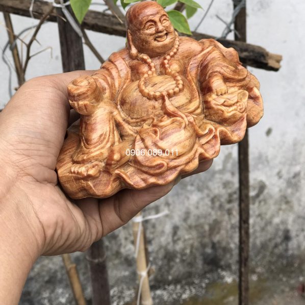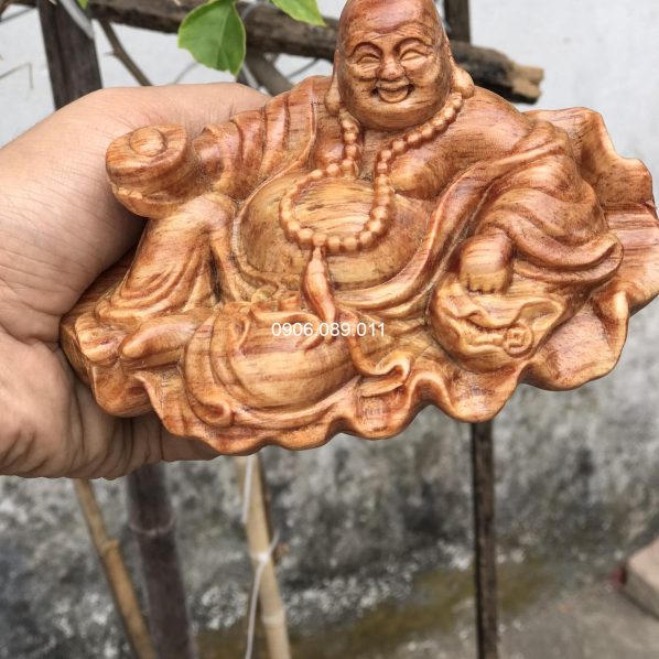 Tượng Di lặc lá sen để ô tô, bàn làm việc làm bằng gỗ huyết long LS01
