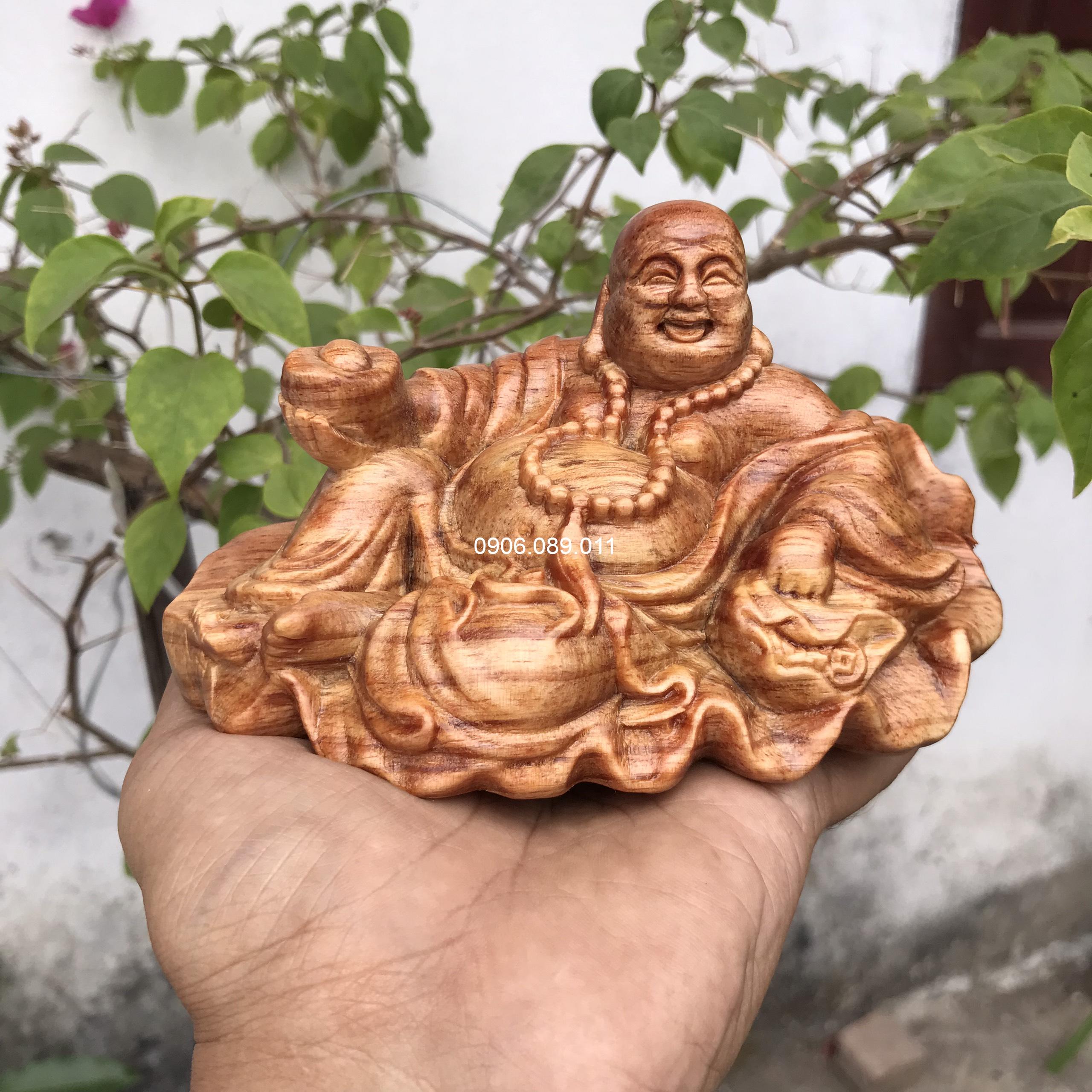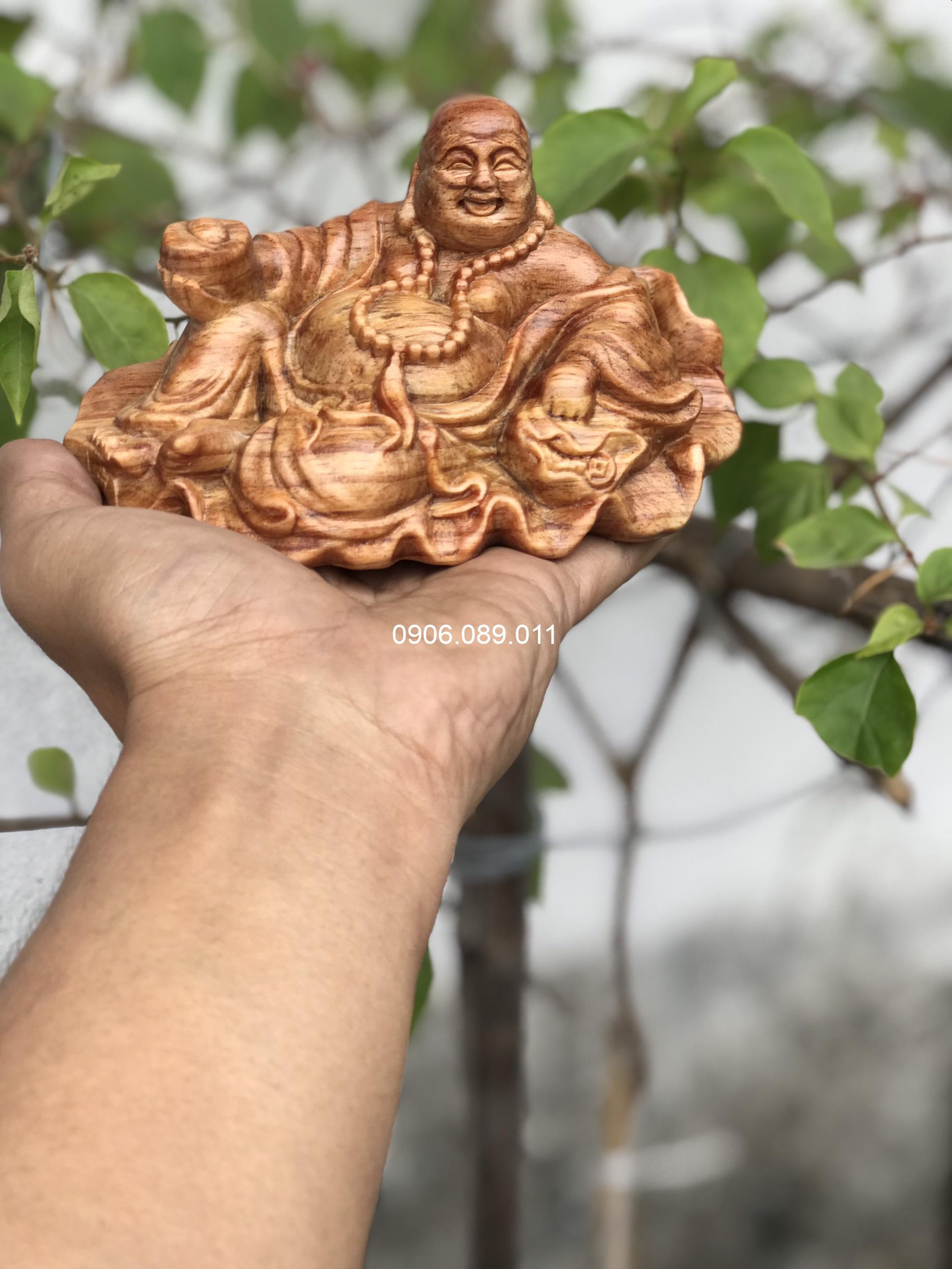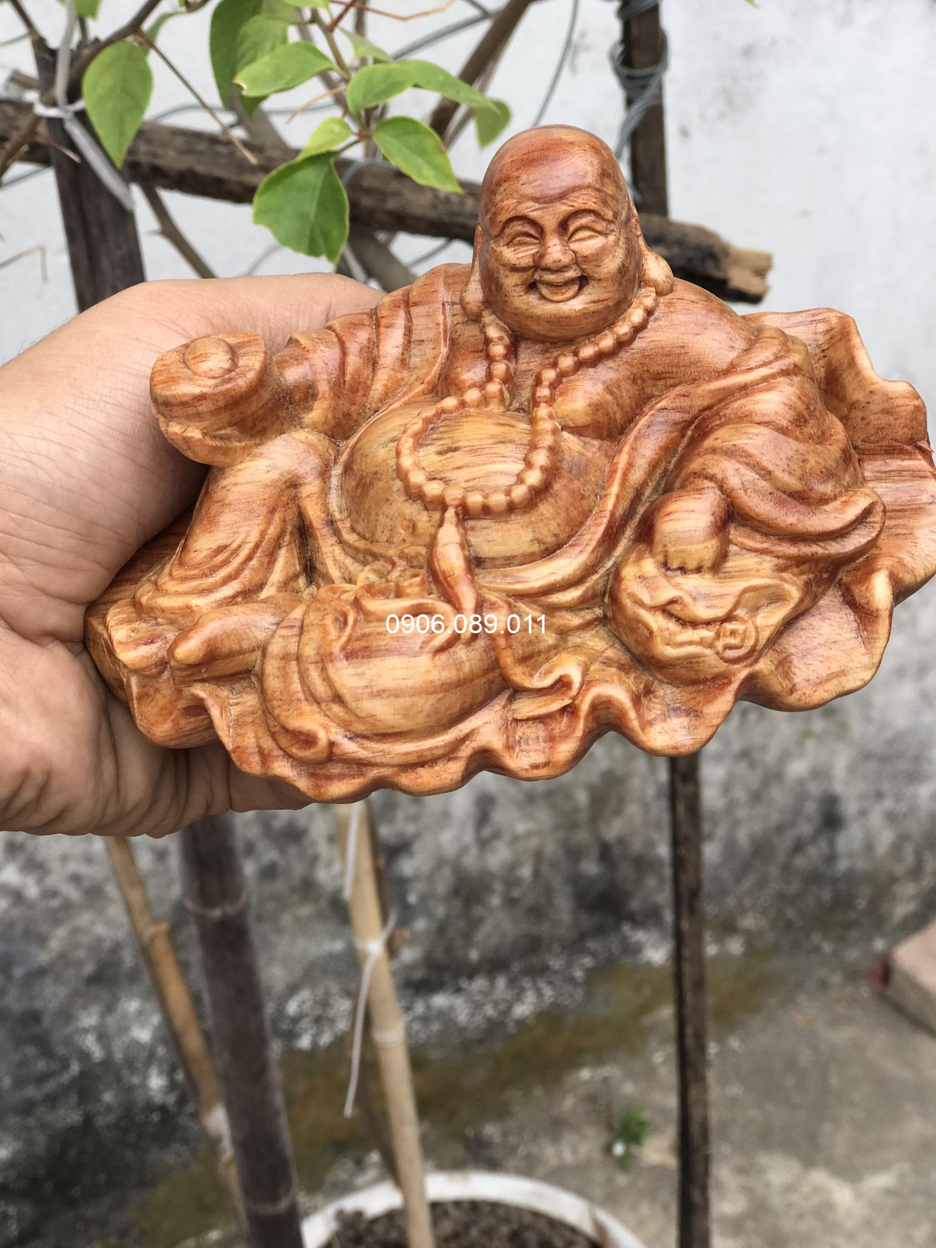 Tượng Di lặc lá sen để ô tô, bàn làm việc làm bằng gỗ huyết long LS01