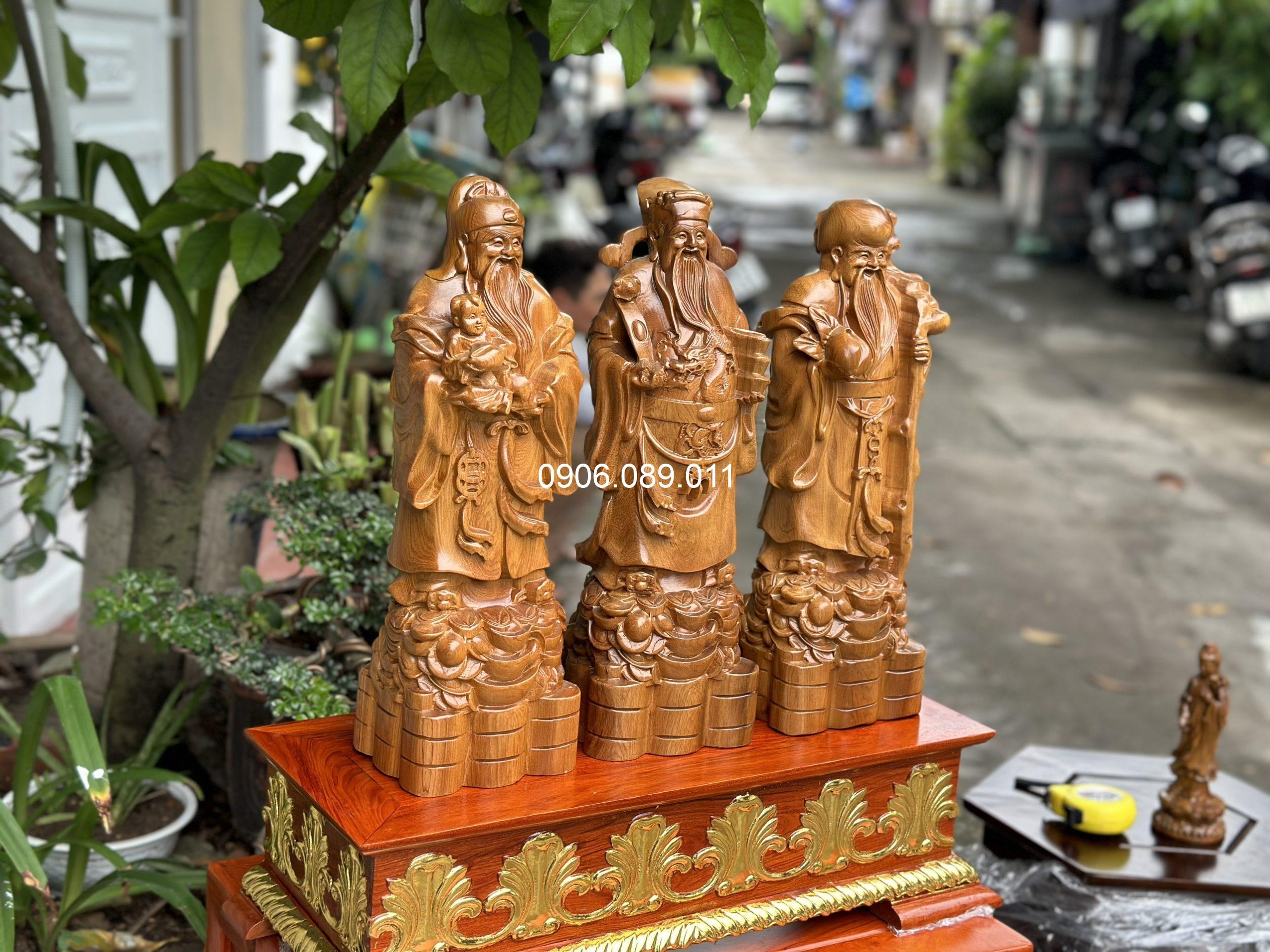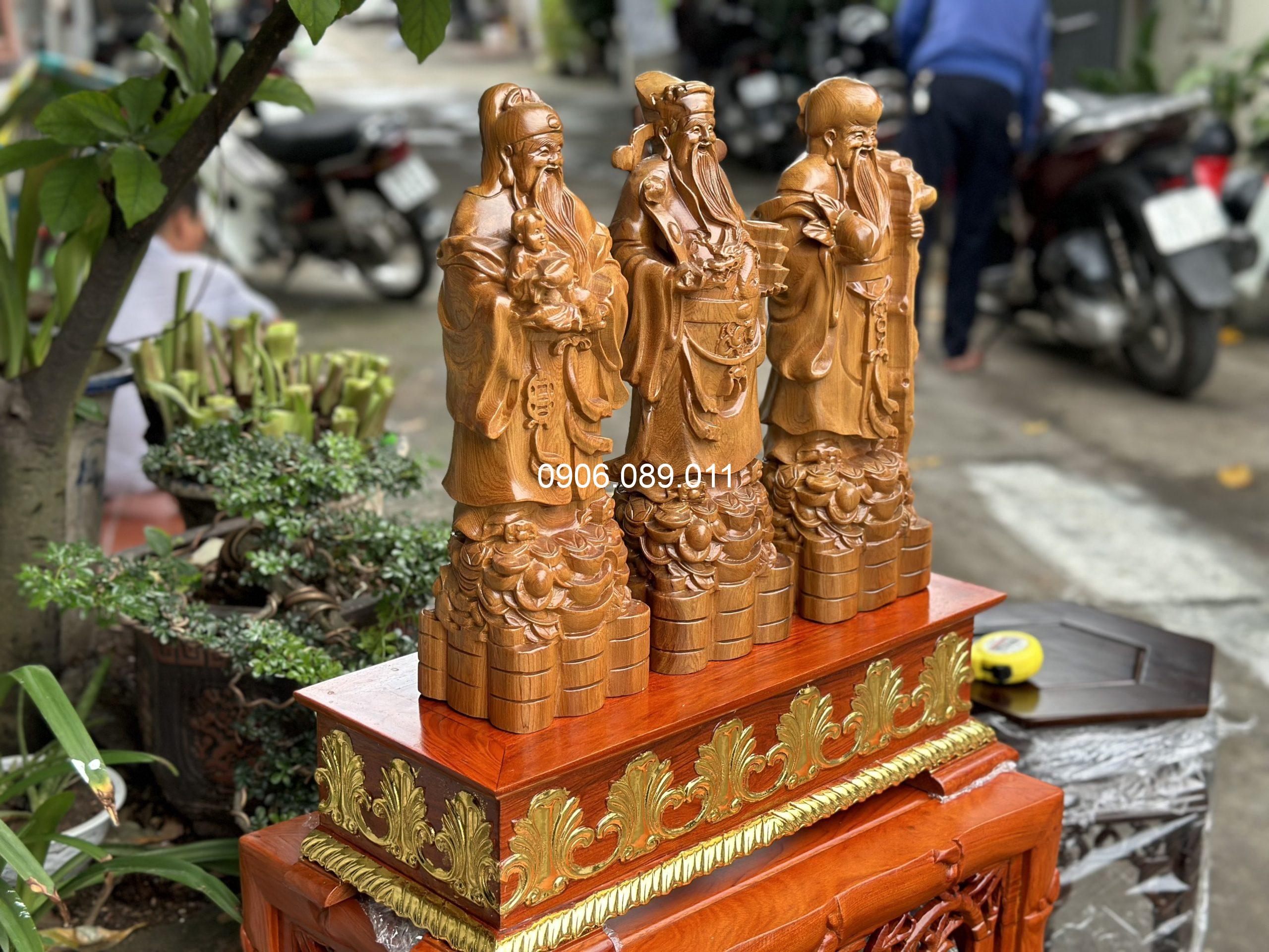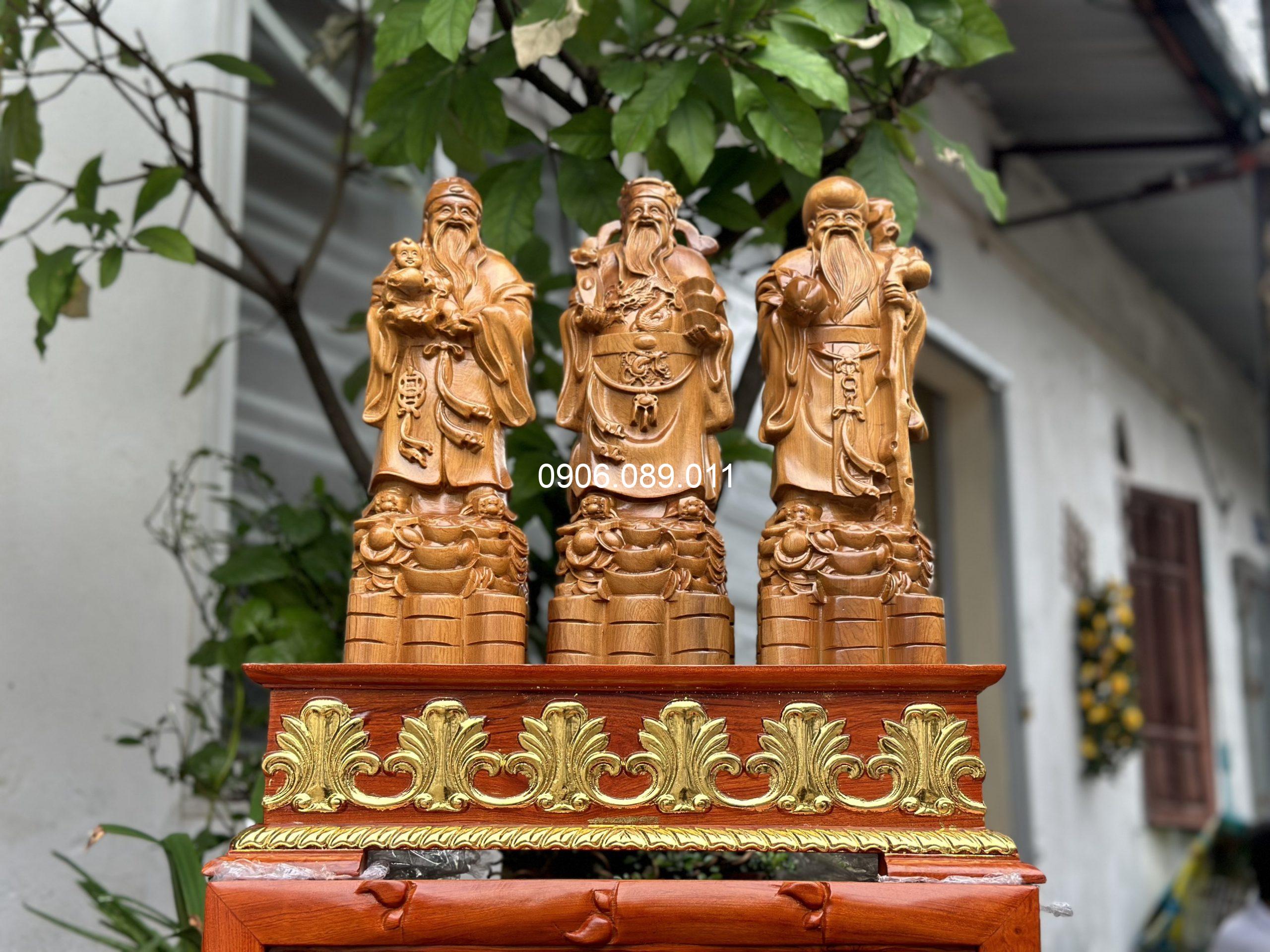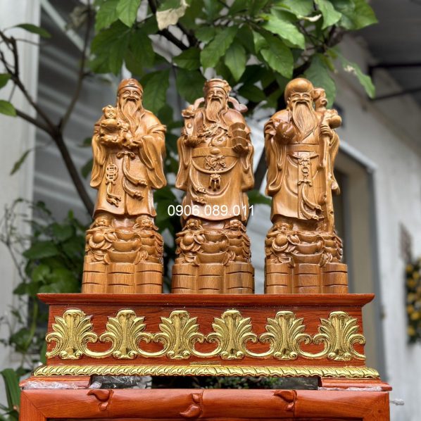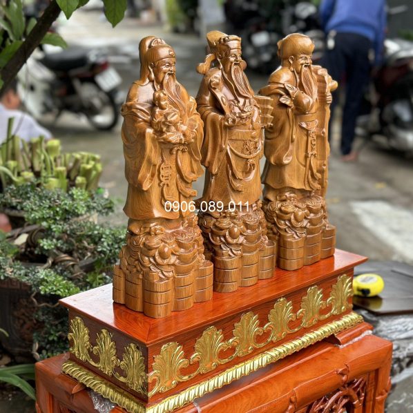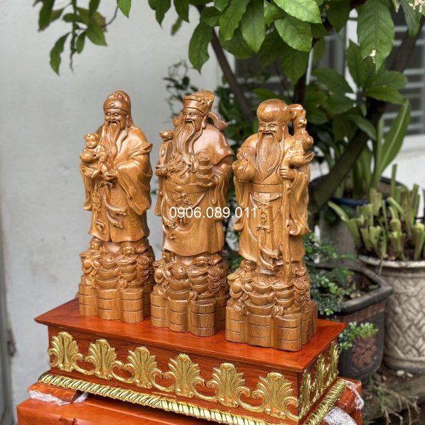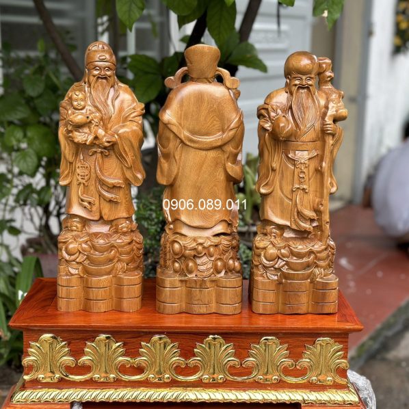 Tượng gỗ Phúc Lộc Thọ được thiết kế sang trọng và các đường nét hình ảnh được đục chạm sắc nét, tạo nên một hiệu ứng hình khắc tinh xảo.