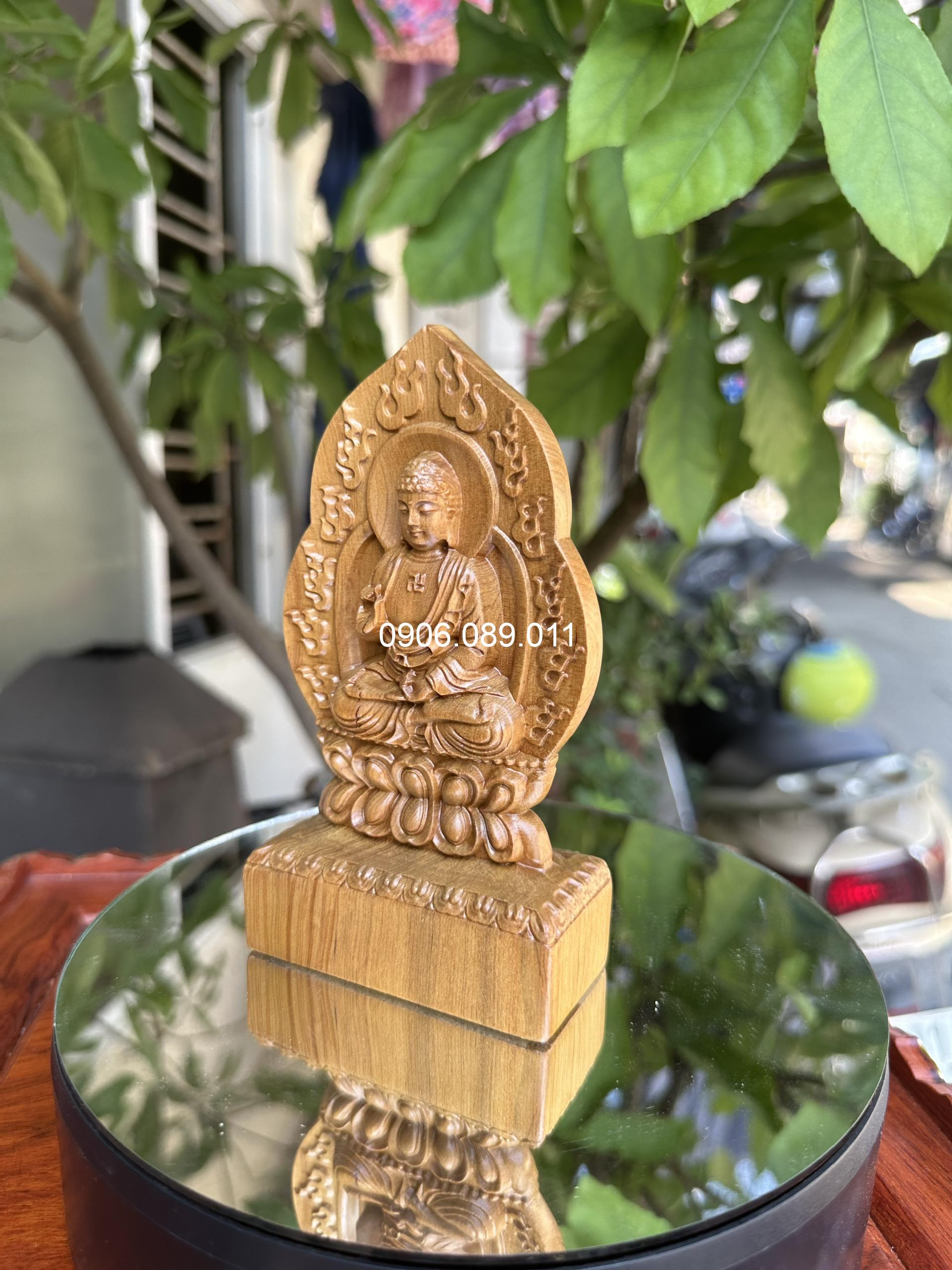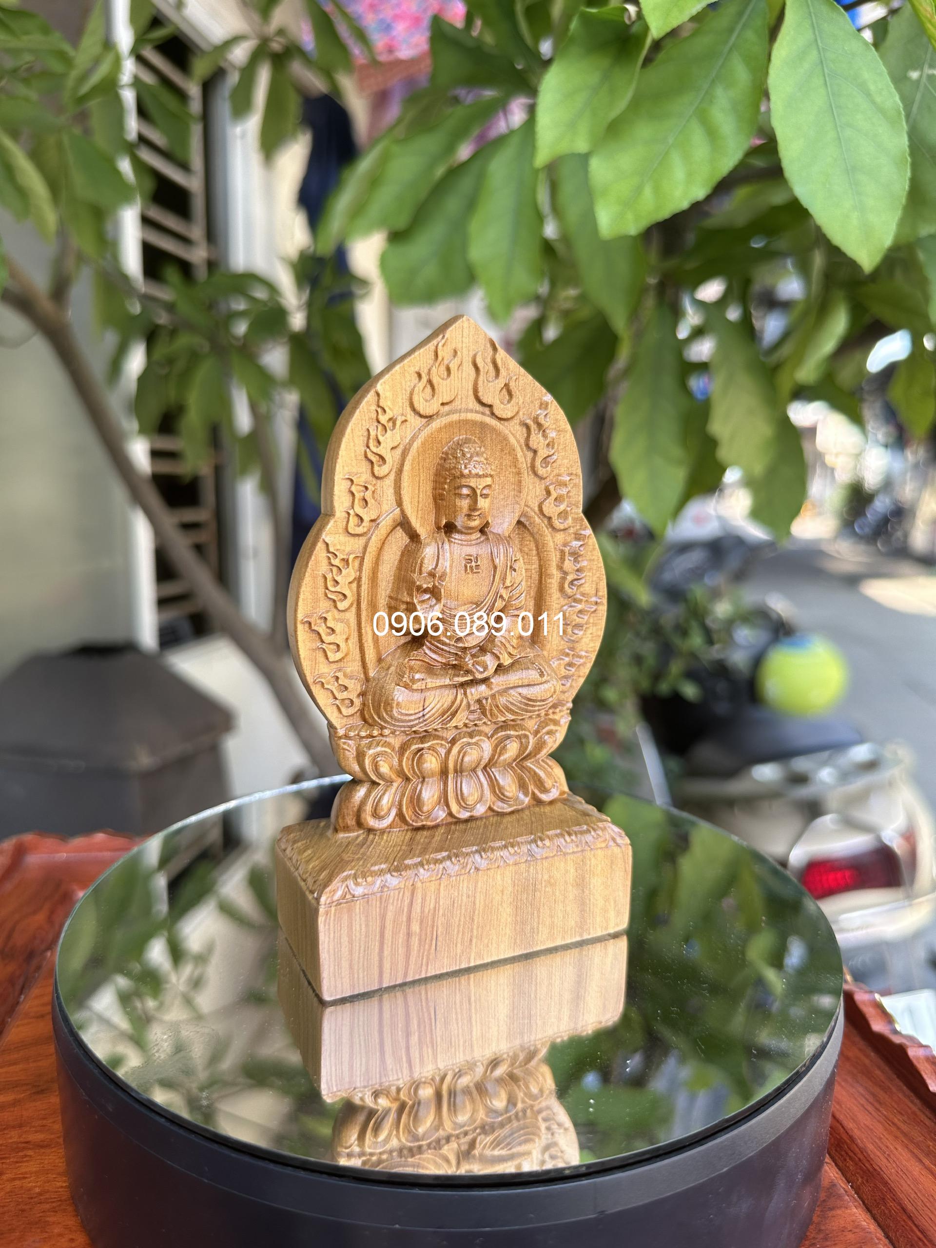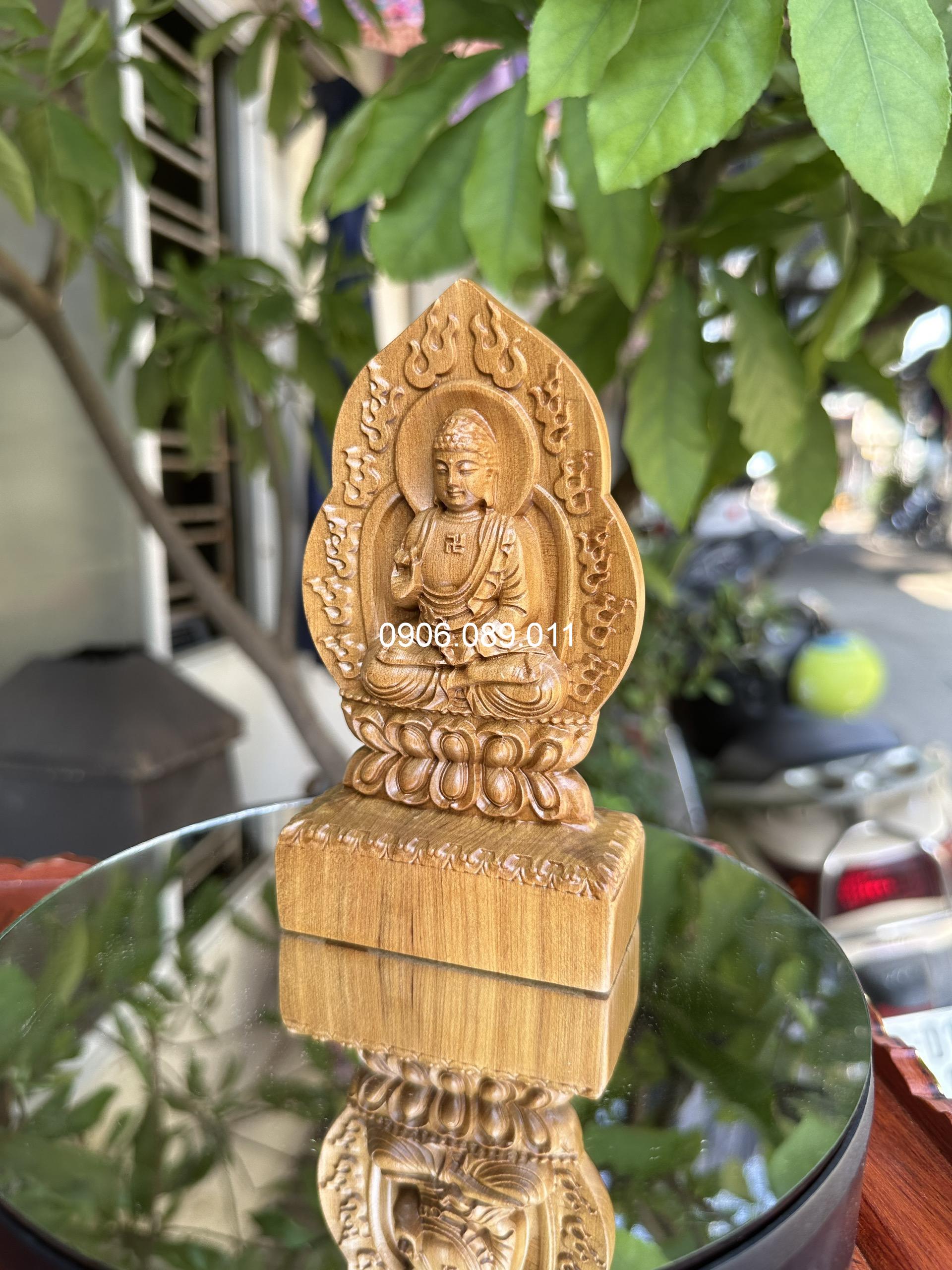 Tượng bản mệnh Phật A Di Đà tuổi Tuất – Hợi gỗ bách xanh cao cấp ( tặng vòng tay )