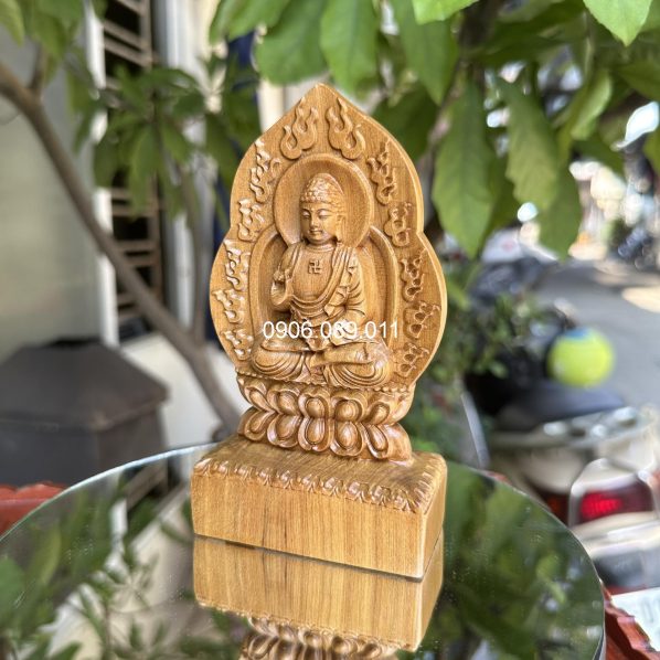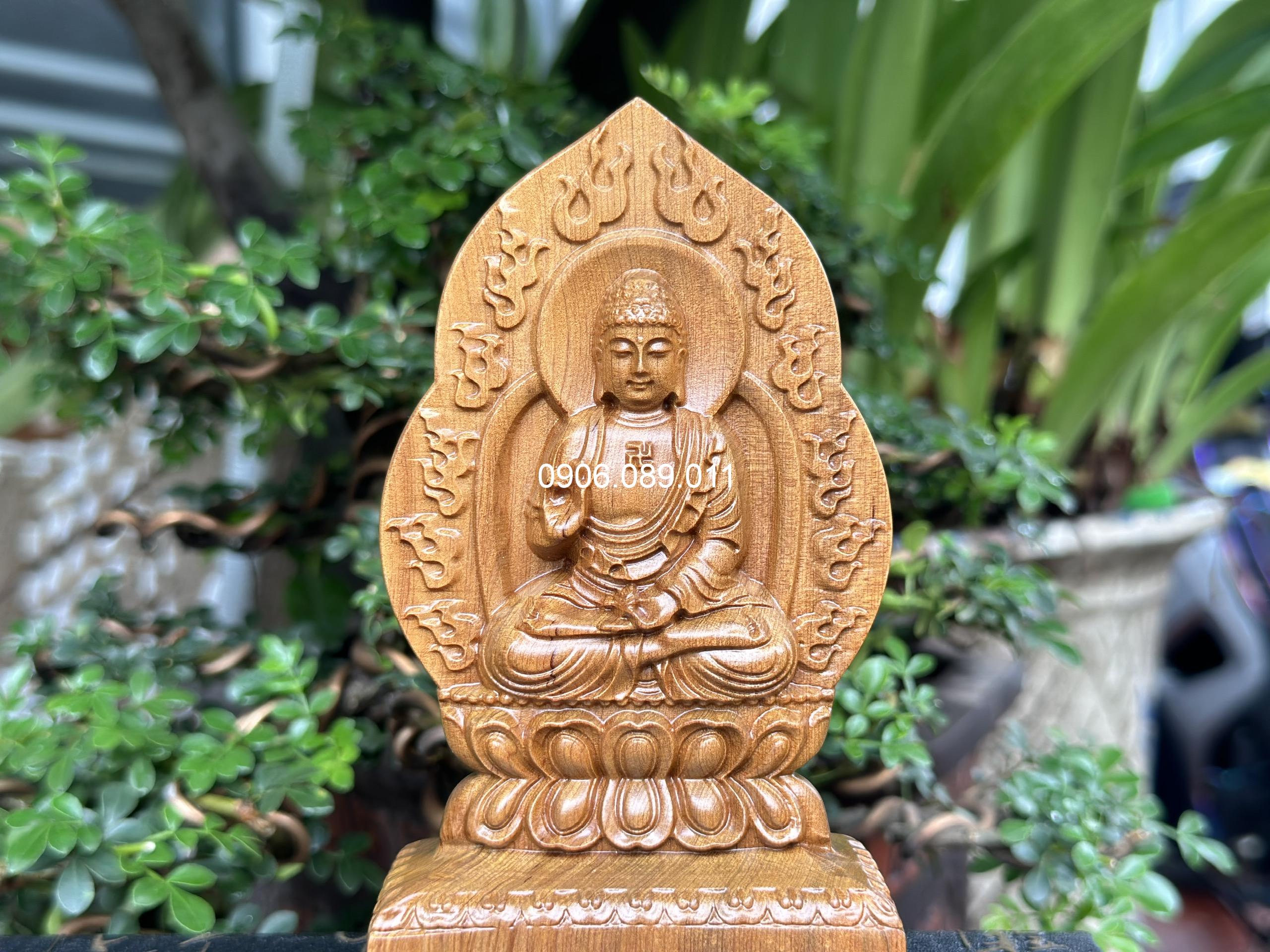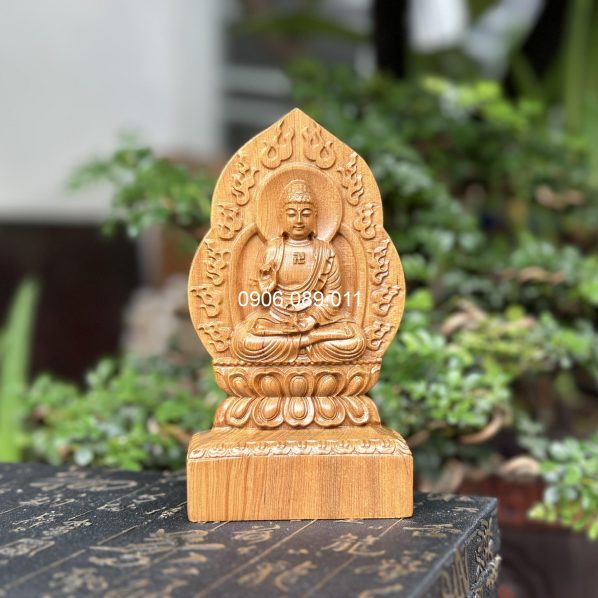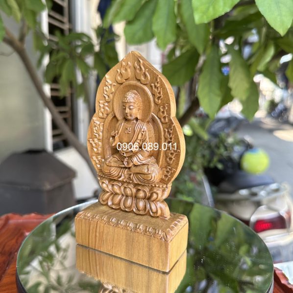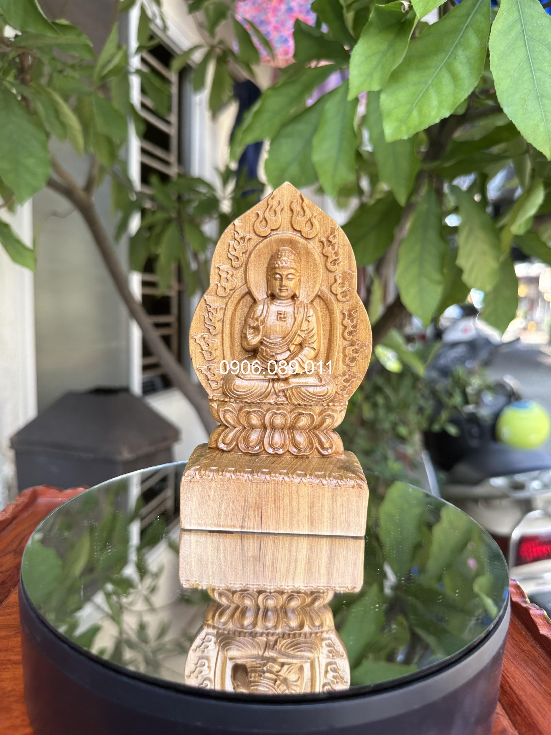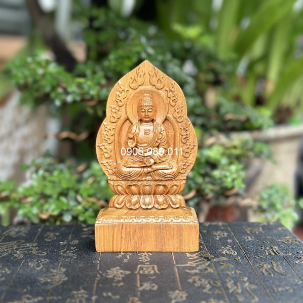 Tượng bản mệnh Phật A Di Đà tuổi Tuất – Hợi gỗ bách xanh cao cấp ( tặng vòng tay )