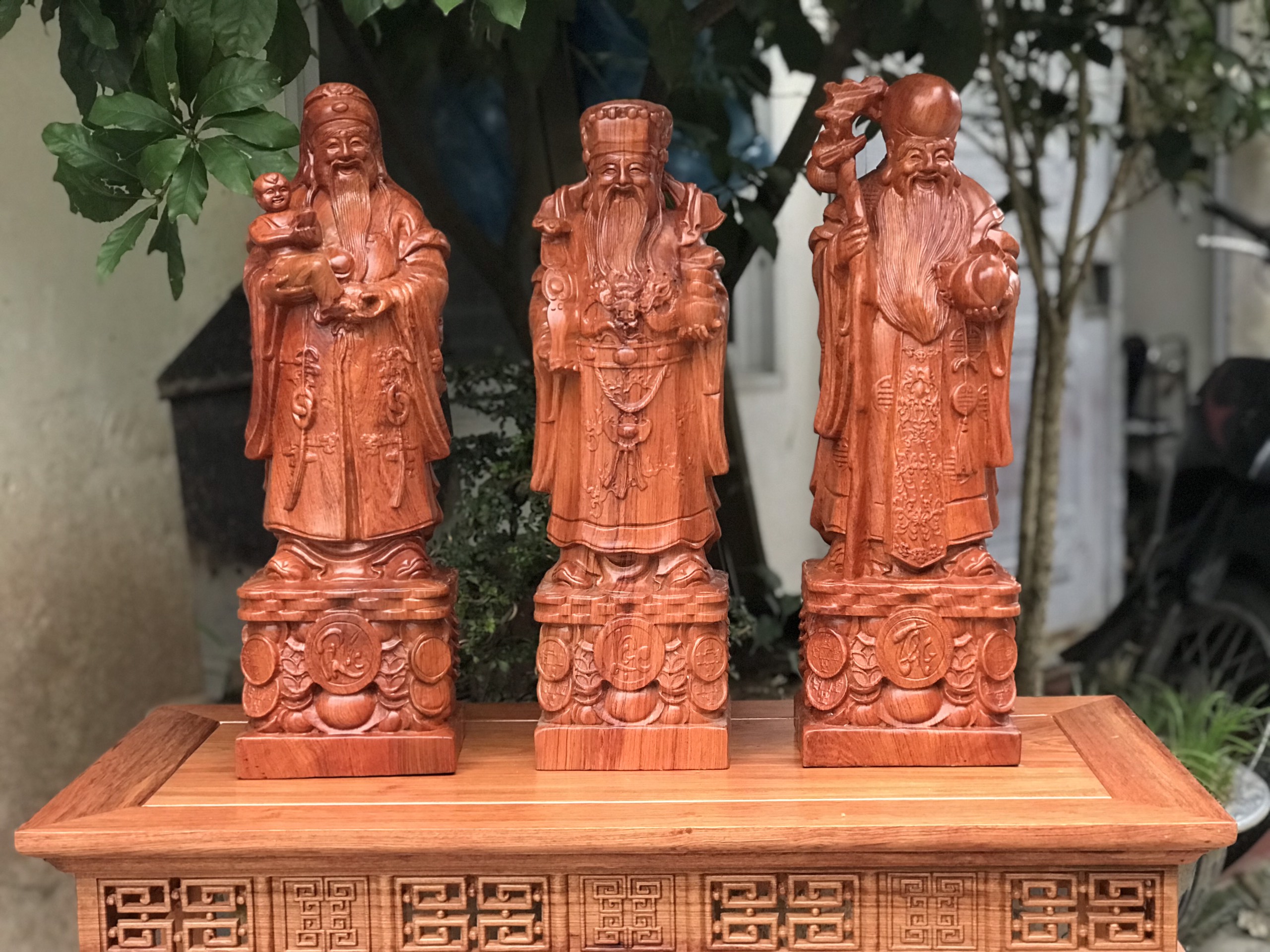 Cách trưng bày tượng Phúc, Lộc, Thọ gỗ hương.