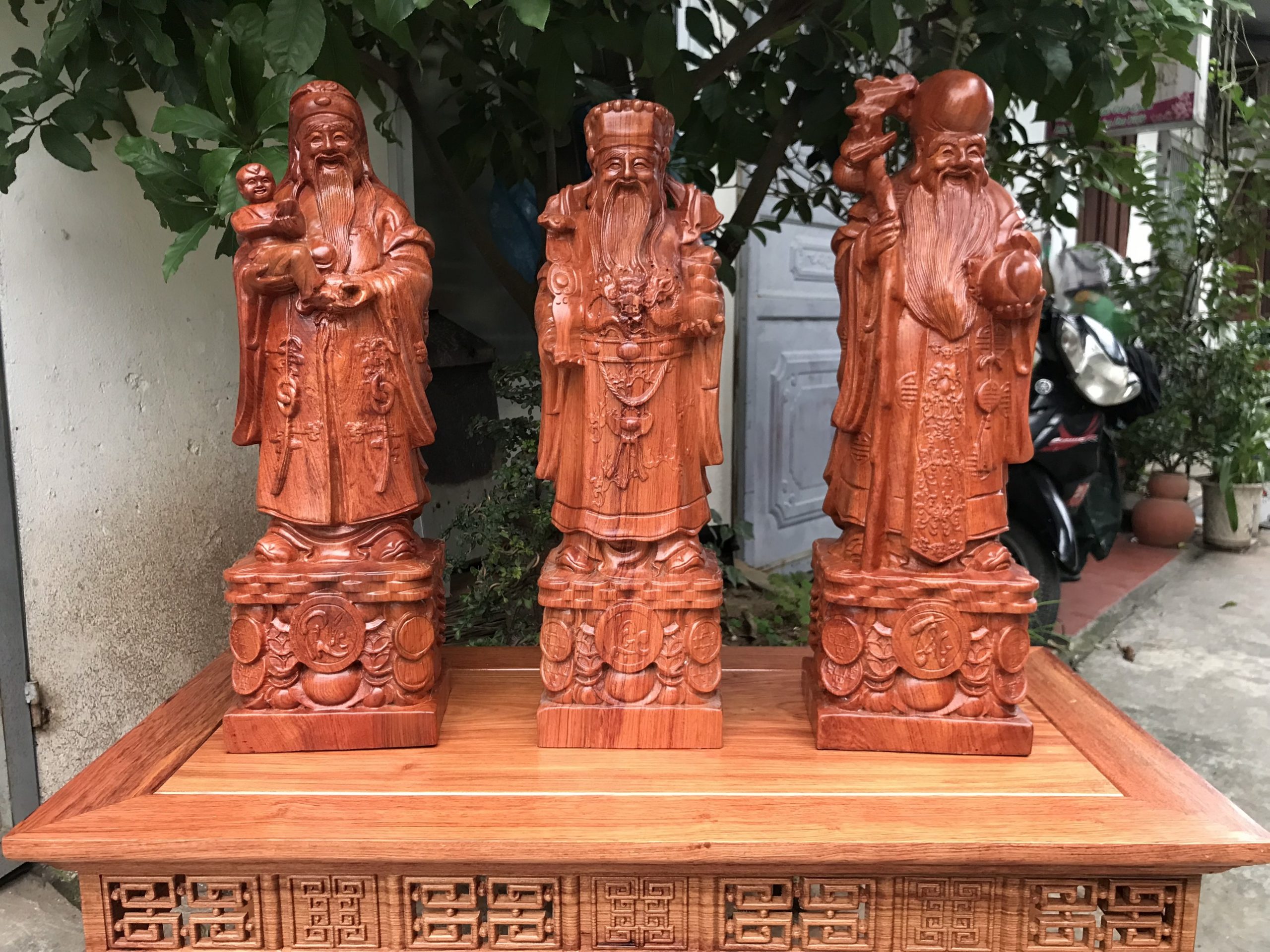 một số hình ảnh Tượng Phúc Lộc Thọ gỗ hương đá, tượng tam đa cao 50